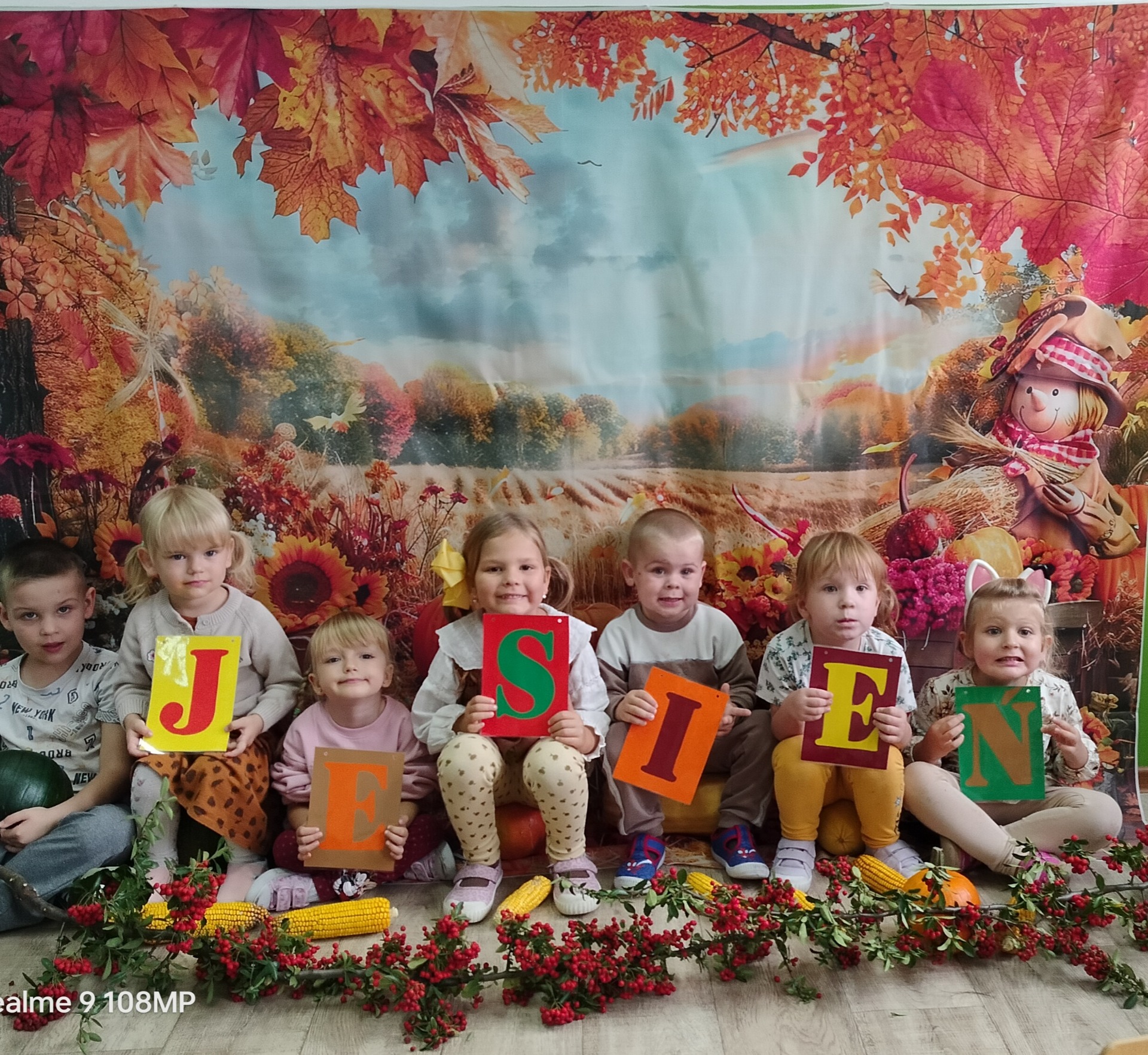 22 września dzieci z grupy ,,Pszczółki" powitały najbardziej kolorową ze wszystkich pór roku - JESIEŃ. Wszystkie dzieci we wspaniałym humorze i z wielką radością witały nową porę roku. Tego dnia królowały barwy jesieni: żółty, czerwony, brązowy oraz pomarańczowy, ponieważ wszystkie maluchy przyszły ubrane do przedszkola w barwach jesieni.