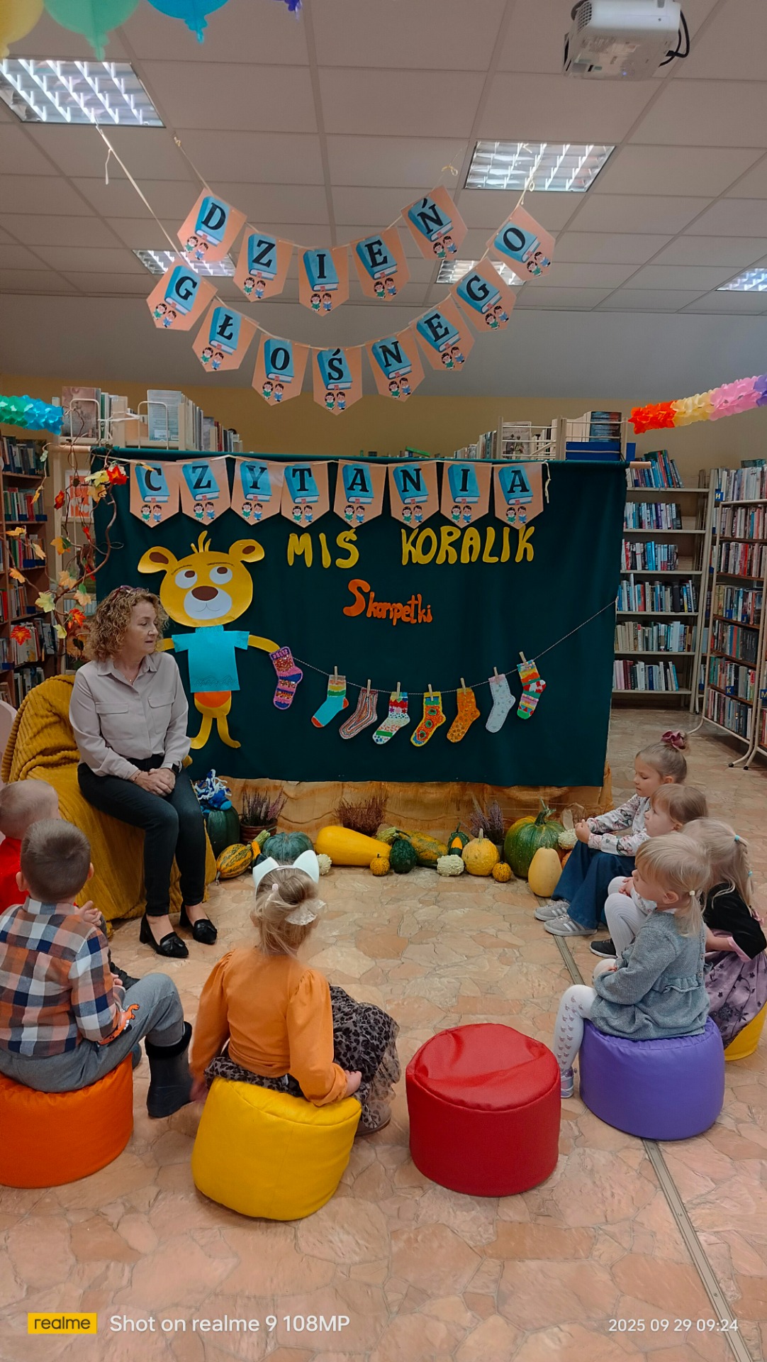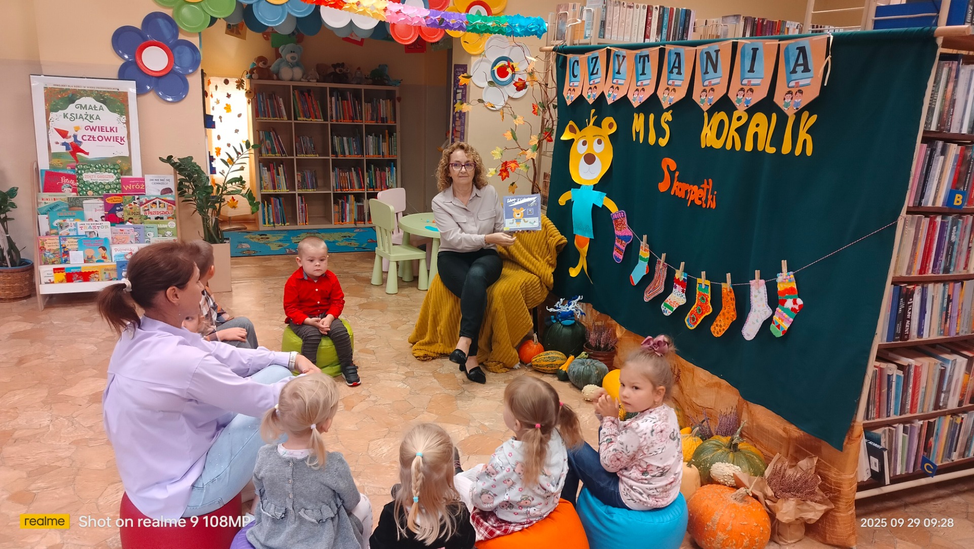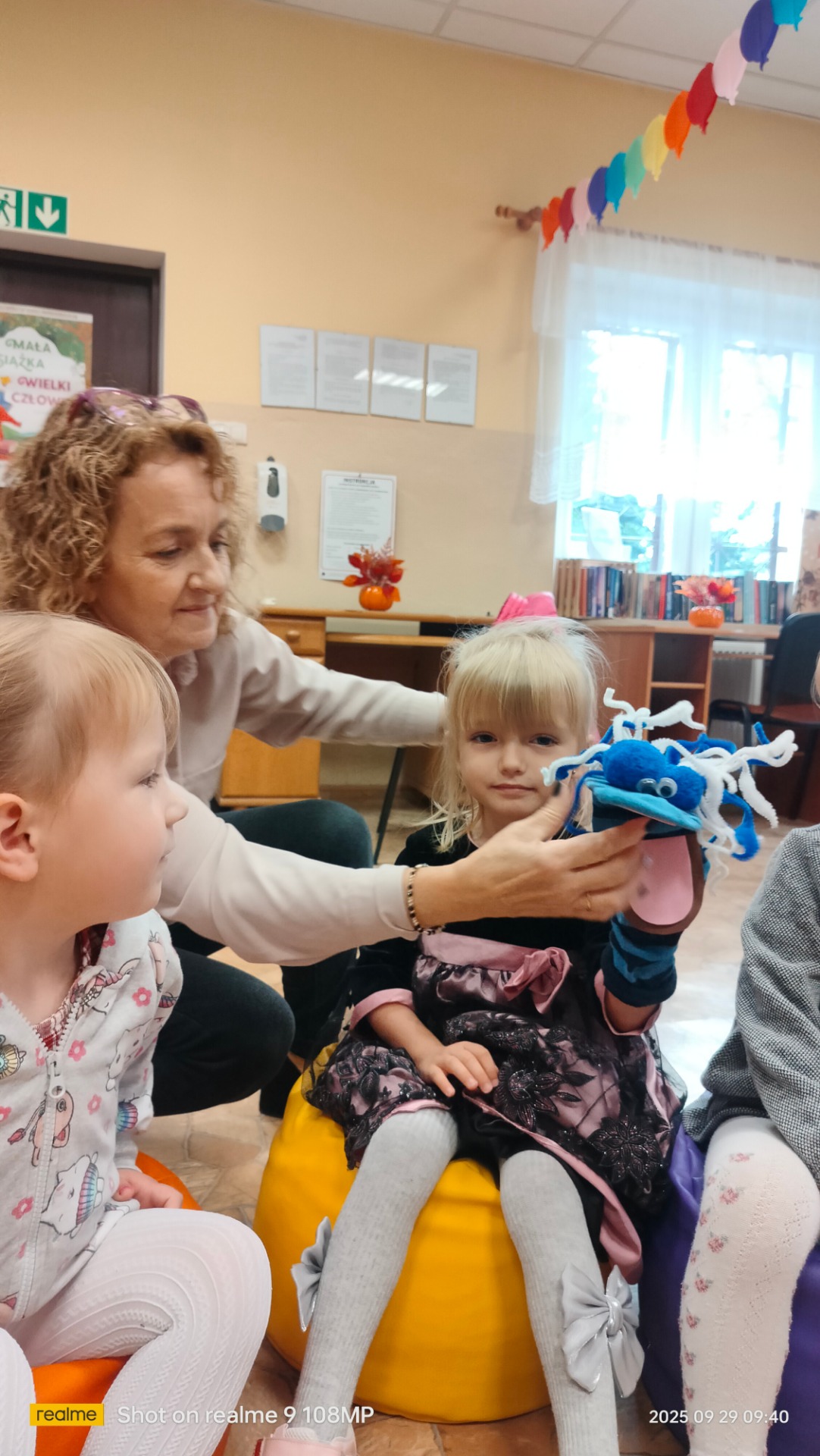 Dziś 29 września przedszkolaki z grupy ,,Pszczółki" świętowały ,,Dzień Głośnego Czytania" w Filii Bibliotecznej w Trębkach. Gościły nas przemiłe panie biliotekarki Barbara Kopeć i Aleksandra Komorowska, które przeczytały dzieciom bajkę pt. ,Miś Koralik Skarpetki" i świetnie bawiły się z przedszkolakami. Maluchy miały również okazję do wypożyczenia książeczek i zabrania do domku, jednocześnie biorąc udział w projekcie pt.,,Mała Książka Wielki Człowiek". Dzieci w ten sposób nie tylko rozwijają mowę, wzbogacają słownictwo, lecz mają okazję do obcowania ze wspaniałym i magicznym miejscem jakim jest biblioteka.