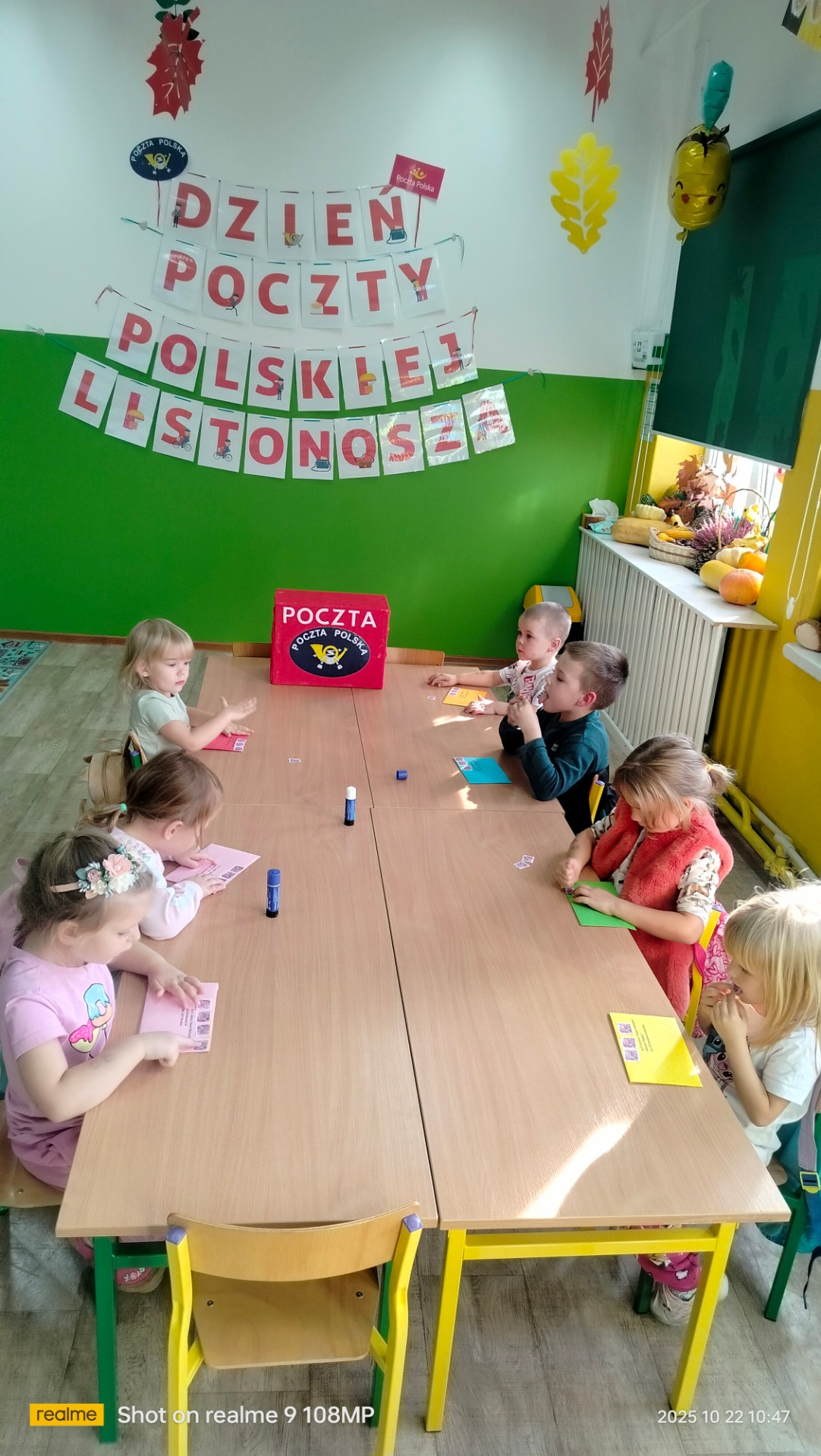 Pszczółki z okazji tego dnia wykonały wcześniej dla swoich rodziców niespodzianki, na zajęciach przykleiły znaczki, podstemplowały koperty i listy, włożyły do skrzynki pocztowej, które niebawem trafią do rąk ich rodziców. W ramach poobiedniego odpoczynku, maluszki obejrzały bajkę o znanym listonoszu Pacie i jego perypetiach.