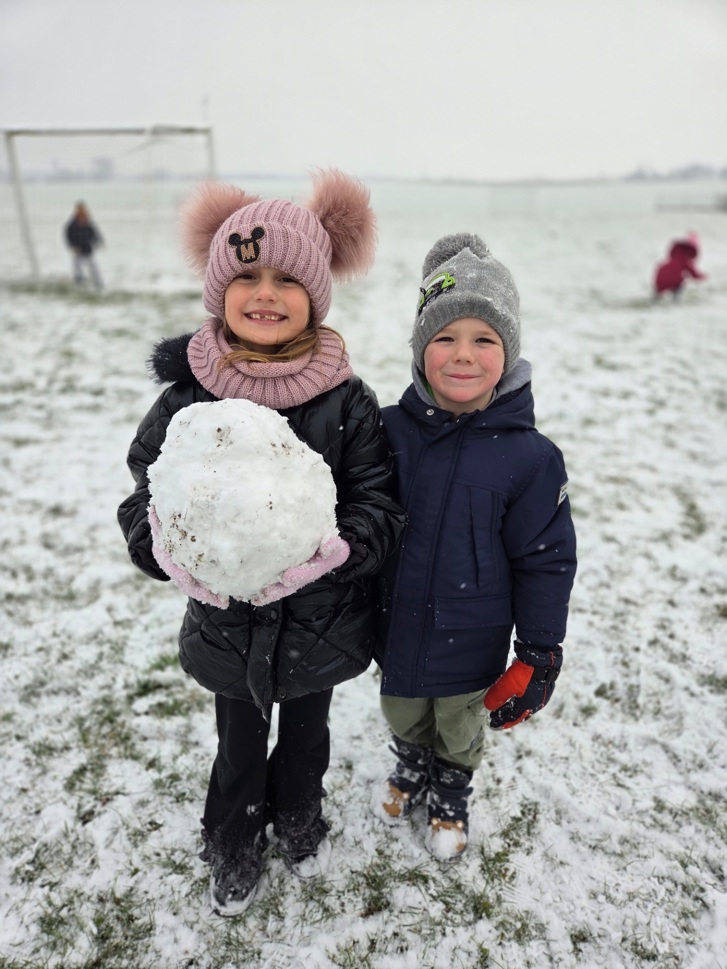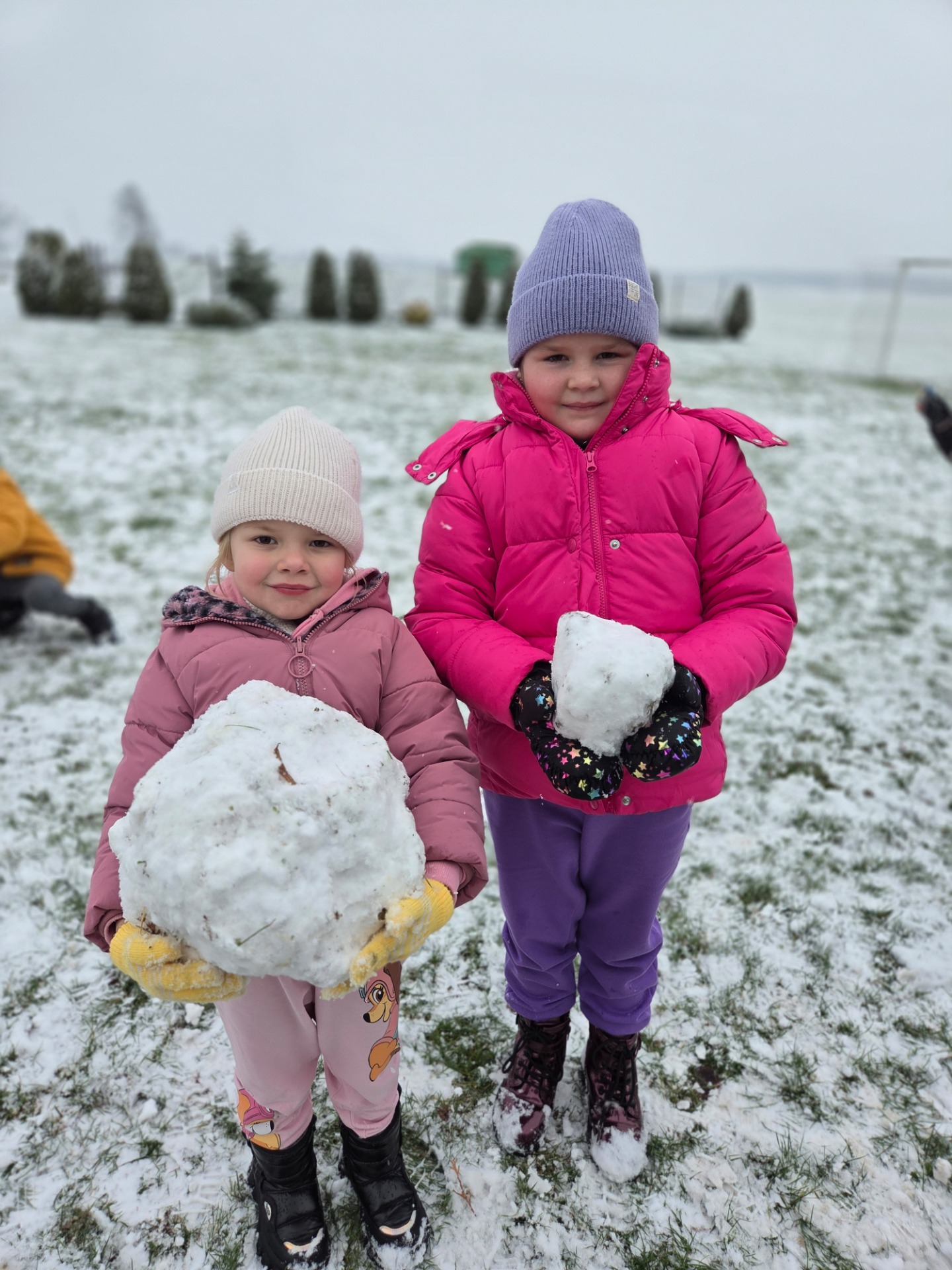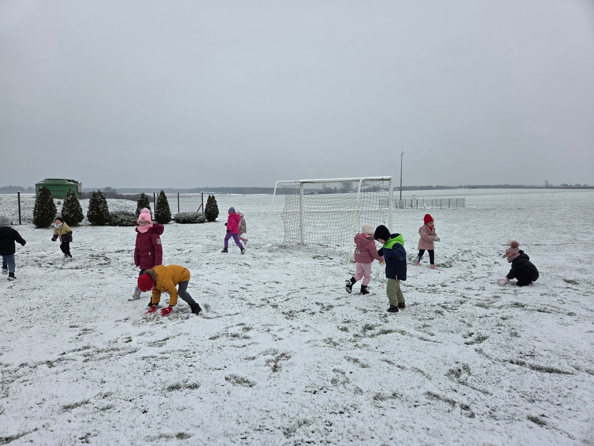 Dzieci z grupy „Słoneczka” z radością powitały pierwszy śnieg! Nasze wyjście na świeże powietrze było pełne wrażeń – rozpoczęliśmy od dokarmiania ptaków w szkolnym karmniku, dbając o naszych skrzydlatych przyjaciół w zimowym czasie. Następnie przyszedł czas na pierwsze zabawy na śniegu: lepienie małych bałwanków, rzucanie śnieżkami i odkrywanie zimowych śladów.