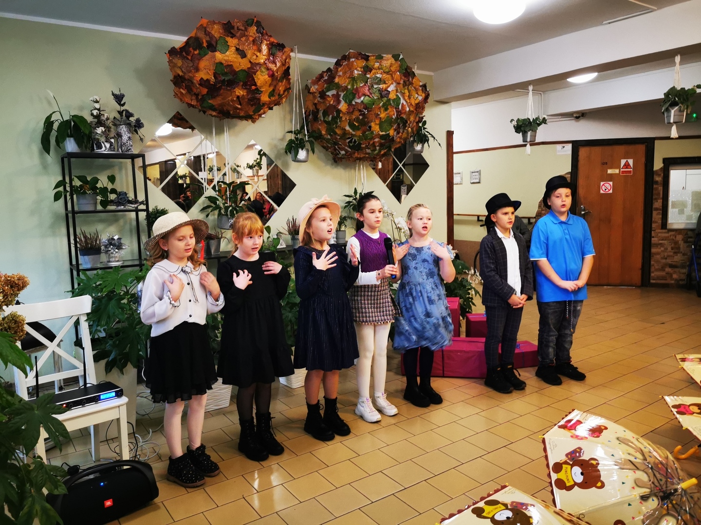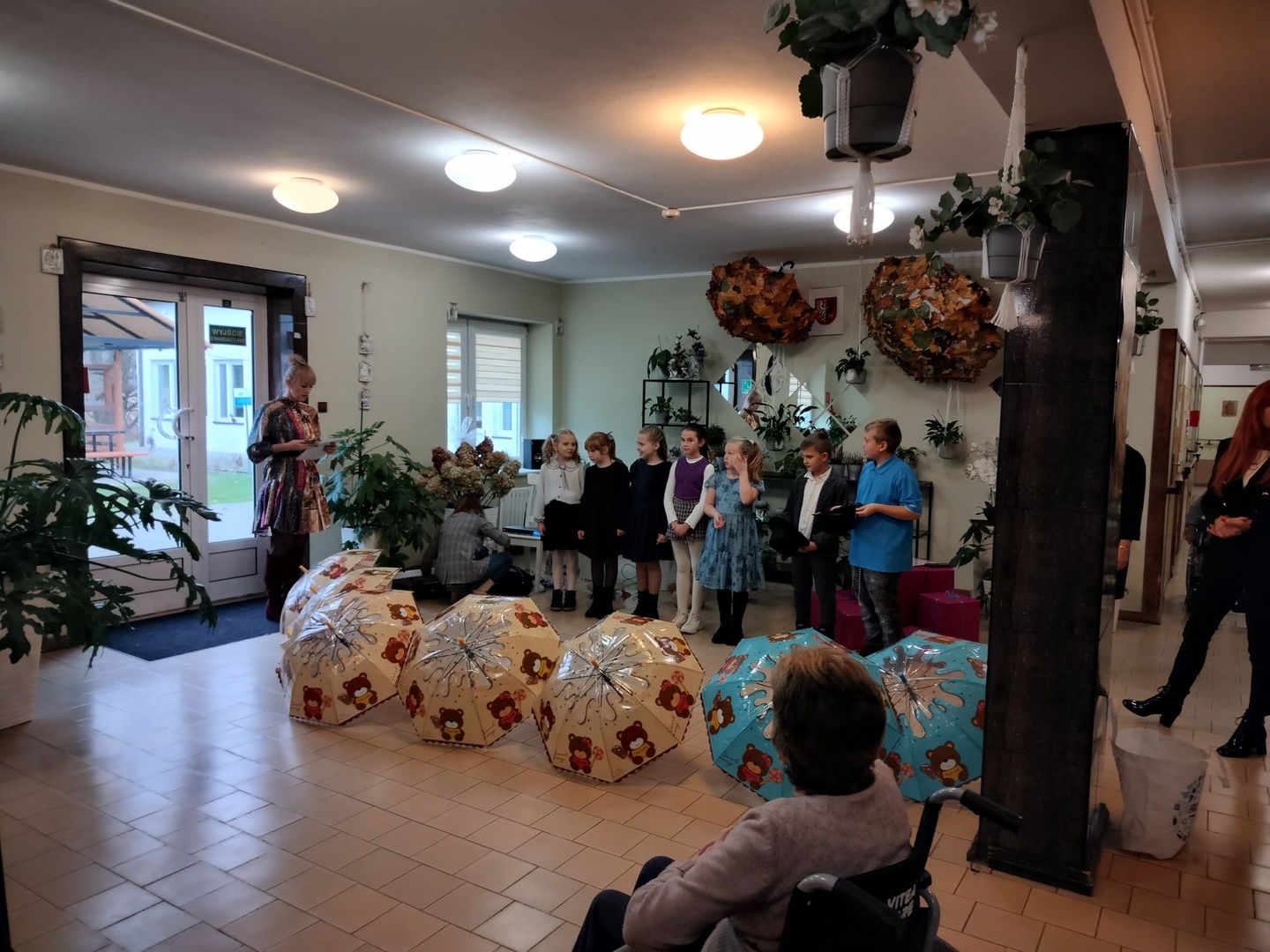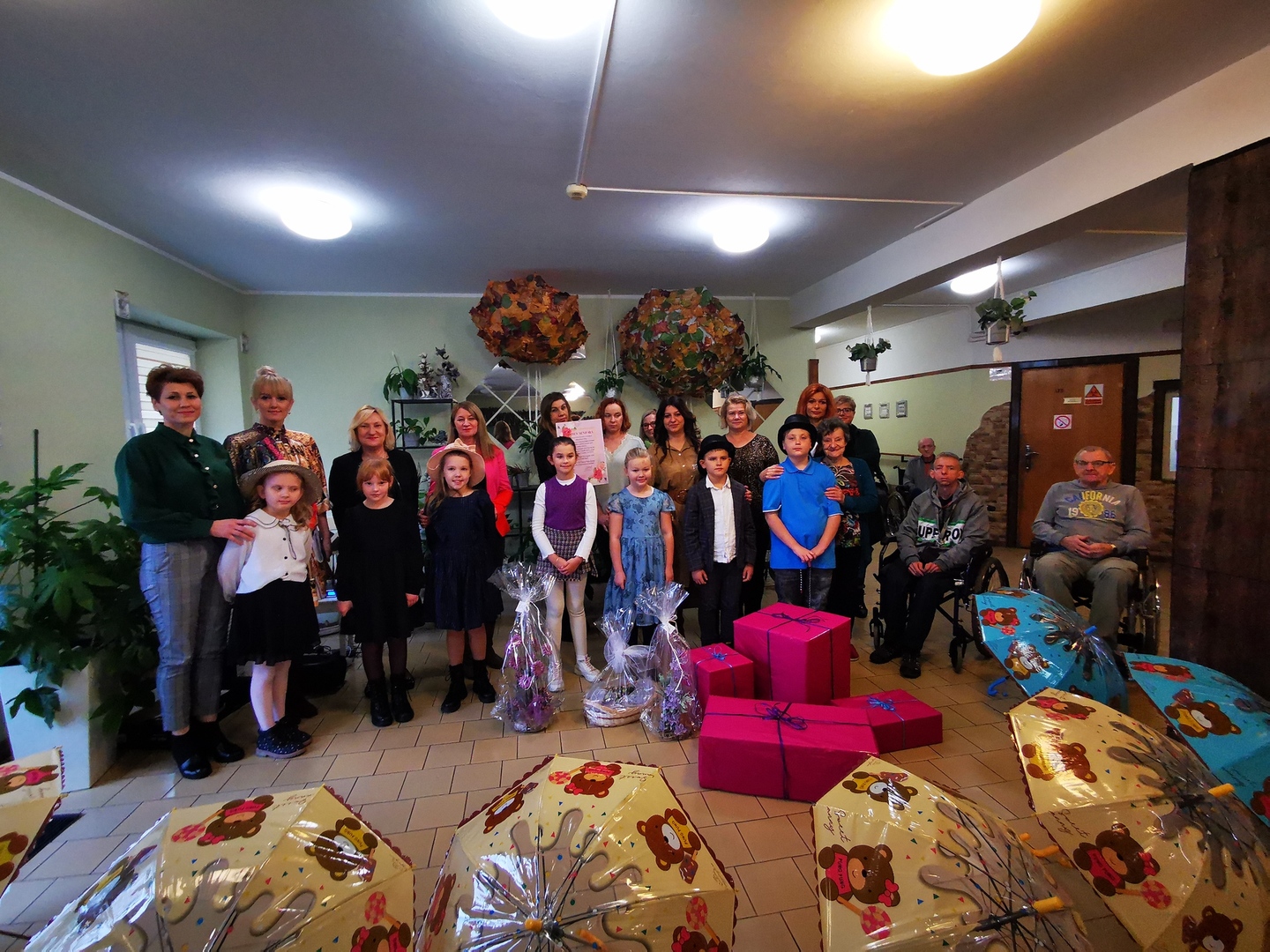 Z okazji ,,DNIA SENIORA” zorganizowaliśmy w naszej szkole zbiórkę herbat i ciasteczek dla podopiecznych z Domu Pomocy Społecznej w Koszelewie. Uczniowie z klas drugiej i trzeciej pięknie zaprezentowały swój występ artystyczny pensjonariuszom Domu Pomocy Społecznej. Dzieci z uśmiechami na ustach zaśpiewały piosenki, recytowały wiersze zatańczyły pięknie układy taneczne. Swoim występem wzbudziły zachwyt i wzruszenie u najstarszego pokolenia-,,Młodzieży Plus”, za co otrzymały gromkie brawa. Ze strony Seniorów padły gorące podziękowania za udane przedstawienie, dające satysfakcję wykonawcom i podopiecznym. Pani Dyrektor Urszula Koniarek złożyła serdeczne życzenia i pozdrowienia od całej społeczności szkolnej i przekazaliśmy wszystkie rzeczy ze zbiórki. Przedstawiciele DPS-u wręczyli Pani Dyrektor na pamiątkę własnoręcznie wykonane prezenty oraz cukierki dla dzieci. Spotkanie było bardzo miłe i owocne, uczące nas wszystkich szacunku do starszych osób i wrażliwości na potrzeby drugiego człowieka.