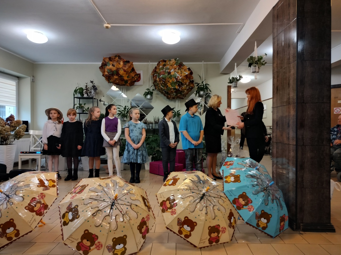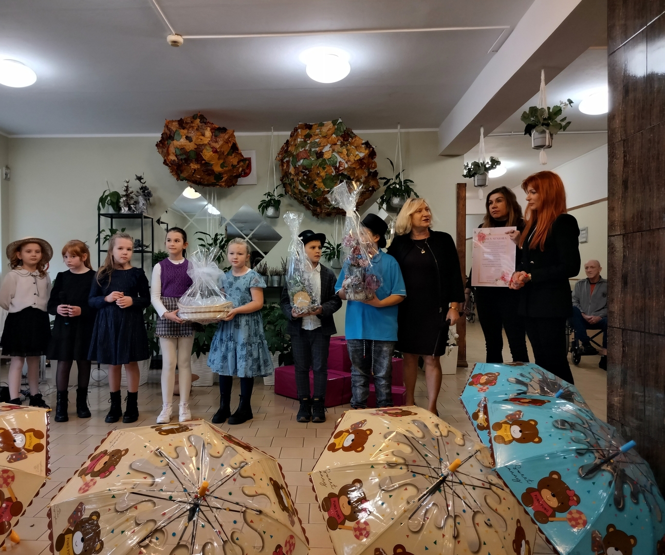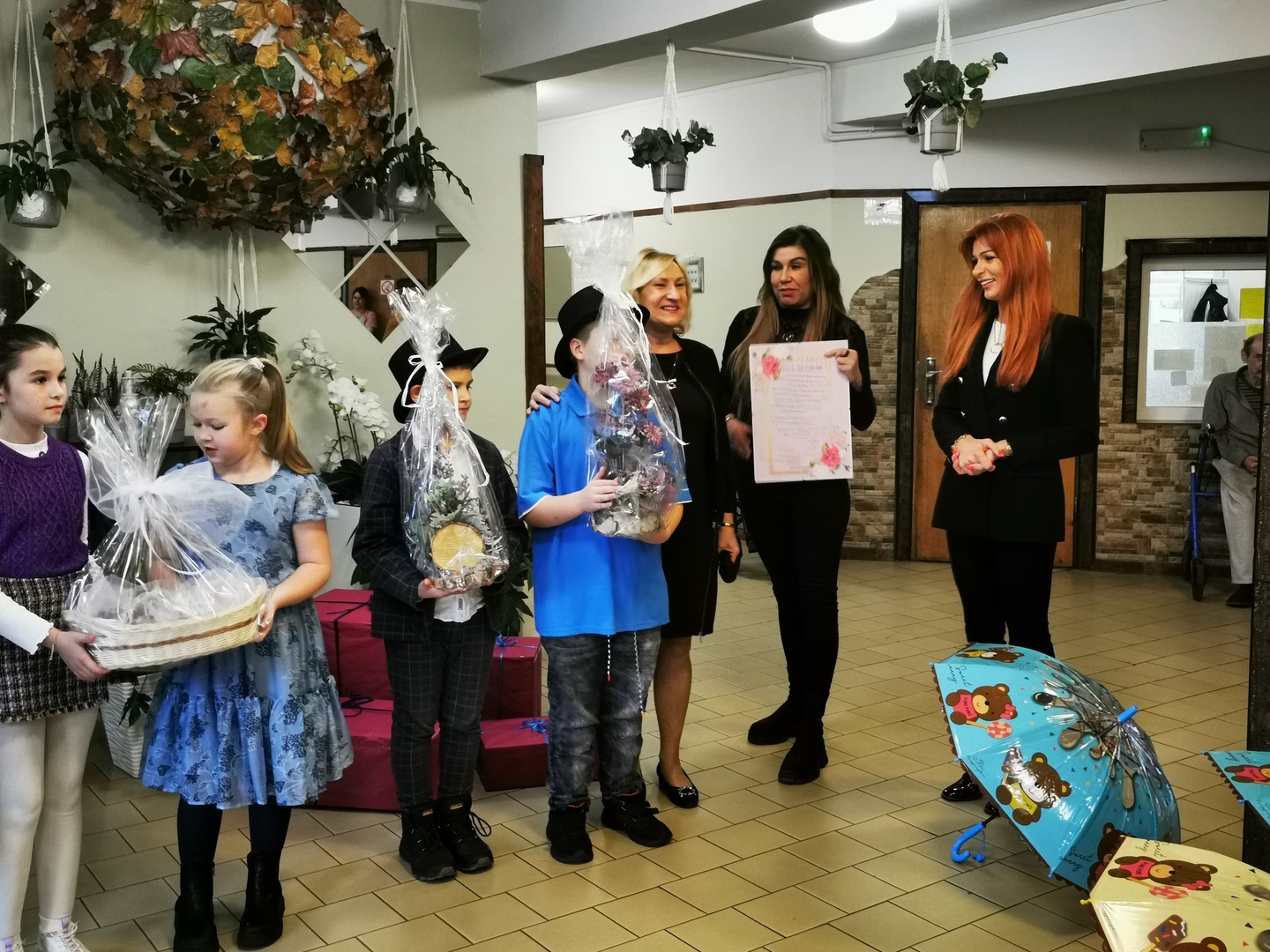 Z okazji ,,DNIA SENIORA” zorganizowaliśmy w naszej szkole zbiórkę herbat i ciasteczek dla podopiecznych z Domu Pomocy Społecznej w Koszelewie. Uczniowie z klas drugiej i trzeciej pięknie zaprezentowały swój występ artystyczny pensjonariuszom Domu Pomocy Społecznej. Dzieci z uśmiechami na ustach zaśpiewały piosenki, recytowały wiersze zatańczyły pięknie układy taneczne. Swoim występem wzbudziły zachwyt i wzruszenie u najstarszego pokolenia-,,Młodzieży Plus”, za co otrzymały gromkie brawa. Ze strony Seniorów padły gorące podziękowania za udane przedstawienie, dające satysfakcję wykonawcom i podopiecznym. Pani Dyrektor Urszula Koniarek złożyła serdeczne życzenia i pozdrowienia od całej społeczności szkolnej i przekazaliśmy wszystkie rzeczy ze zbiórki. Przedstawiciele DPS-u wręczyli Pani Dyrektor na pamiątkę własnoręcznie wykonane prezenty oraz cukierki dla dzieci. Spotkanie było bardzo miłe i owocne, uczące nas wszystkich szacunku do starszych osób i wrażliwości na potrzeby drugiego człowieka.