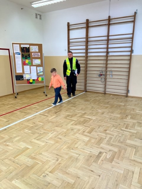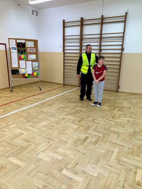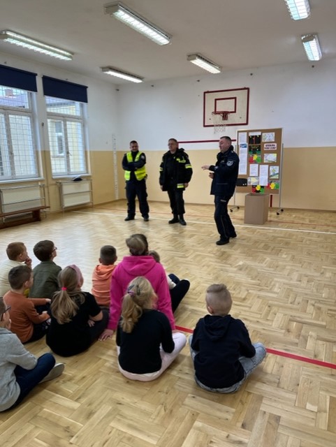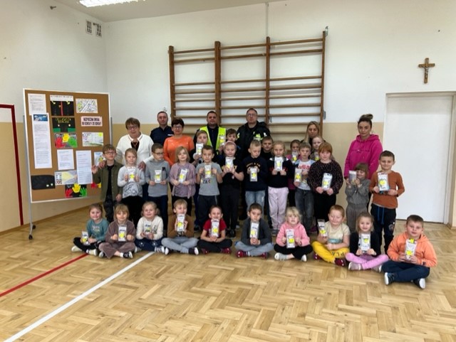 W spotkaniu uczestniczyła cała społeczność szkolna. Tematem prelekcji była „Bezpieczna droga do szkoły i ze szkoły”. Funkcjonariusze przypomnieli uczniom zasady bezpiecznego poruszania się po drodze, zachęcili do wyposażenia ubiorów i plecaków w elementy odblaskowe, którymi obdarowano wszystkie dzieci. Przestrzegli najmłodszych przed zabawami w pobliżu jezdni. Przypomnieli też numery alarmowe, na które należy dzwonić w sytuacjach zagrażających zdrowiu i życiu.