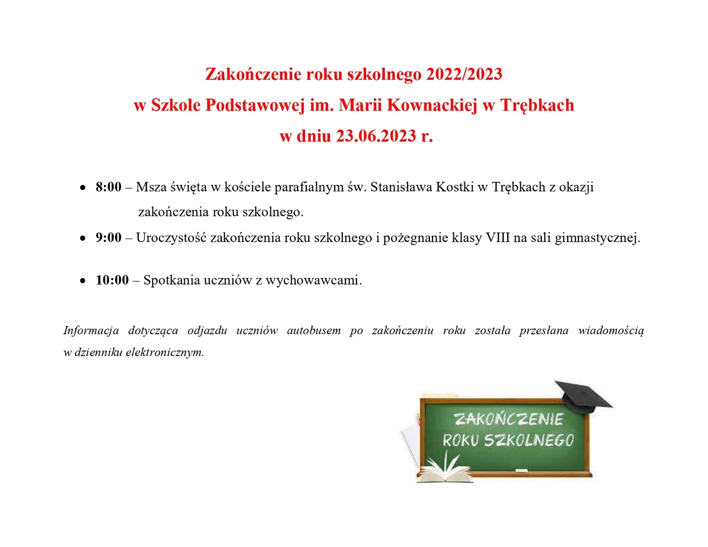 Harmonogram zakończenia roku szkolnego 2022/2023