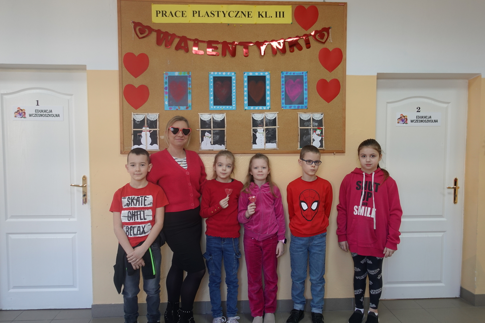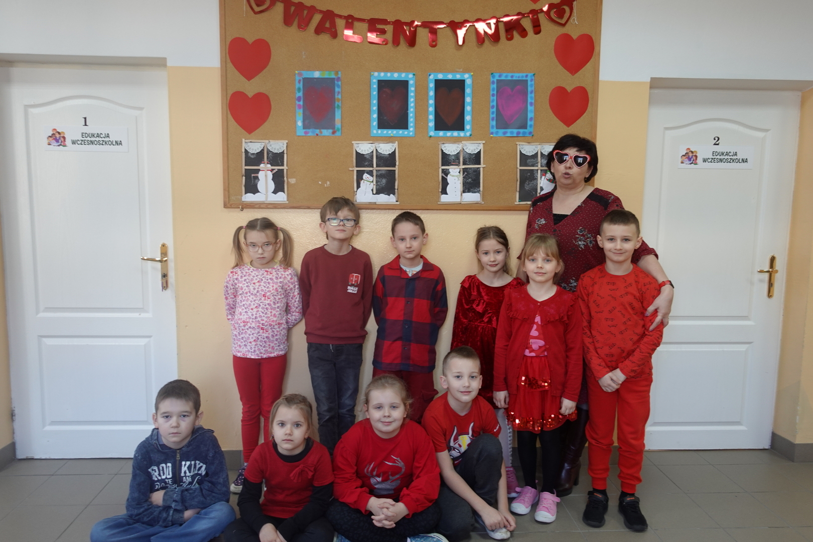Z inicjatywy Samorządu Uczniowskiego i ich opiekunów tradycyjnie przygotowano dekorację ścienną oraz zorganizowano „pocztę walentynkową”. Kilka dni wcześniej w holu naszej szkoły zostało wystawione czerwone pudełko, do którego chętni uczniowie mogli wrzucić własnoręcznie wykonane kartki walentynkowe z wyrazami sympatii dla koleżanek i kolegów. W wydarzeniu udział wzięli uczniowie klas I-VIII oraz dzieci z oddziału przedszkolnego.