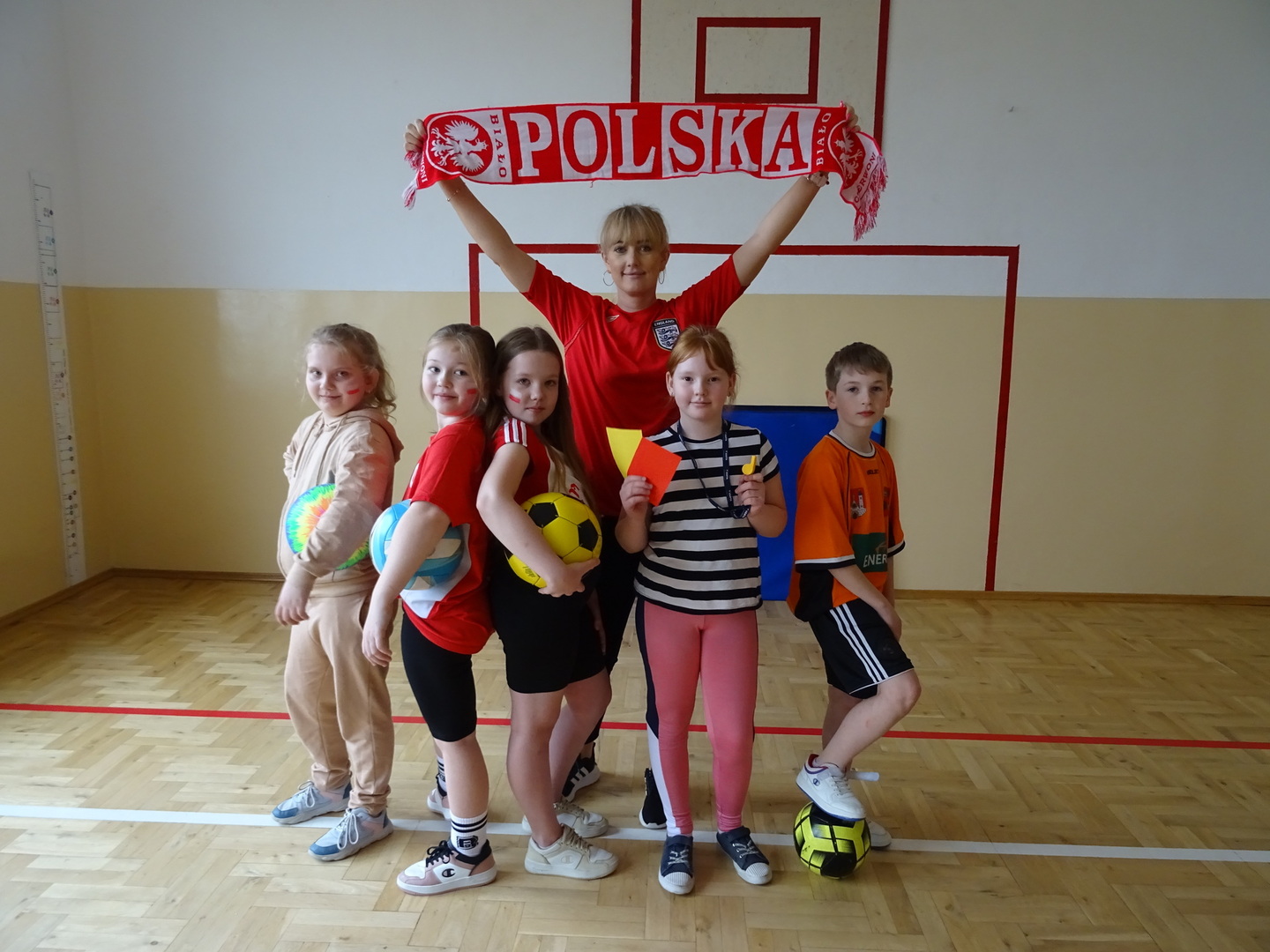 Dostrzegając talent i pasję naszych uczniów Samorząd Uczniowski wraz z opiekunkami w dniu 17.04.2024 r. zorganizował w naszej szkole “Dzień piłki nożnej”. Chętni uczniowie założyli piłkarskie stroje. Pojawiły się koszulki znanych osobistości piłkarskich. Nie zabrakło również szalików, piłek, medali czy gwizdków. Dzieci w tym dniu świetnie się bawiły i rozegrały na przerwach emocjonujące mecze.