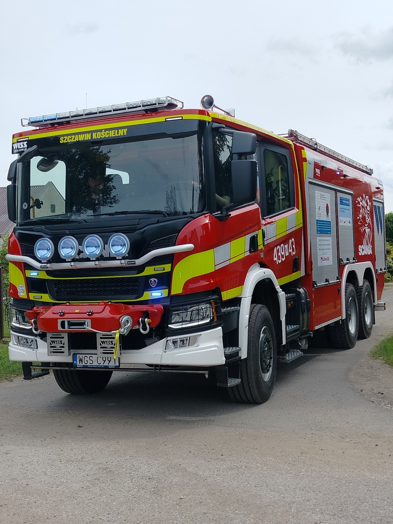 Z tej okazji odwiedzili nas strażacy z Ochotniczej Straży Pożarnej w Szczawinie Kościelnym. W czasie spotkania poznaliśmy zagadnienie trudnej i niebezpiecznej pracy strażaków oraz zapoznaliśmy się z zawartością torby medycznej, służącej do udzielenia pierwszej pomocy przed medycznej. Dzieci miały możliwość zapoznania się z pracą strażaków od strony praktycznej poprzez przymierzenie strażackich hełmów, ubrań i krótkiej zabawy z ,,folią życia”. Przedszkolaki miały także możliwość obejrzenia różnego rodzaju sprzętów wykorzystywanych podczas akcji ratowniczych, quada, wozów strażackich i ich wyposażenia. Każdy przedszkolak, choć przez chwilę mógł poczuć się jak prawdziwy strażak, kiedy miał możliwość wejść do wozu strażackiego. Niezwykłą atrakcją zarówno dla chłopców i dziewczynek była symulacja gaszenia ognia wodą.
