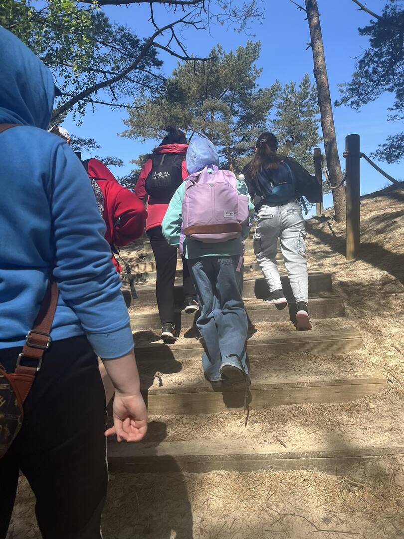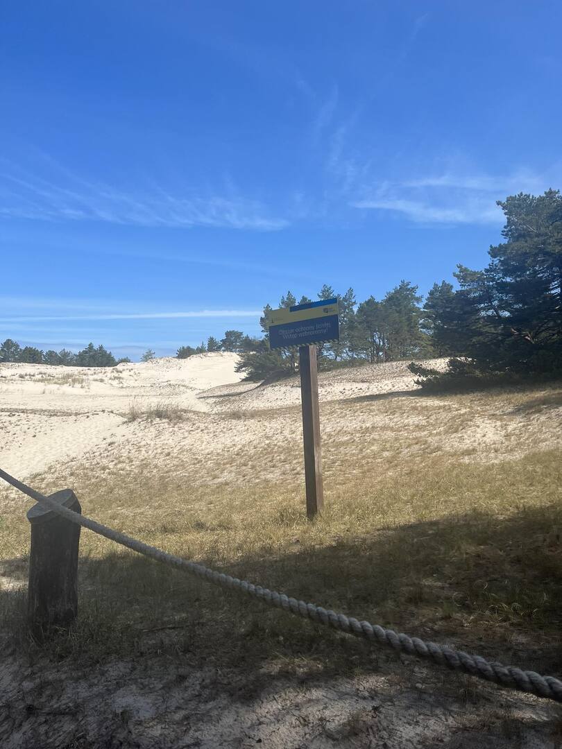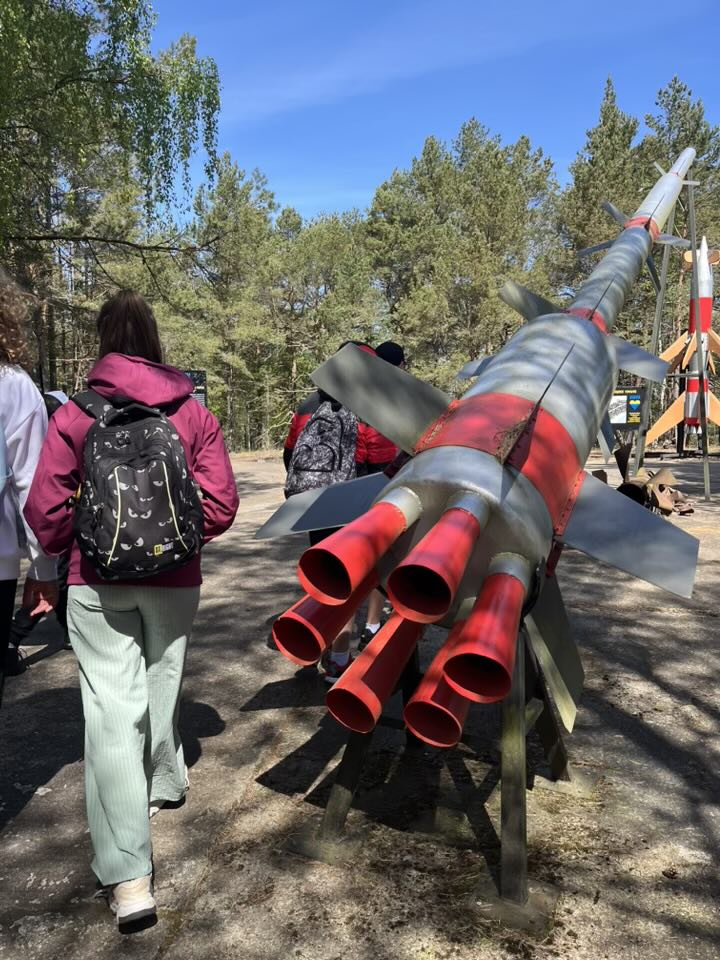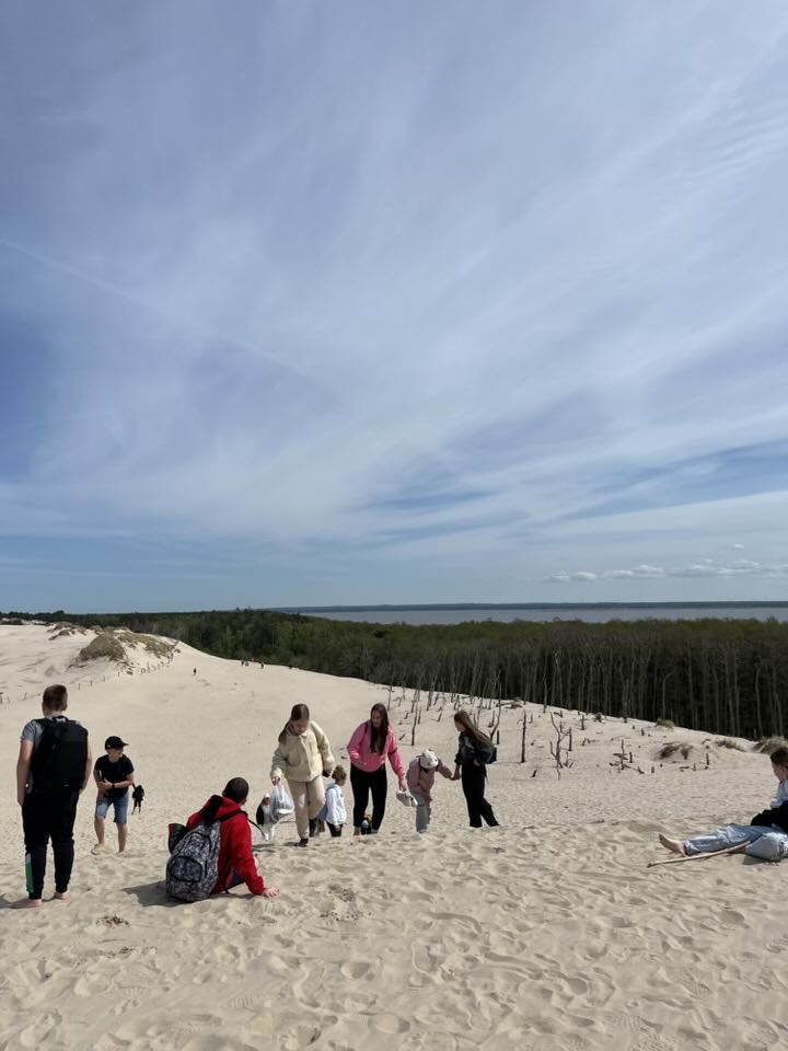 Drugiego dnia wycieczki udaliśmy się na wyczerpującą, pieszą wędrówkę na wydmy z Panią przewodnik. Po drodze wstąpiliśmy do Muzeum Wyrzutni Rakiet w Rąbce w którym otrzymaliśmy dużą dawkę wiedzy. Następnie weszliśmy na wysoką wydmę, która miała około 550m n.p.m.; było z niej widać Morze Bałtyckie i jezioro Łebsko (trzecie największe jezioro w Polsce).