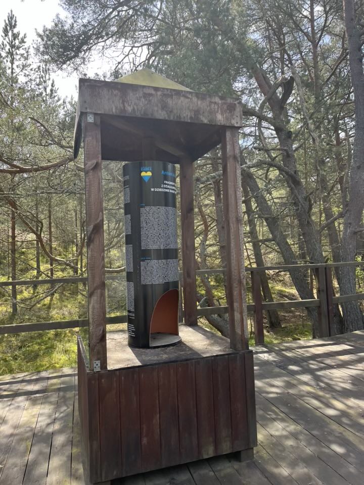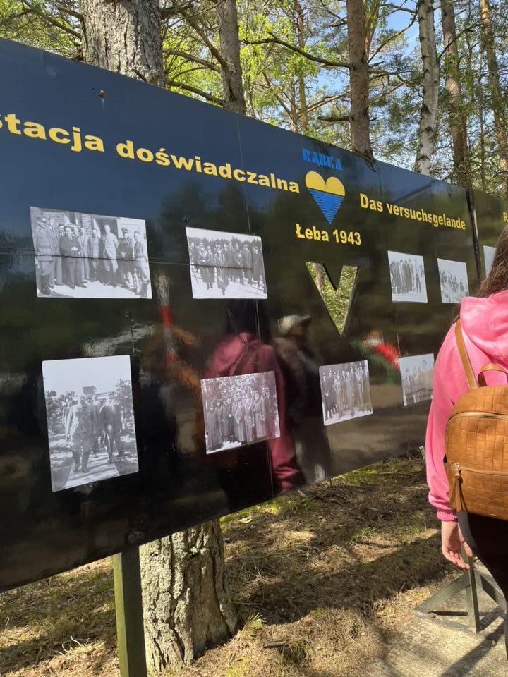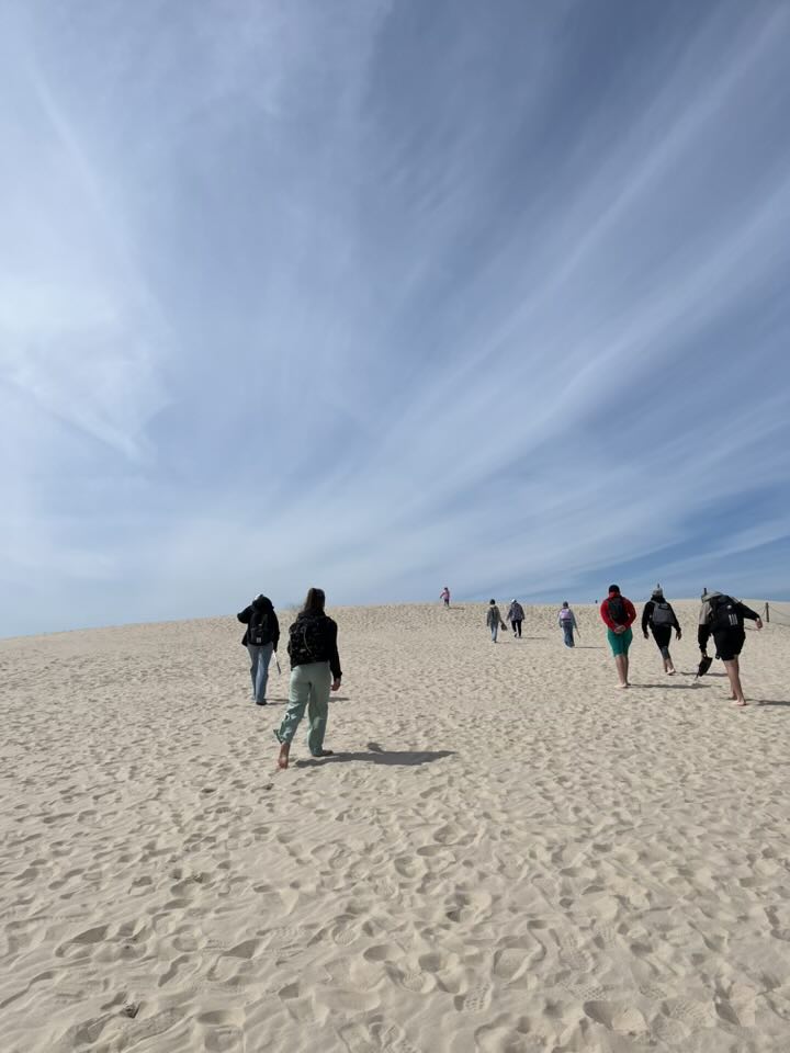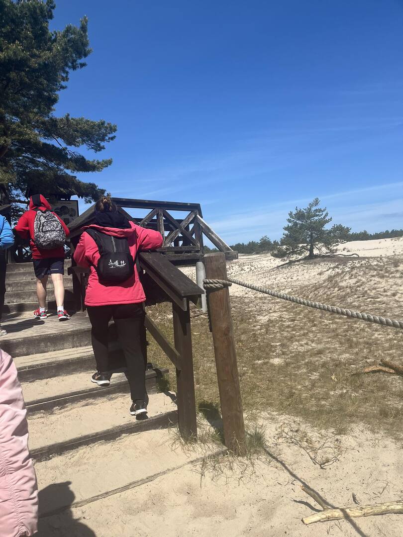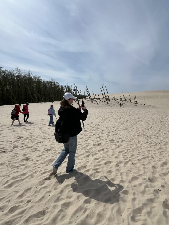 Drugiego dnia wycieczki udaliśmy się na wyczerpującą, pieszą wędrówkę na wydmy z Panią przewodnik. Po drodze wstąpiliśmy do Muzeum Wyrzutni Rakiet w Rąbce w którym otrzymaliśmy dużą dawkę wiedzy. Następnie weszliśmy na wysoką wydmę, która miała około 550m n.p.m.; było z niej widać Morze Bałtyckie i jezioro Łebsko (trzecie największe jezioro w Polsce).