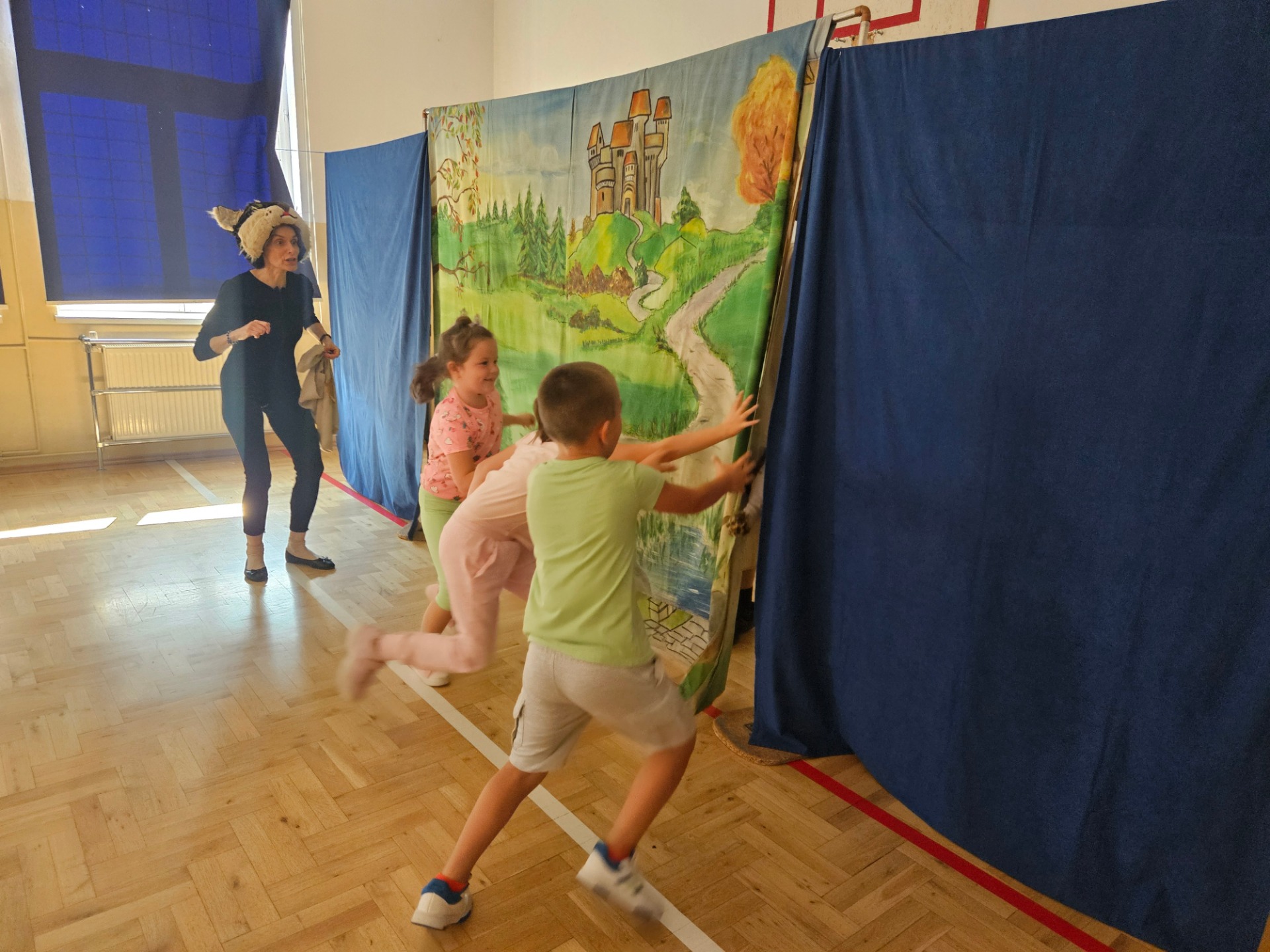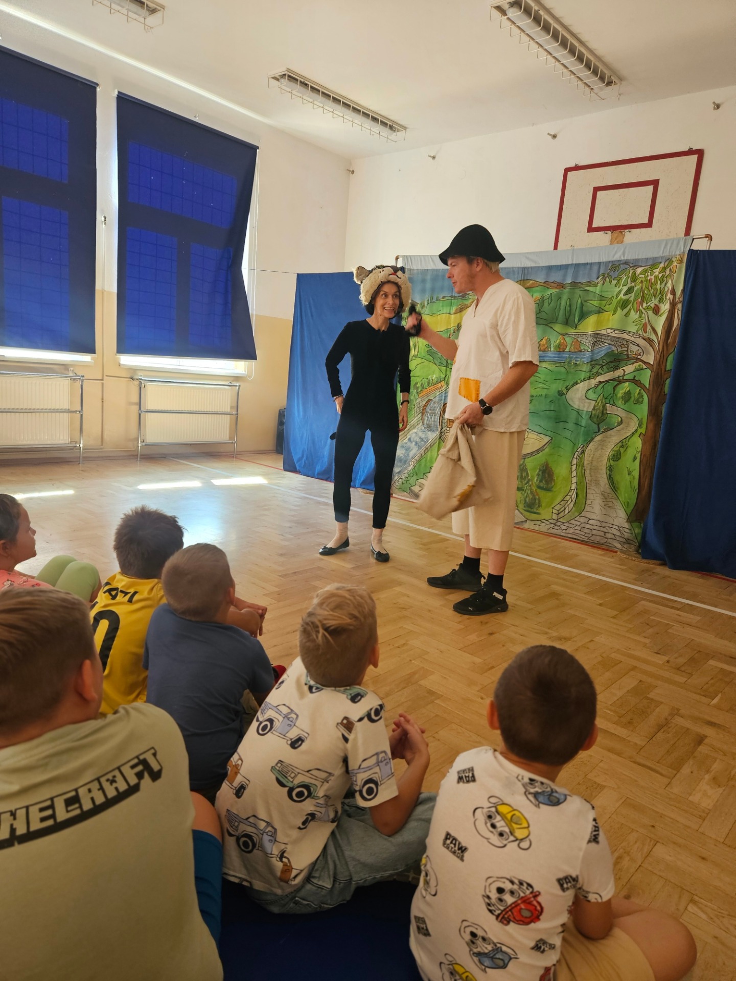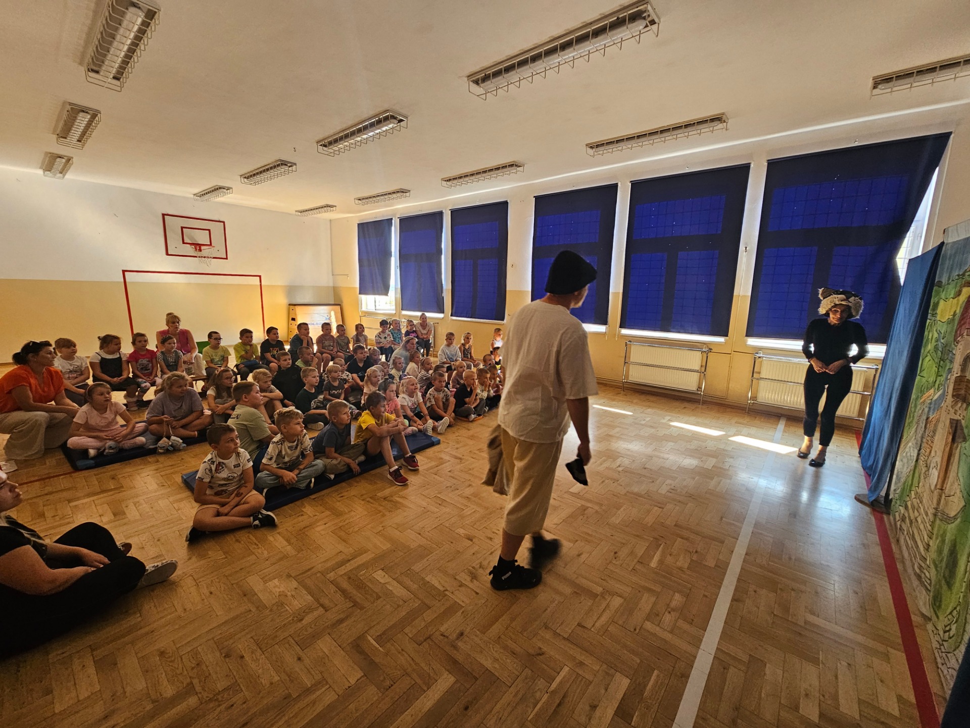 3 2 1 START zaczynamy kolejne przygody ze Studiem Teatralnym Krak-Art-Bis. Dziś 10 września gościliśmy w kolejnym roku szkolnym wyjątkowych gości, którzy zawitali do nas ze spektaklem pt. ,,Kot w butach”. Uczestnikami przedstawienia były dzieci z naszej najmłodszej społeczności szkolnej czyli przedszkolaki oraz klasy I- III. Z uwagą śledziliśmy losy Janka i jego przyjaciela kota, uczestnicząc bezpośrednio w rozwiązywaniu ich problemów. Wystąpienie aktorów wzbudziło ogromne zainteresowanie wśród dzieci i uczniów, dostarczyło im wiele radości, śmiechu i dobrej zabawy. Spektakl opowiada o magicznym kocie, który przemawia ludzkim głosem i chodzi w pięknych, skórzanych butach. Tematem baśni są przygody kota, który dzięki swojemu sprytowi odmienia życia młodego młynarczyka, wygnanego w świat przez nieczułych braci. Biedny chłopiec zostaje bogatym markizem, udaje mu się zamieszkać we wspaniałym pałacu, żeni się także z piękna i dobrą królewną.
