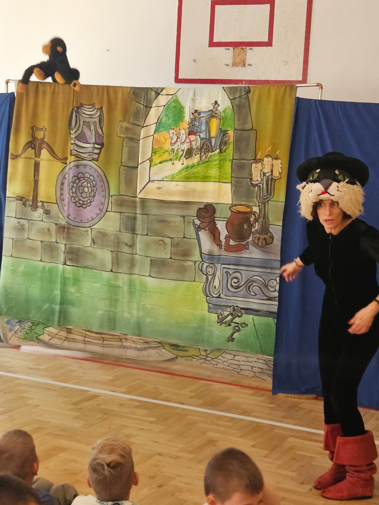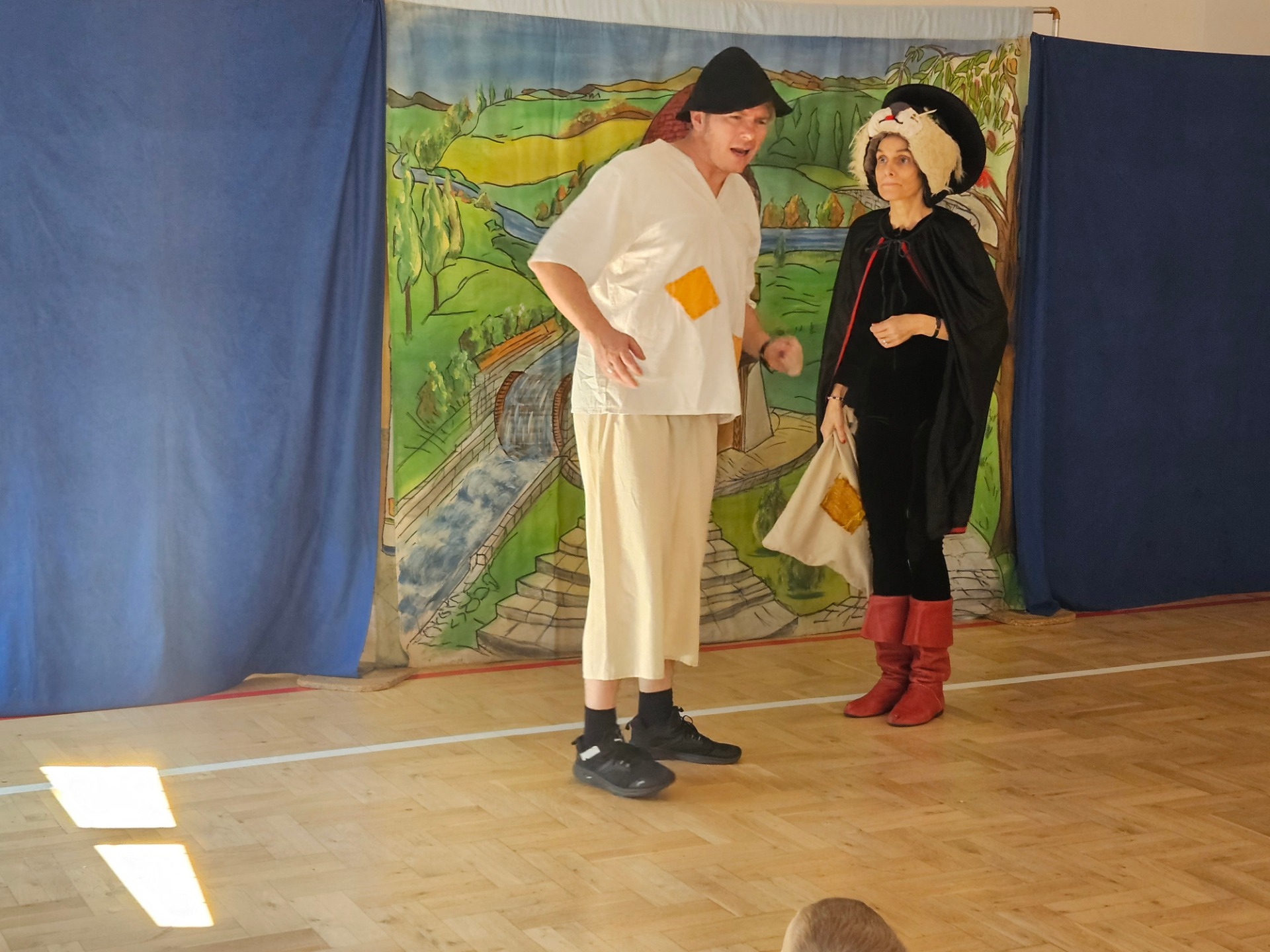 Przedstawienia miało charakter interaktywny, widzowie mieli możliwość wzięcia czynnego udziału w widowisku i wystąpienia na scenie. Między innymi dzieci pomagały kotu złapać animowanego bażanta oraz wcieliły się w role biednych poddanych, którzy pracowali ciężko w polu.