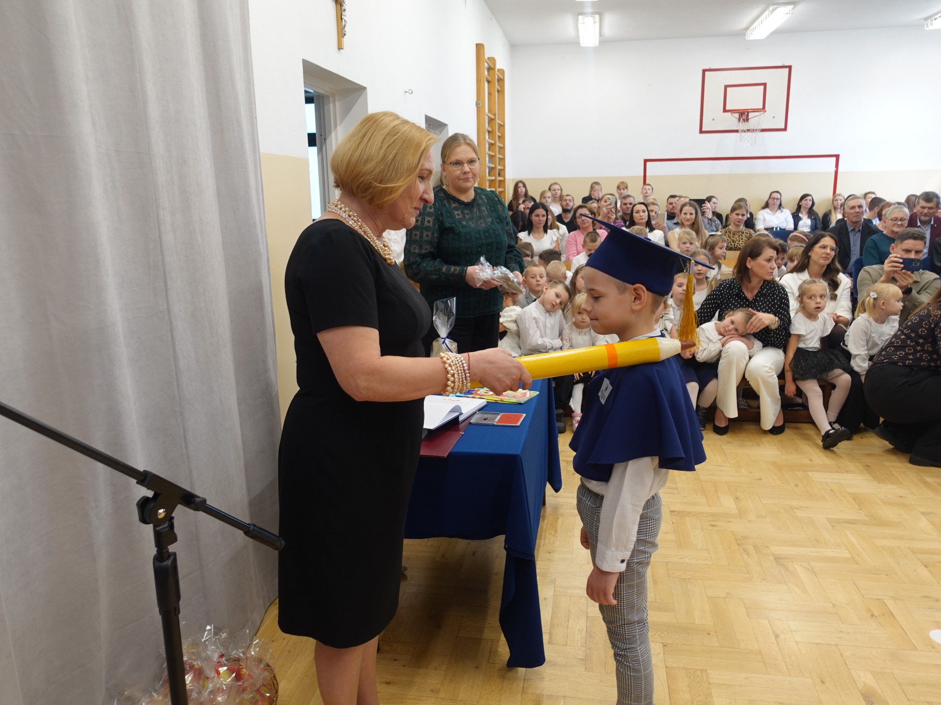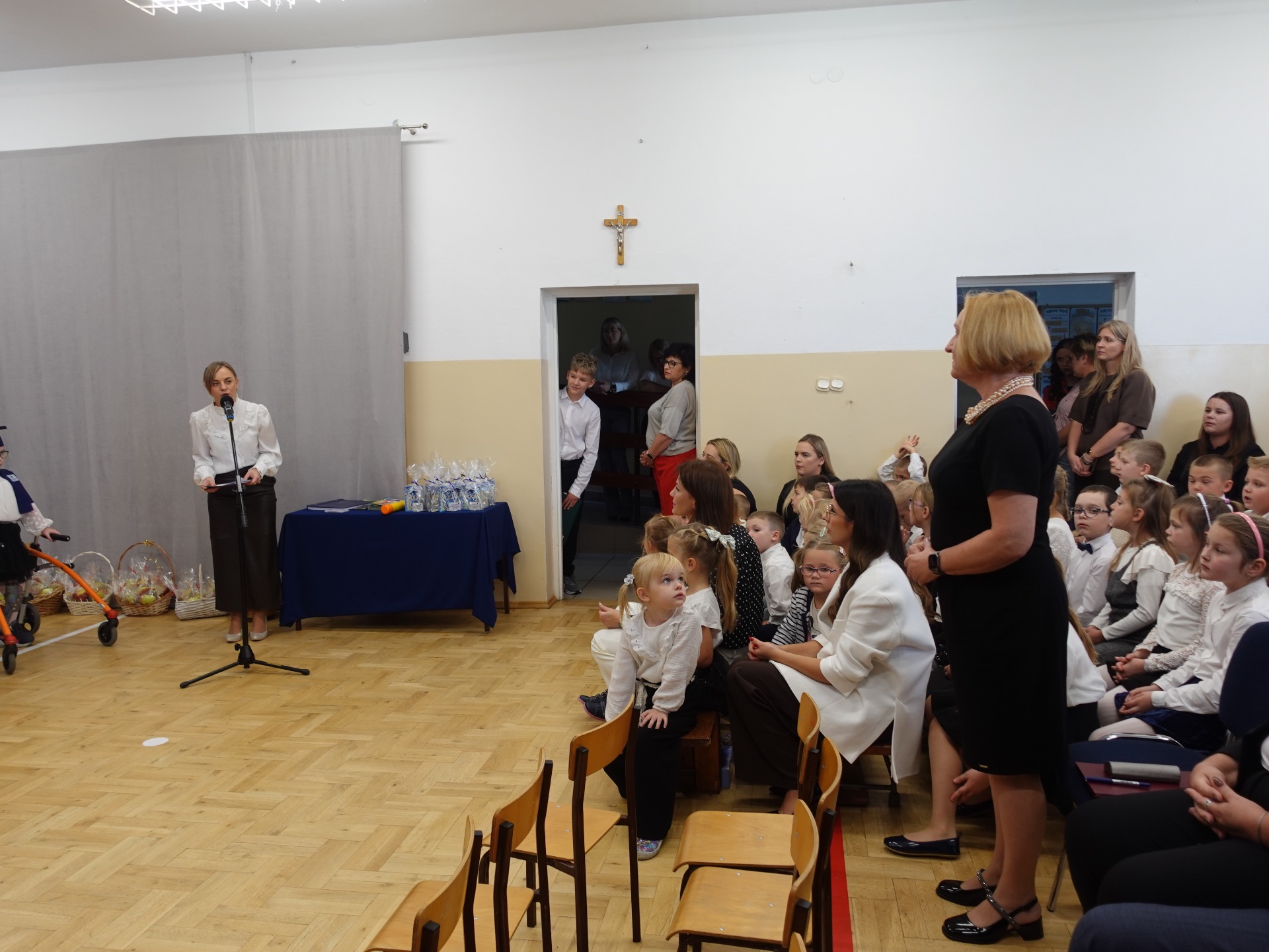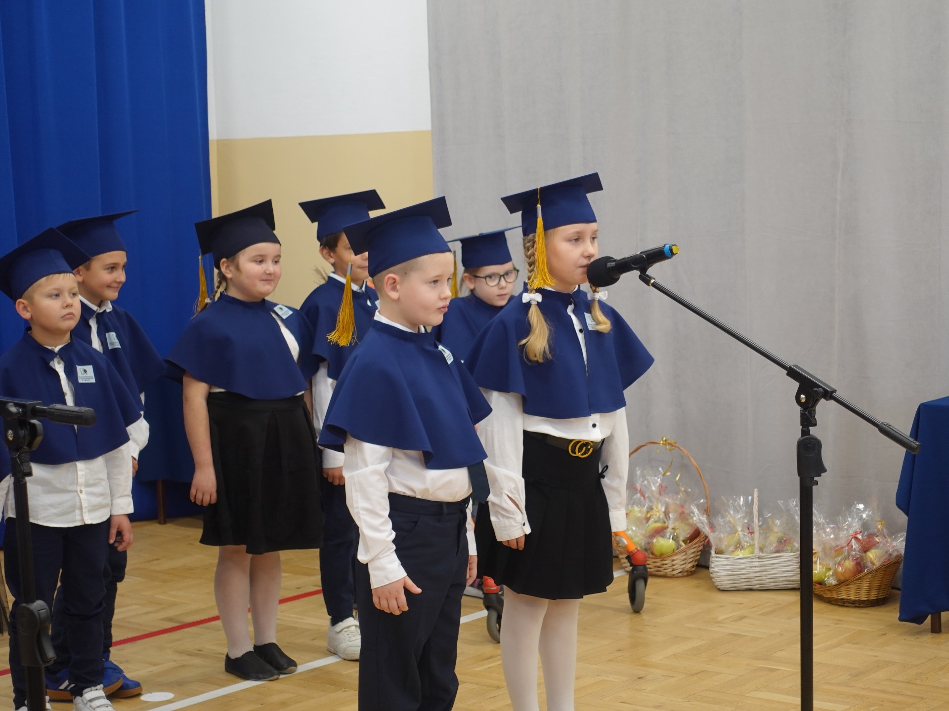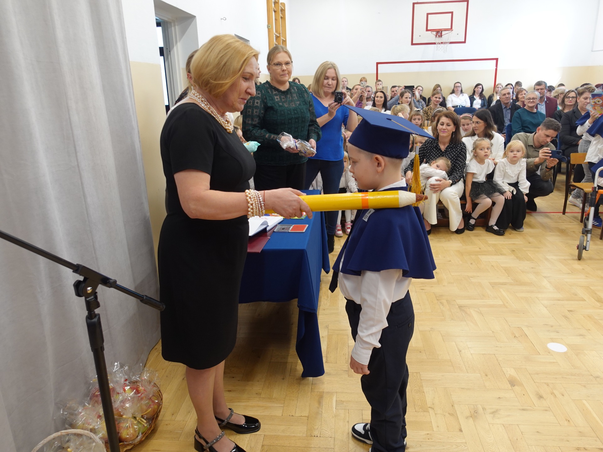 Był to szczególny dzień, który na długo pozostanie w pamięci każdego ucznia klasy pierwszej. Dzieci oficjalnie przyjęte zostały do grona uczniów naszej szkoły. Pierwszoklasiści odświętnie ubrani zaprezentowali swoje umiejętności. Recytowali wiersze, zaśpiewali i uroczyście zatańczyli specjalnie na tę okazję.