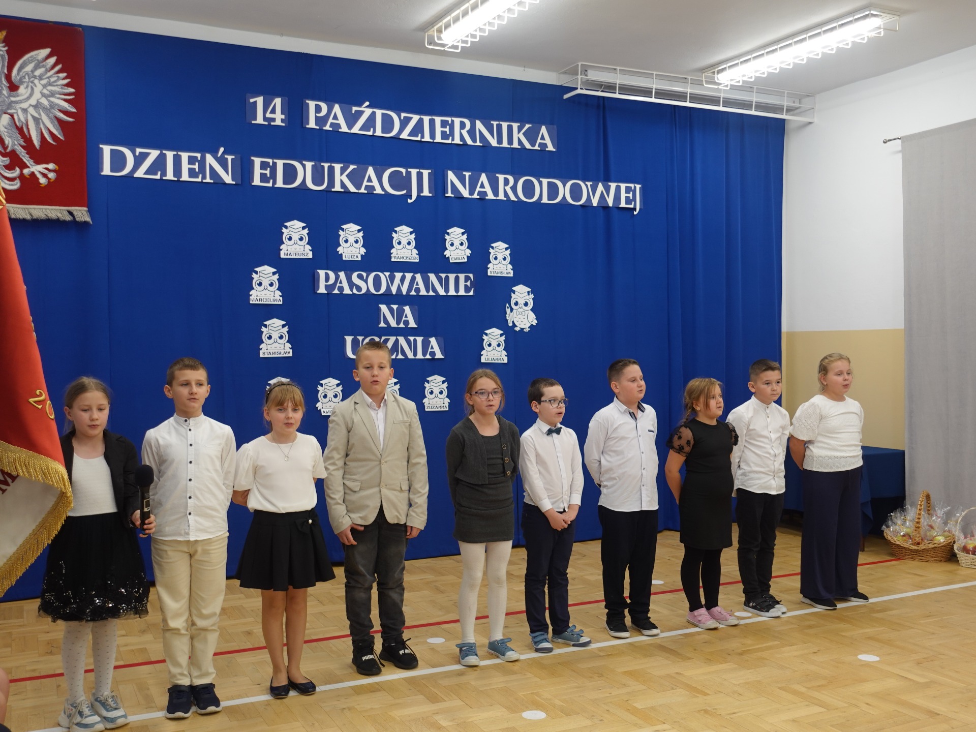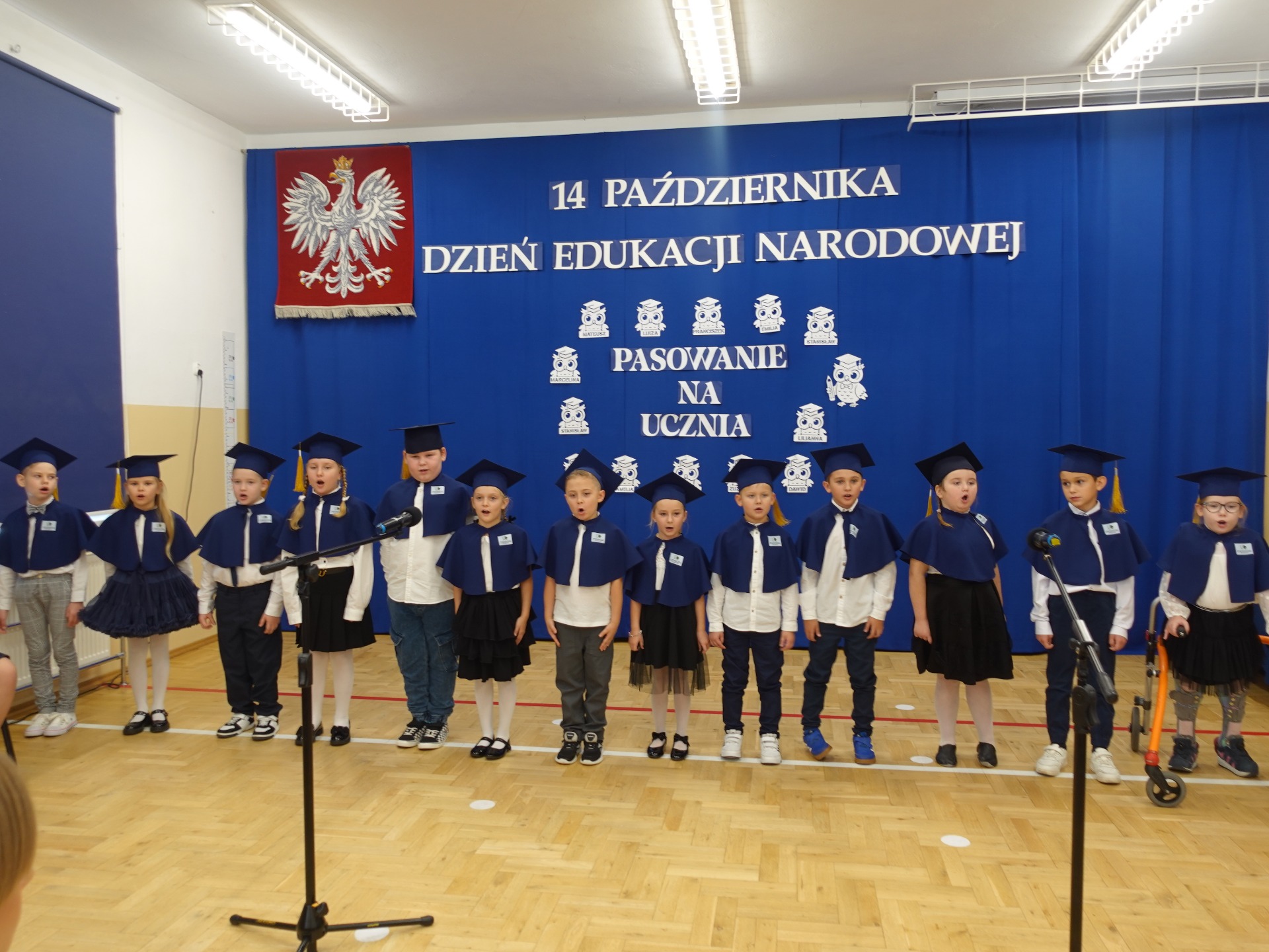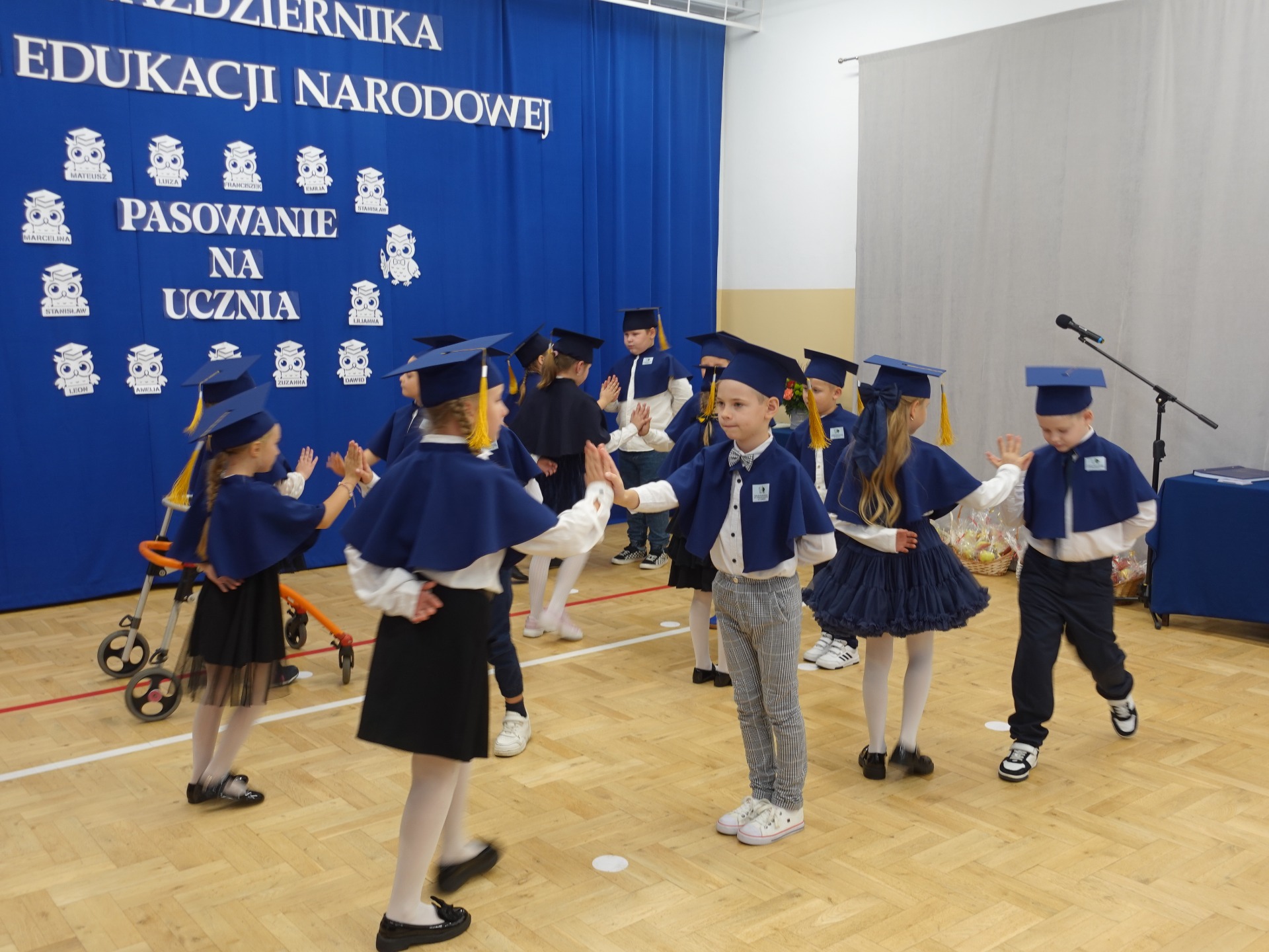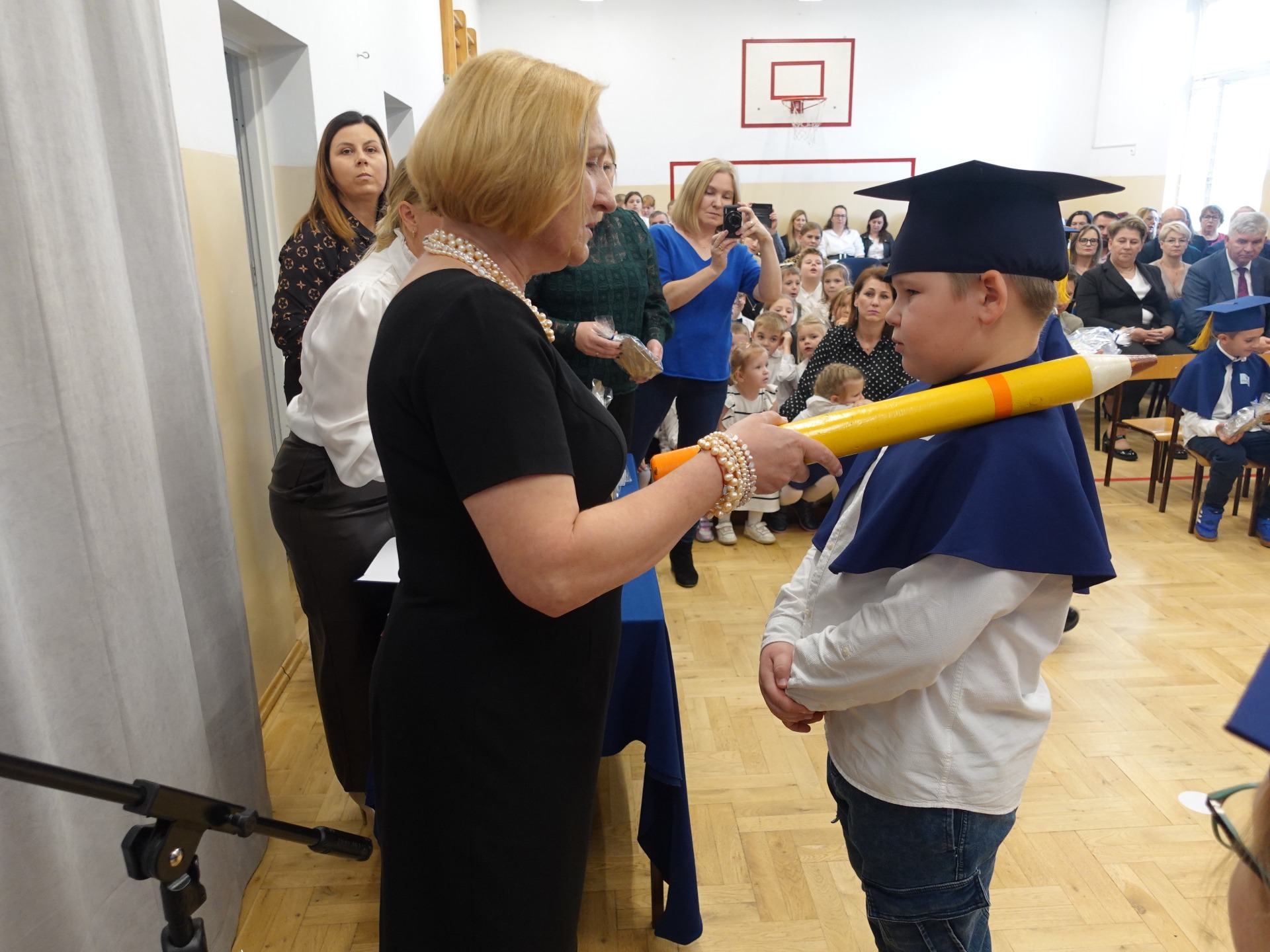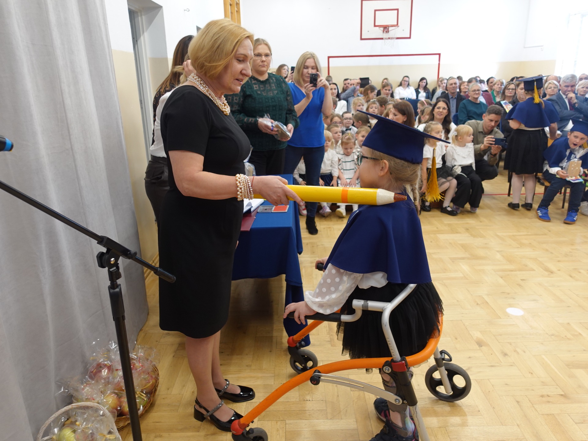 Był to szczególny dzień, który na długo pozostanie w pamięci każdego ucznia klasy pierwszej. Dzieci oficjalnie przyjęte zostały do grona uczniów naszej szkoły. Pierwszoklasiści odświętnie ubrani zaprezentowali swoje umiejętności. Recytowali wiersze, zaśpiewali i uroczyście zatańczyli specjalnie na tę okazję.