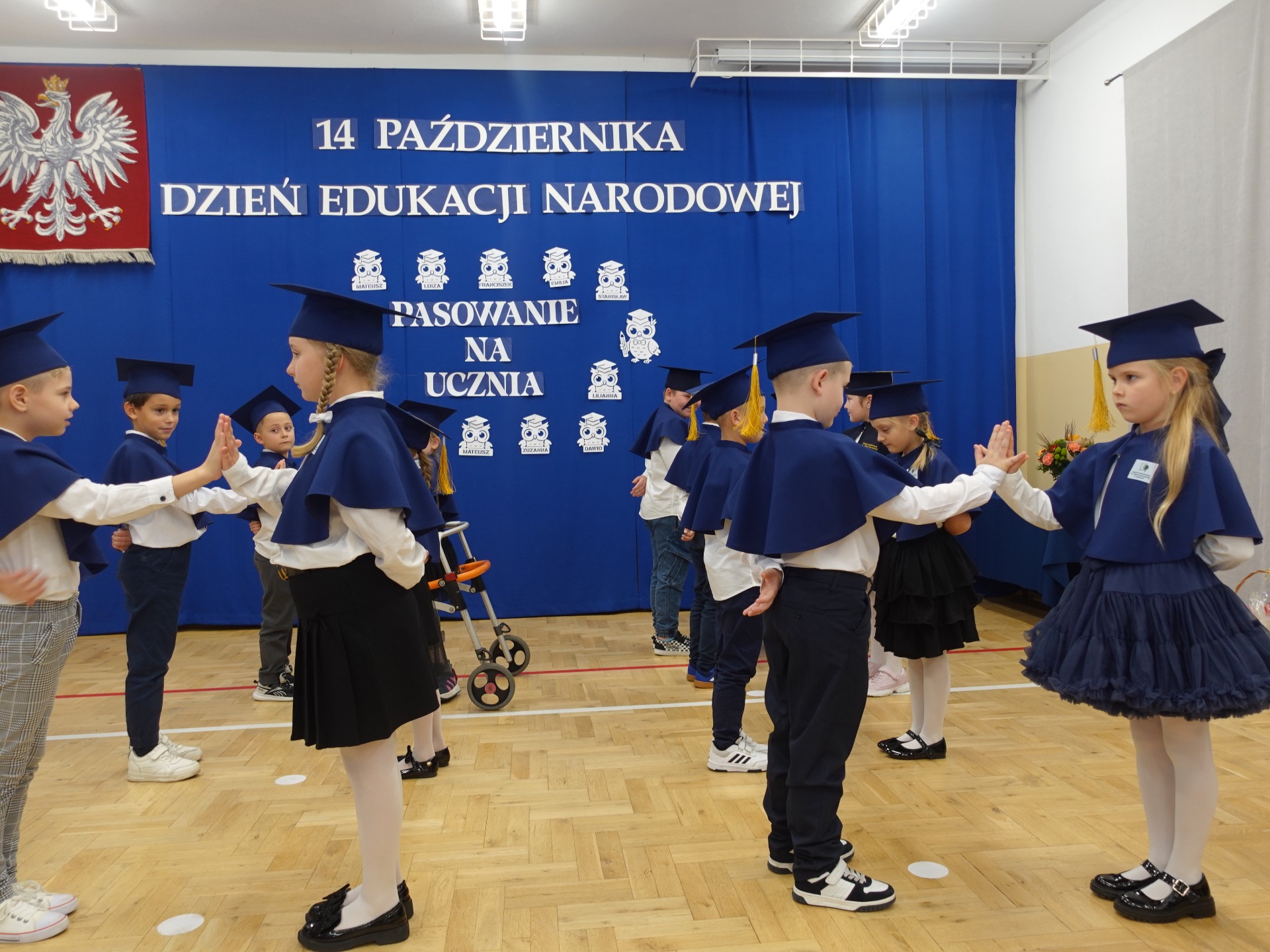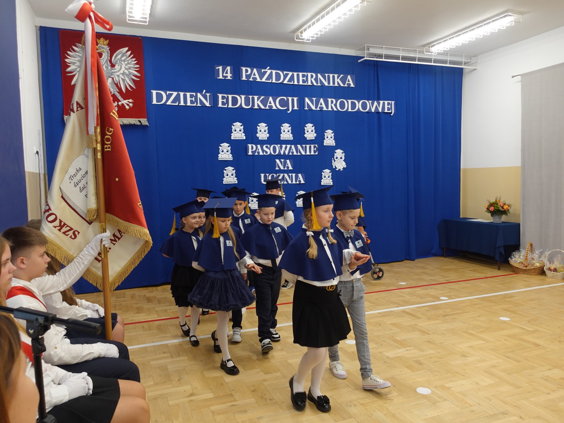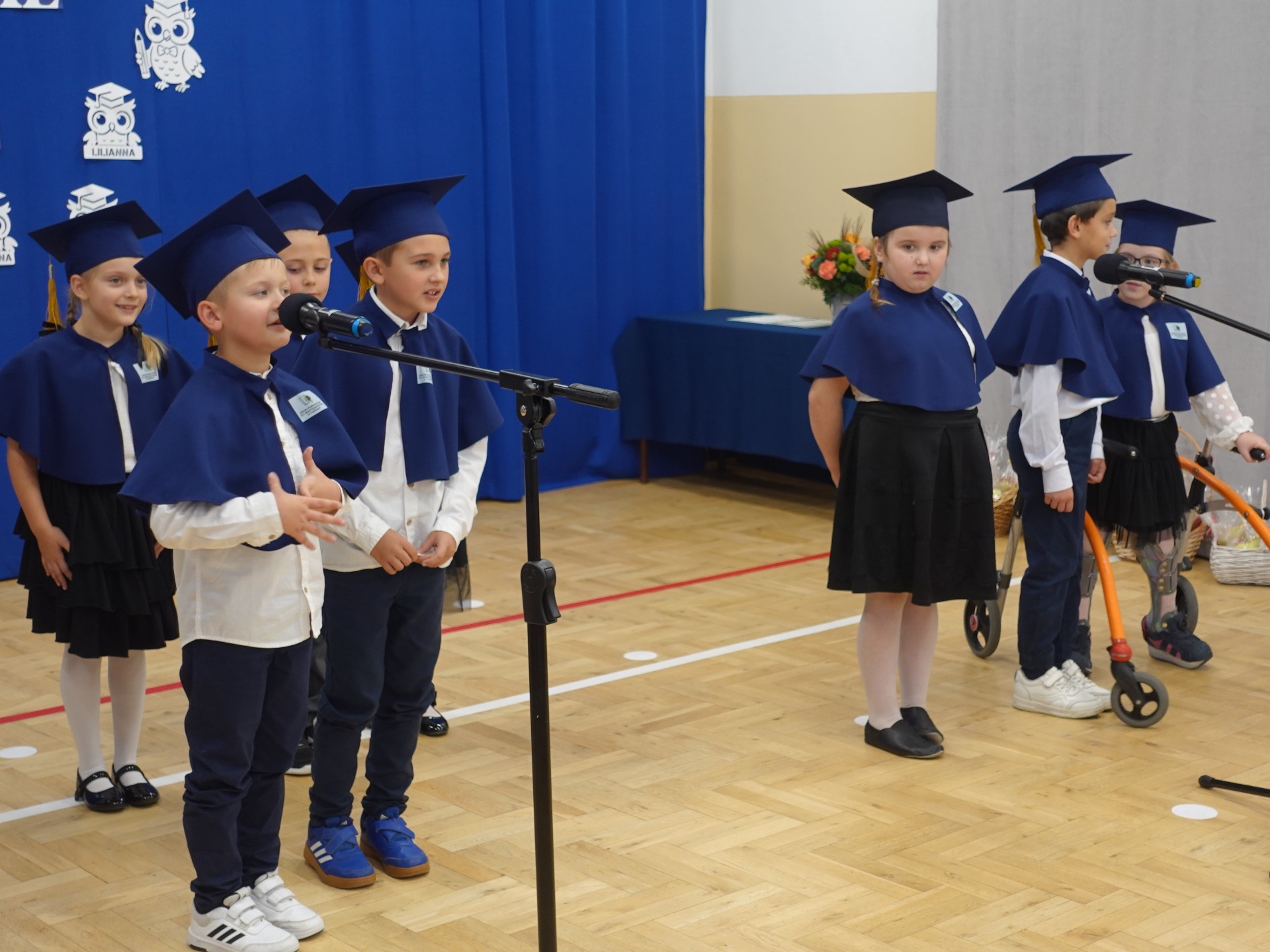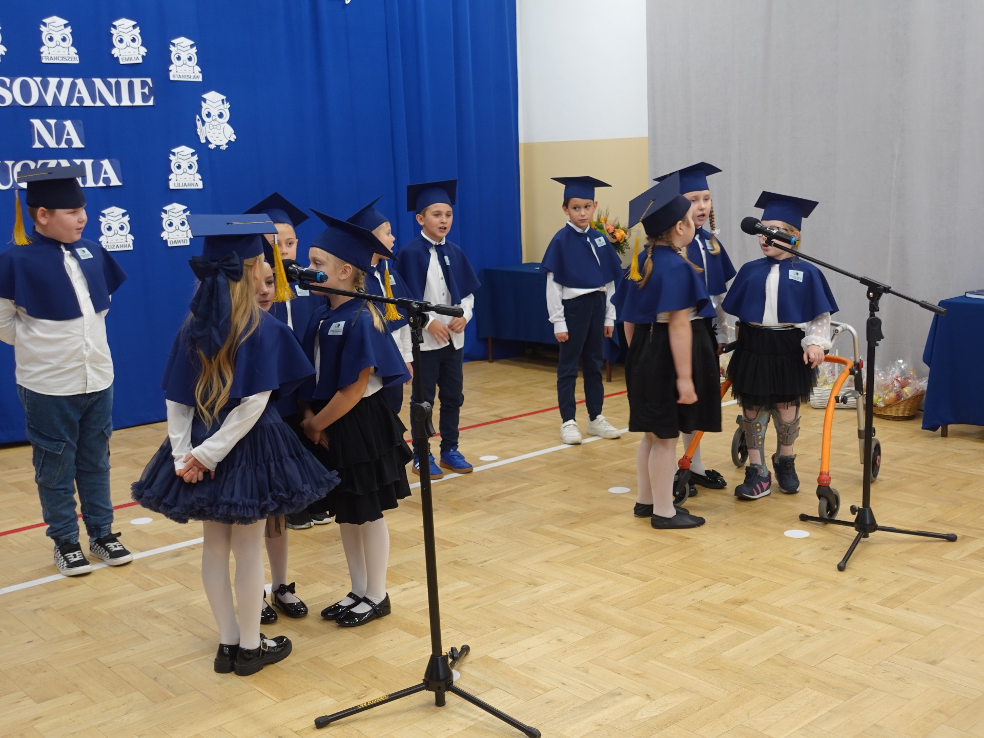 Był to szczególny dzień, który na długo pozostanie w pamięci każdego ucznia klasy pierwszej. Dzieci oficjalnie przyjęte zostały do grona uczniów naszej szkoły. Pierwszoklasiści odświętnie ubrani zaprezentowali swoje umiejętności. Recytowali wiersze, zaśpiewali i uroczyście zatańczyli specjalnie na tę okazję.