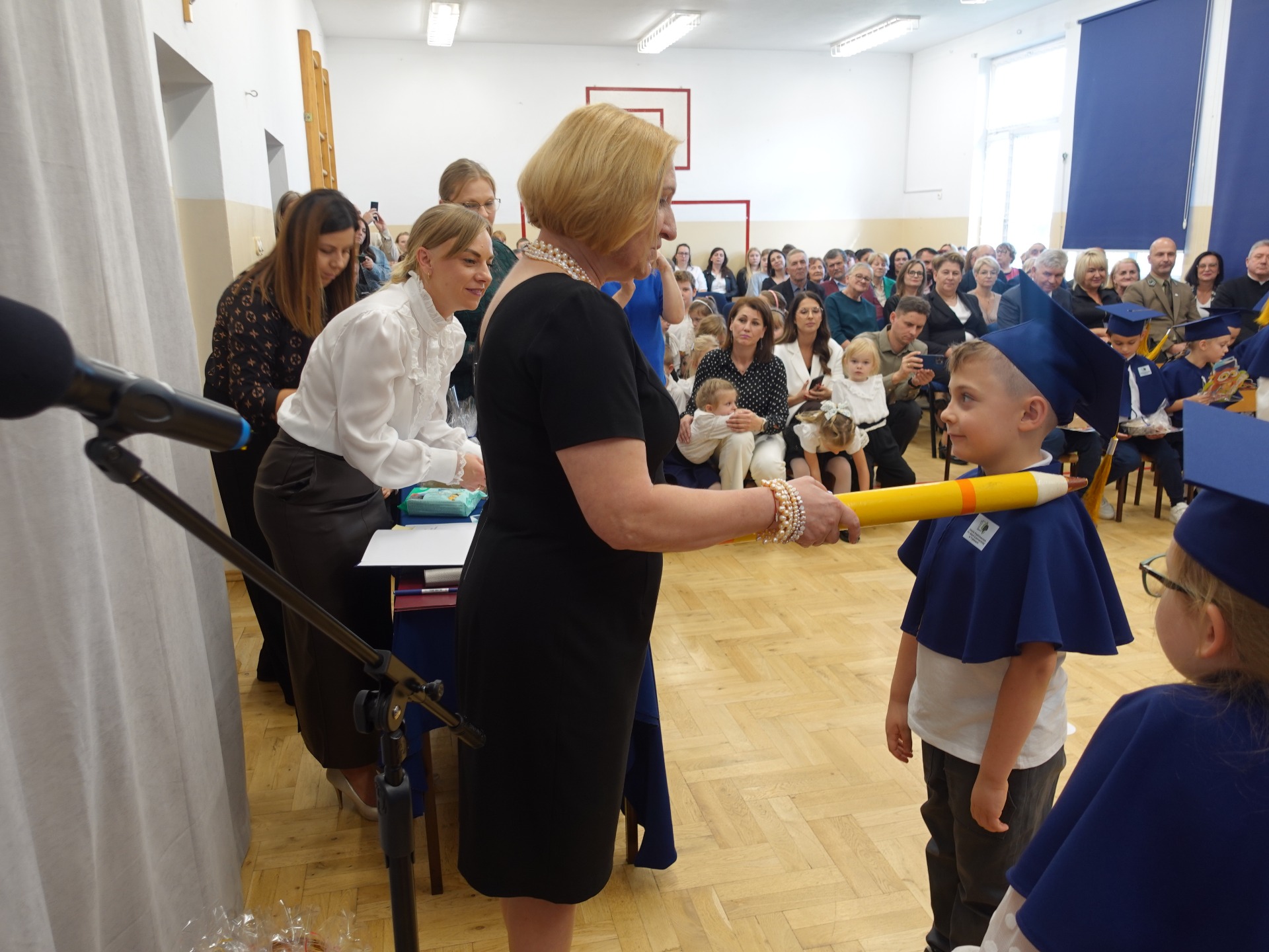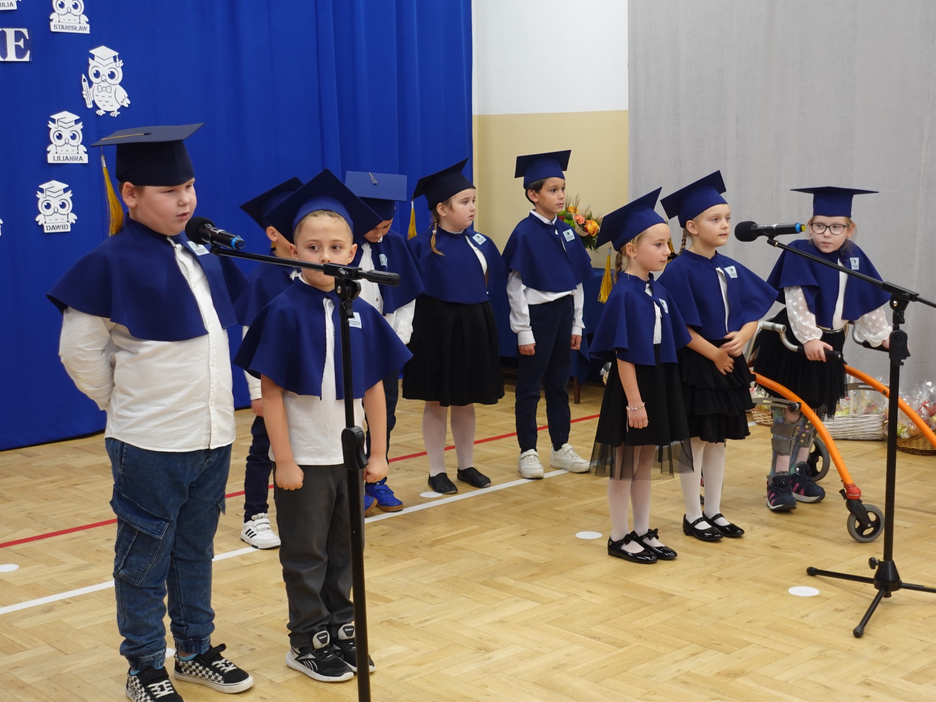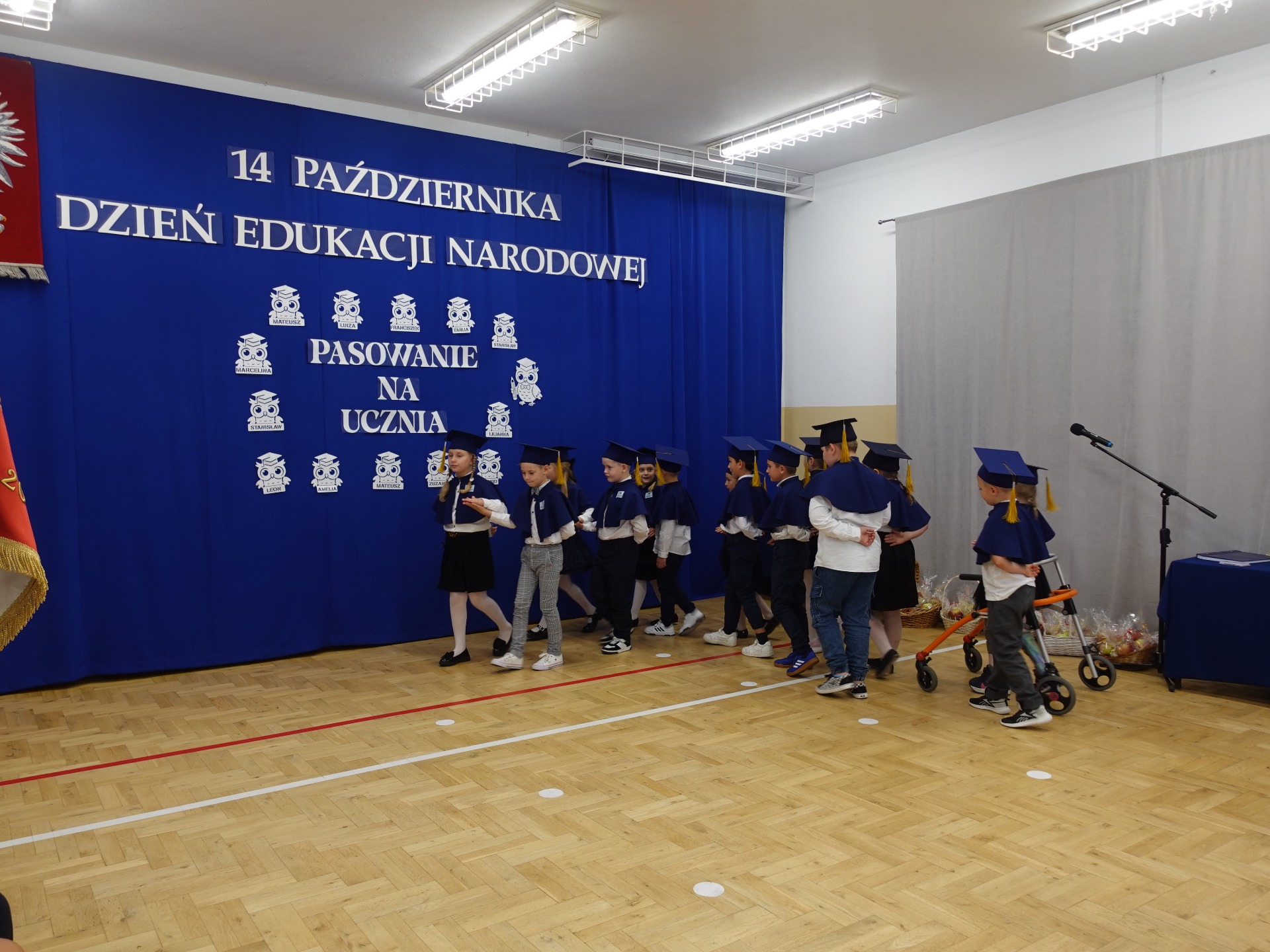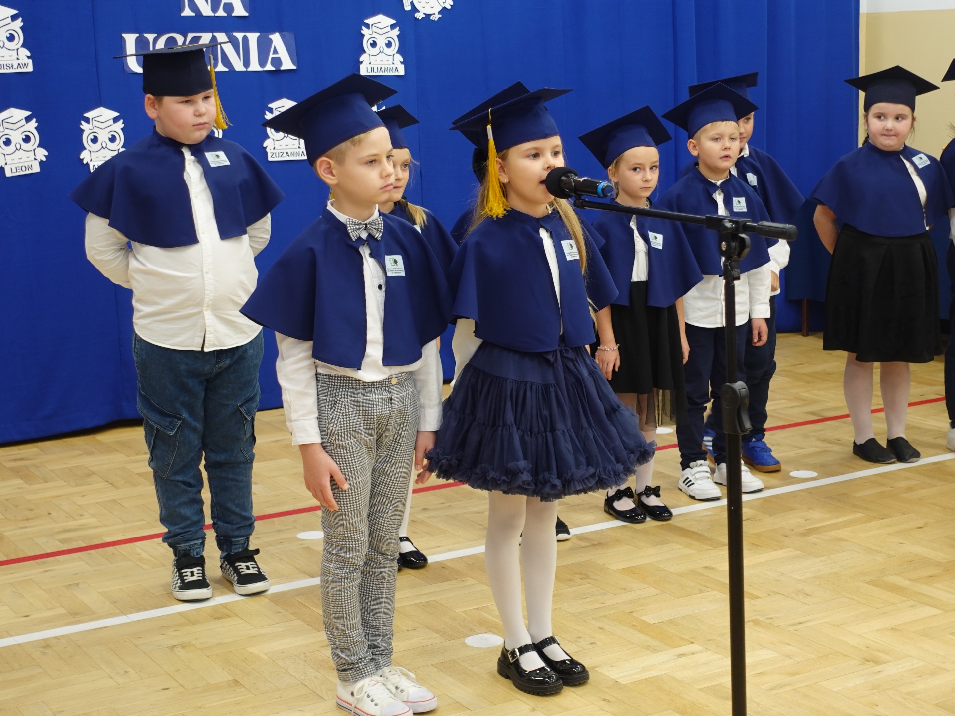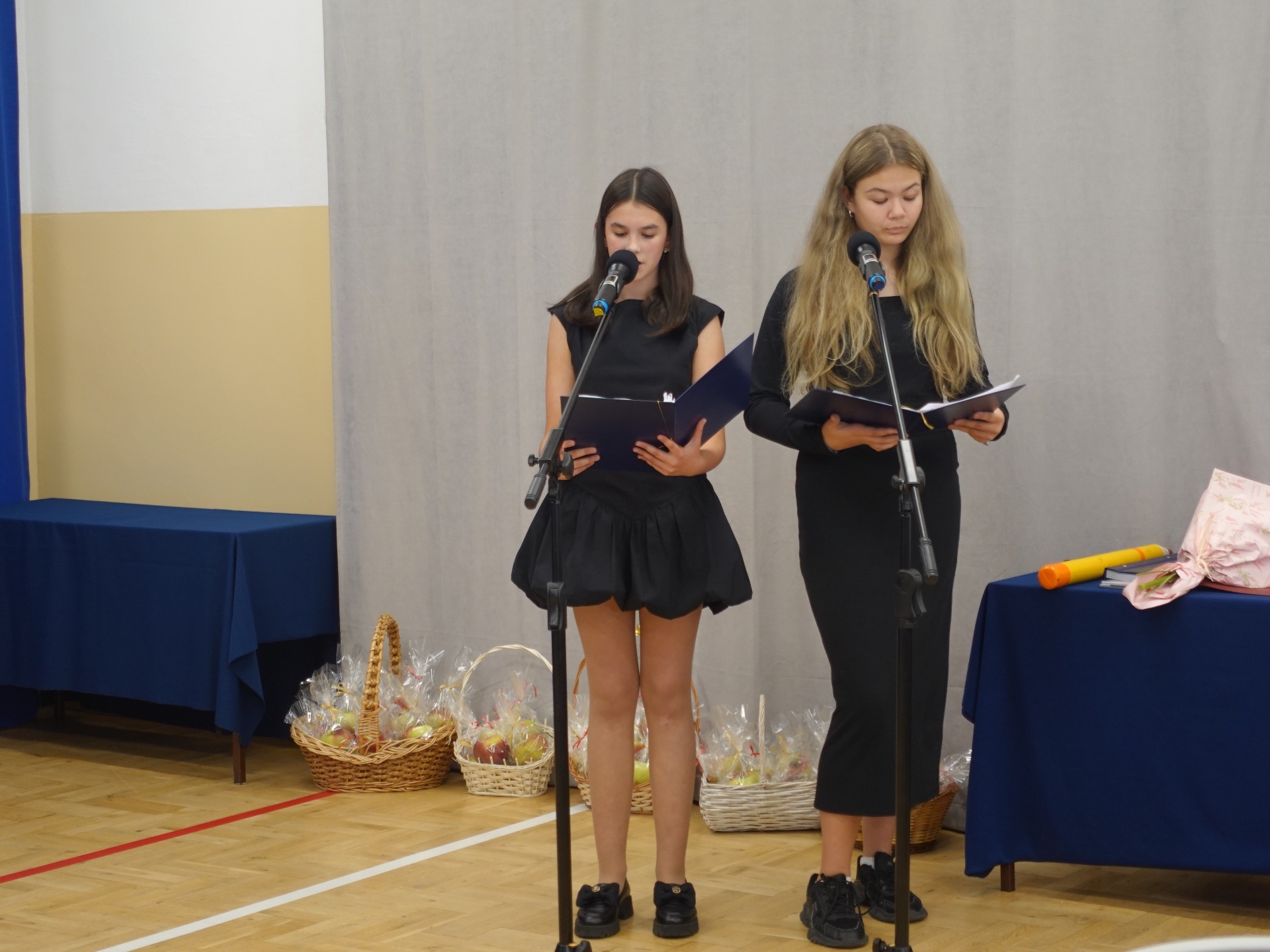 Był to szczególny dzień, który na długo pozostanie w pamięci każdego ucznia klasy pierwszej. Dzieci oficjalnie przyjęte zostały do grona uczniów naszej szkoły. Pierwszoklasiści odświętnie ubrani zaprezentowali swoje umiejętności. Recytowali wiersze, zaśpiewali i uroczyście zatańczyli specjalnie na tę okazję.