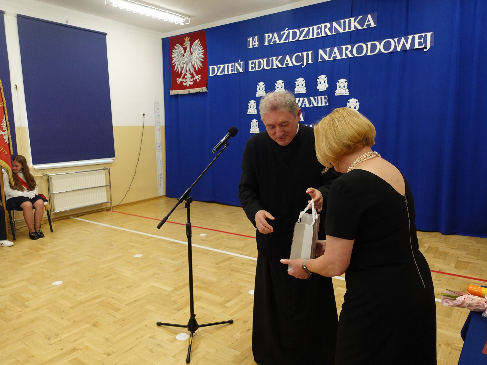 Część artystyczną z okazji Dnia Edukacji Narodowej przygotowała pani Beata Gajdecka wraz z klasą trzecią. Dzieci wierszem i piosenką podziękowały nauczycielom i rodzicom troskę, zaangażowanie w edukację, wyrozumiałość i cierpliwość.