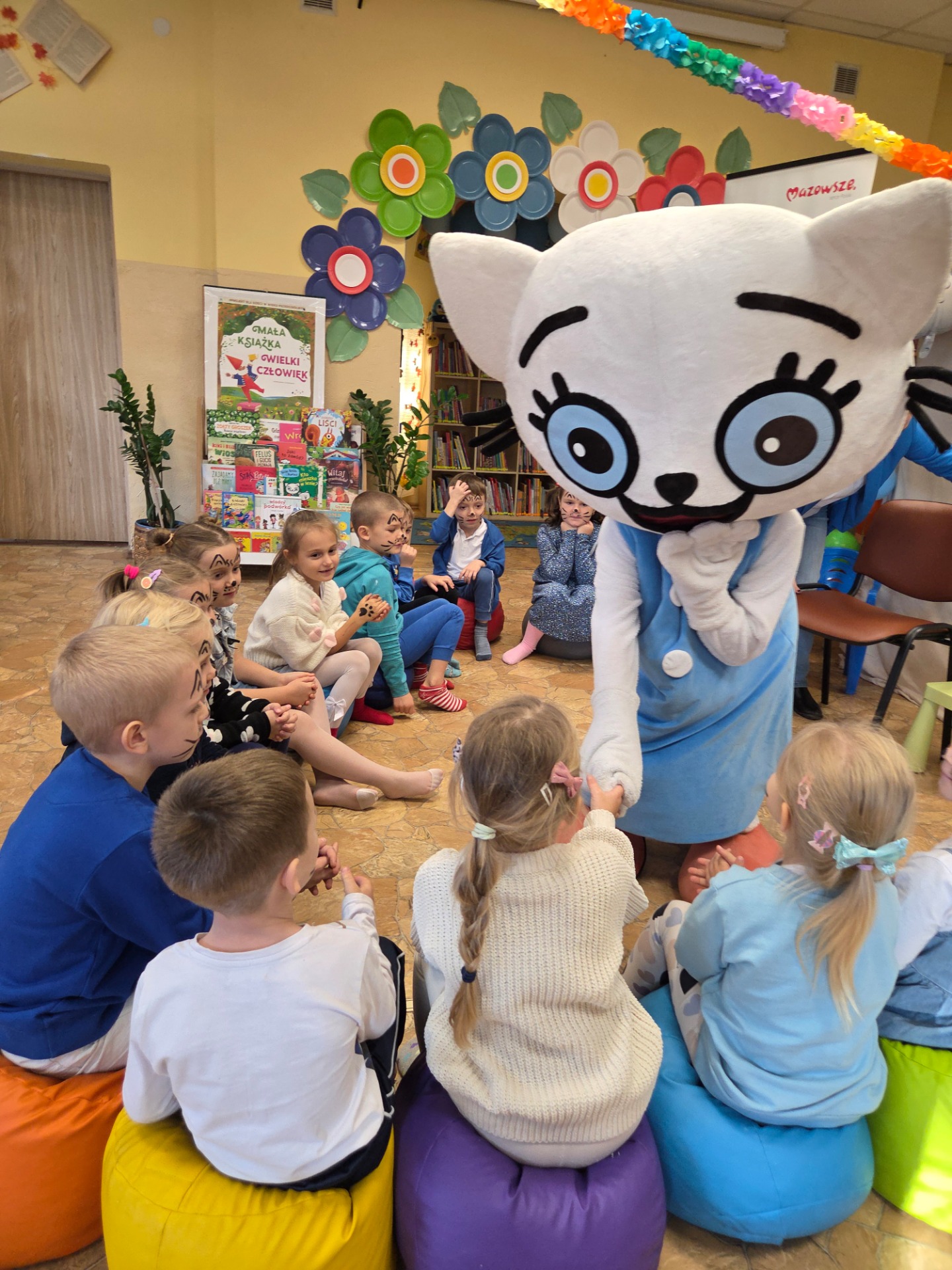 Spotkanie z Kicią Kocią wywołało ogromne emocje i radość wśród przedszkolaków, które mogły zobaczyć swoją ulubioną postać na żywo. Dzieci były podekscytowane, widząc bohaterkę, o której tyle słyszały i czytały. Dzięki temu spotkaniu kontynuujemy przygodę z Kicią Kocią w domowym zaciszu, ponieważ dzieci wypożyczyły sobie książeczki, rozwijając swoje zamiłowanie do wspólnego czytania książek z rodzicami.