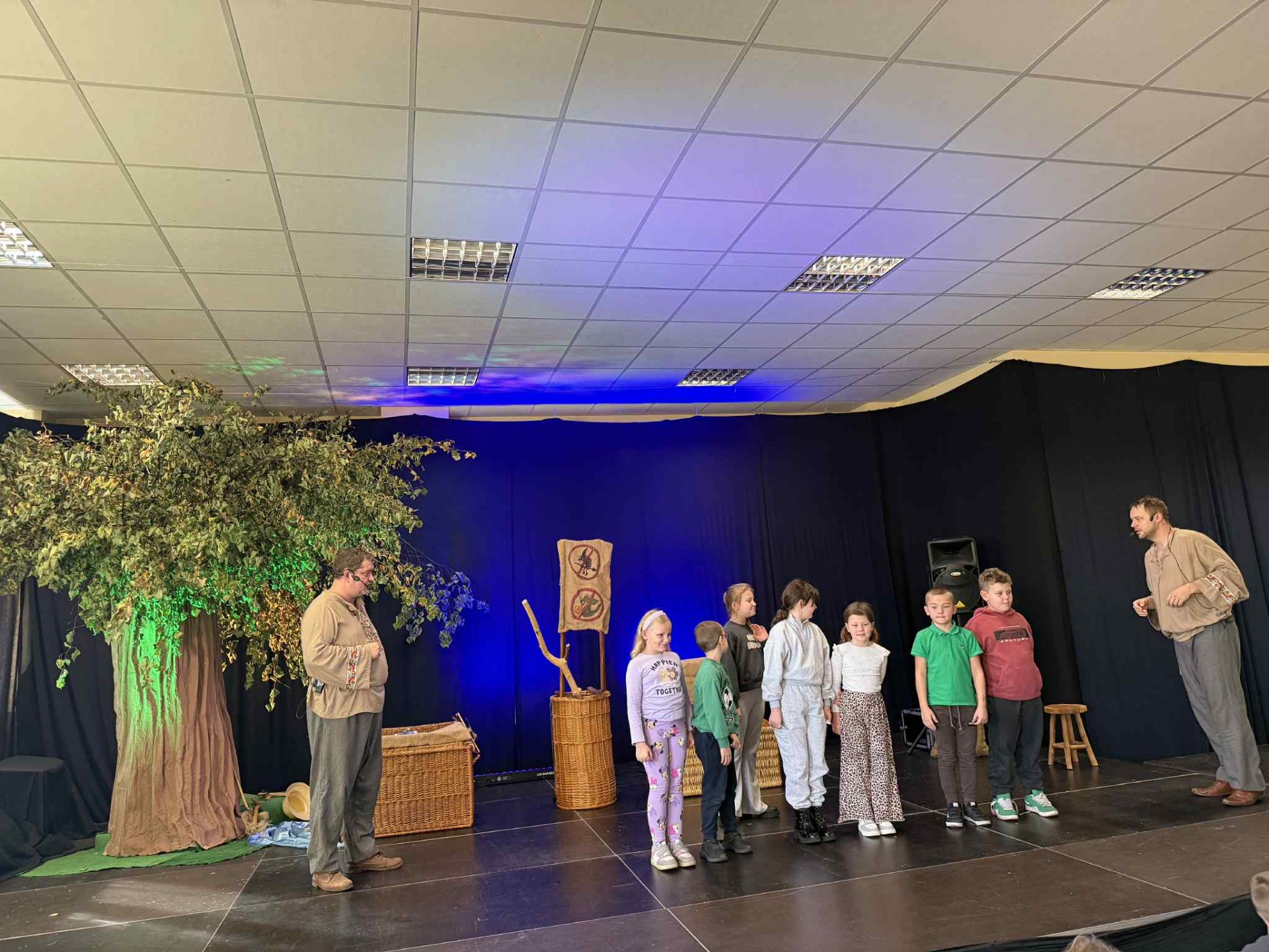 W role głównych bohaterów wcielili się Łukasz Jarzyński oraz Przemysław Jarzyński-znakomici aktorzy, którzy w wielką pasją i zaangażowaniem przeprowadzili uczniów przez pełną humoru i mądrości opowieść o dwóch kupcach, Wierzbie i Kasztanie, którzy oprócz zaplatania koszy z wikliny „plotą” również zasłyszane podczas swych podróży ciekawe historie i legendy.