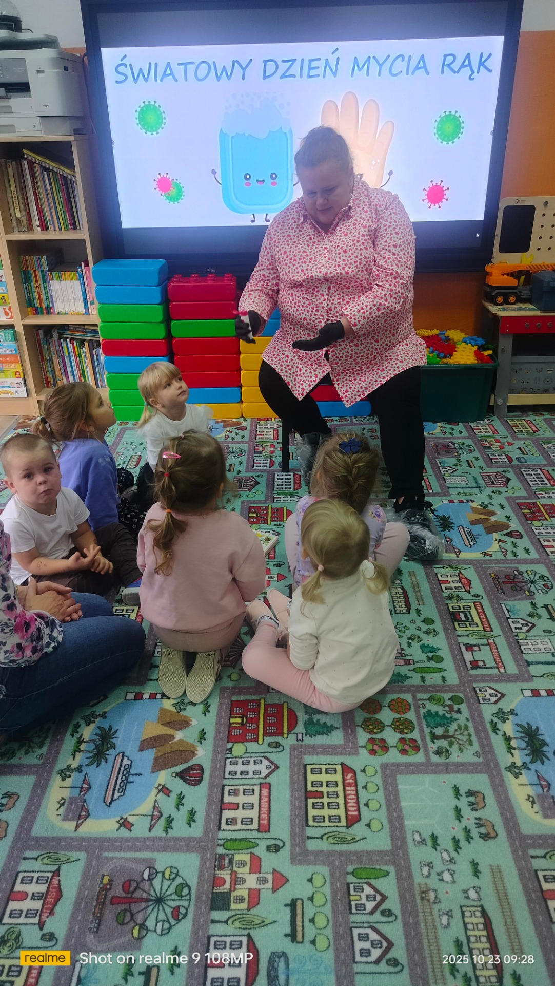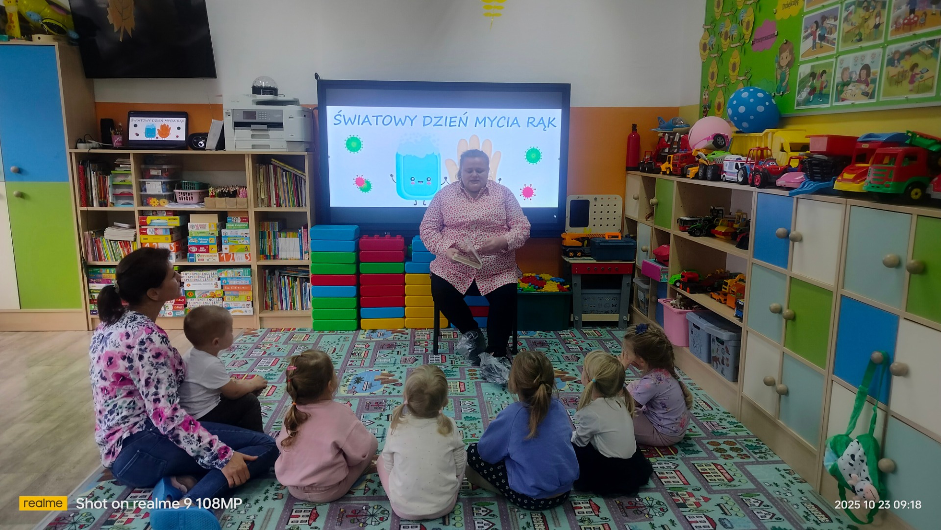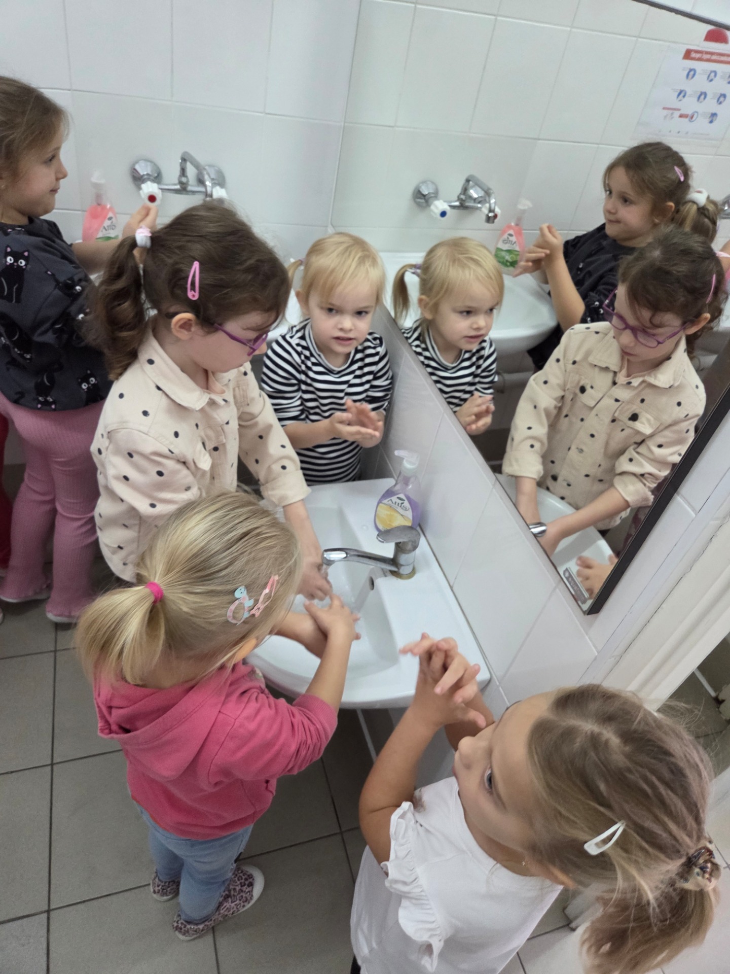 23 października w obu grupach przedszkolnych Pszczółkach i Słoneczkach obchodziliśmy ,,Światowy Dzień Mycia Rąk". Celem tego Dnia jest uświadomienie przedszkolakom, jak duże znaczenie dla ich zdrowia i życia ma mycie rąk, które może uchronić przed zakażeniem wieloma chorobami.