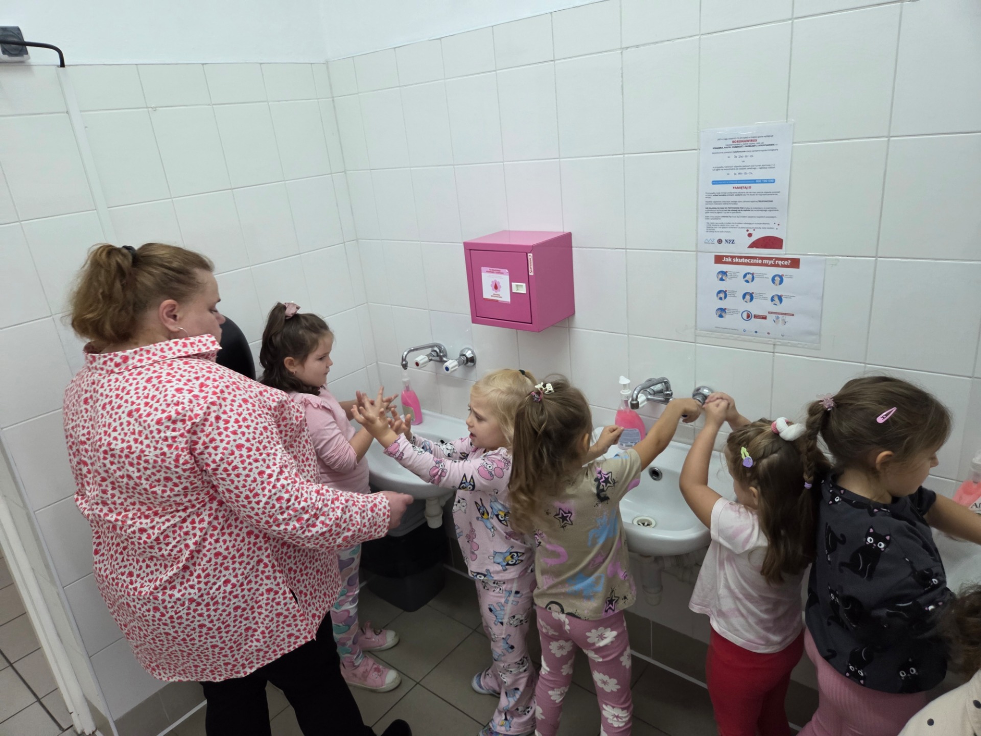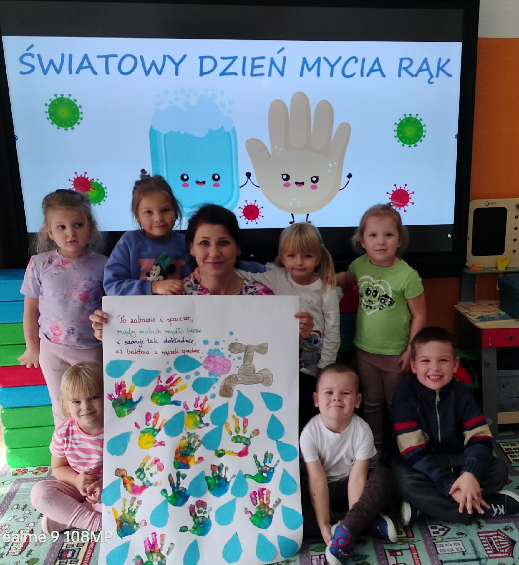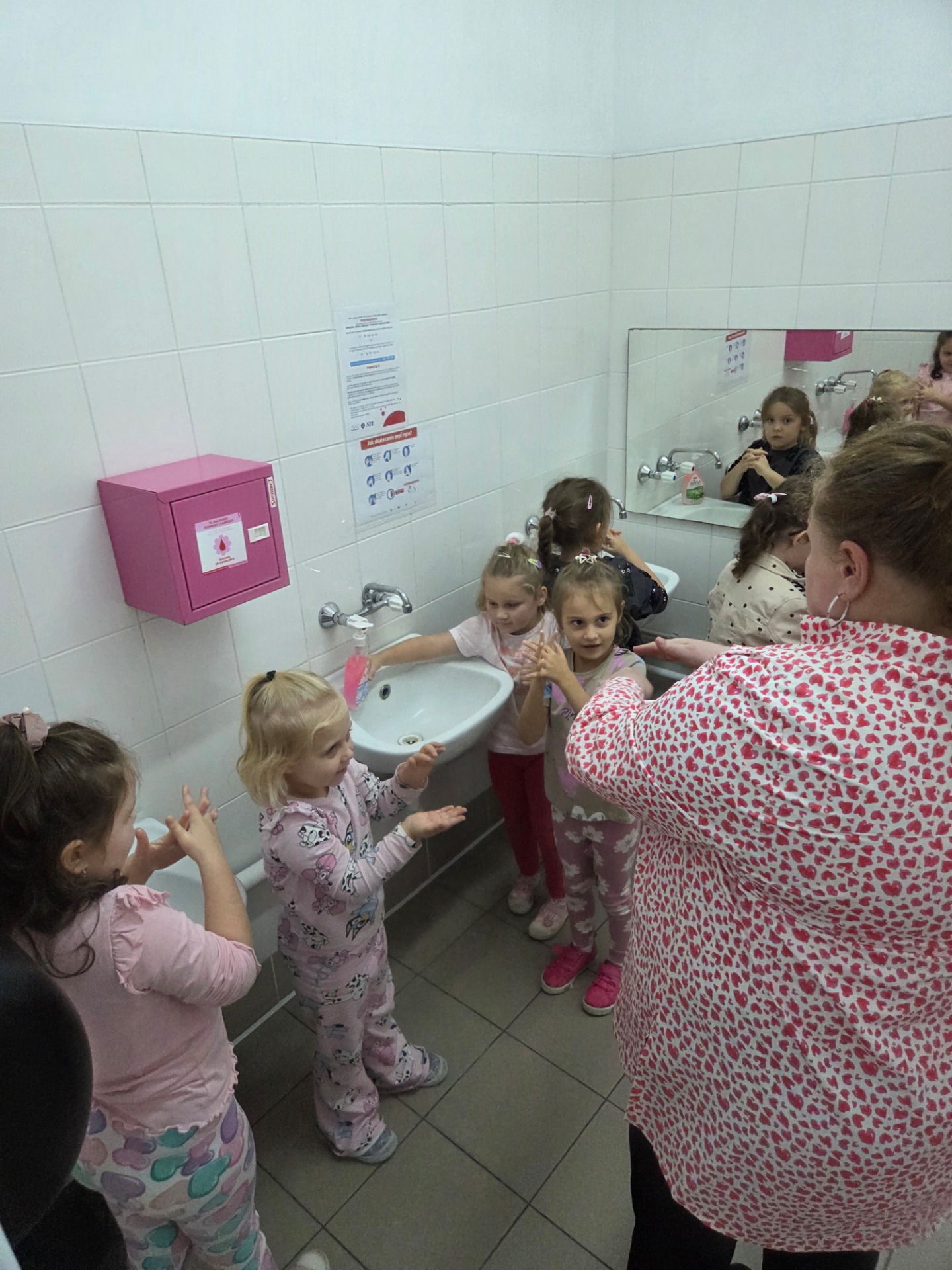 23 października w obu grupach przedszkolnych Pszczółkach i Słoneczkach obchodziliśmy ,,Światowy Dzień Mycia Rąk". Celem tego Dnia jest uświadomienie przedszkolakom, jak duże znaczenie dla ich zdrowia i życia ma mycie rąk, które może uchronić przed zakażeniem wieloma chorobami.