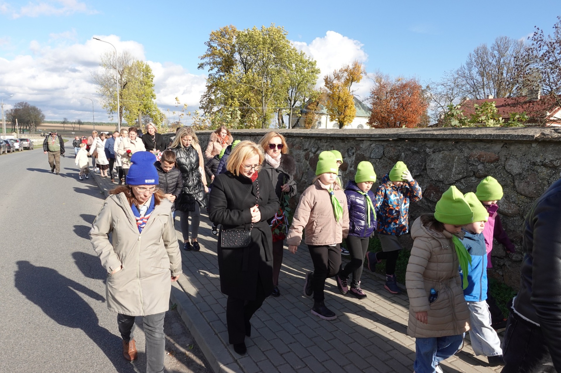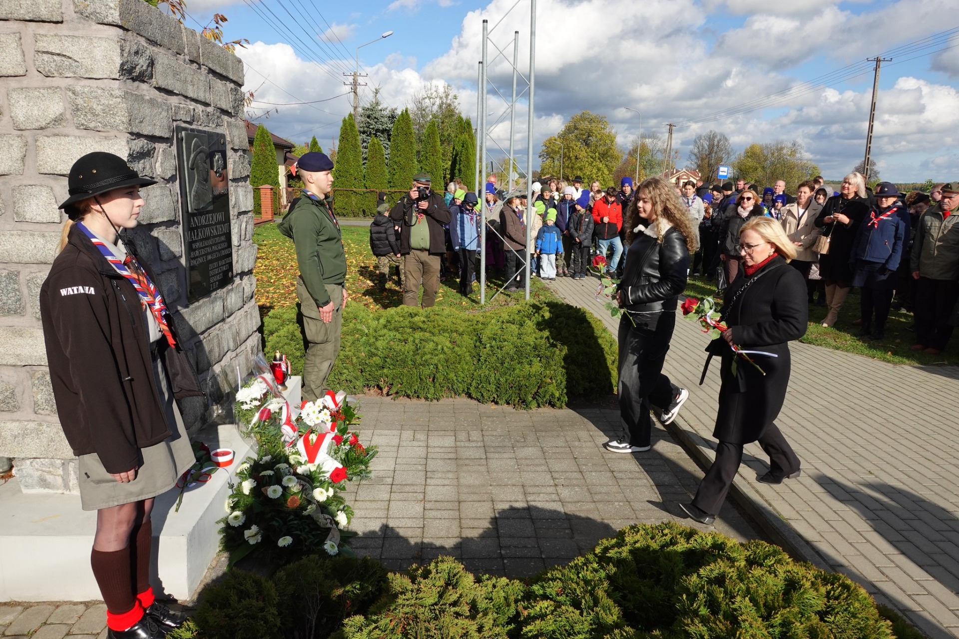 Następnie wszyscy uczestnicy udali się pod pomnik Andrzeja Małkowskiego oraz pod tablicę upamiętniającą miejsce jego urodzenia, aby złożyć znicze i kwiaty.