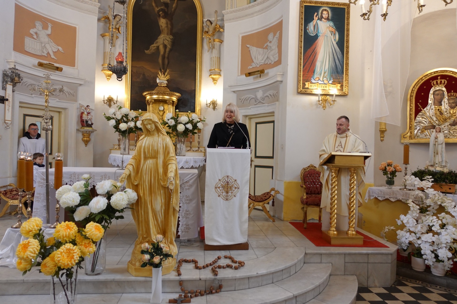 Podczas mszy Pani Wójt Barbara Stępniak przypomniała sylwetkę Andrzeja Małkowskiego - człowieka, który całe swoje życie i majątek poświęcił idei wychowania poprzez służbę i miłość do Ojczyzny.