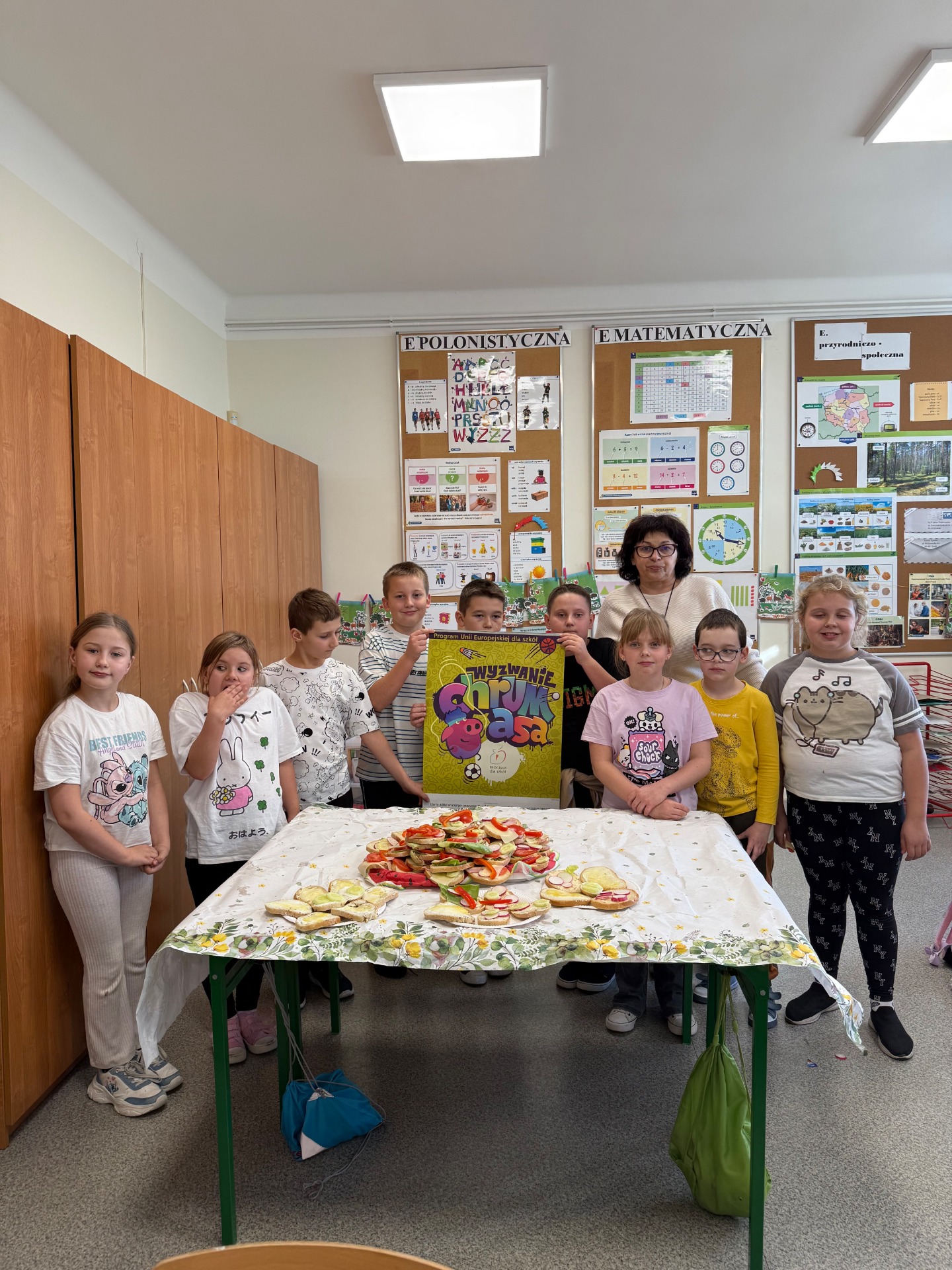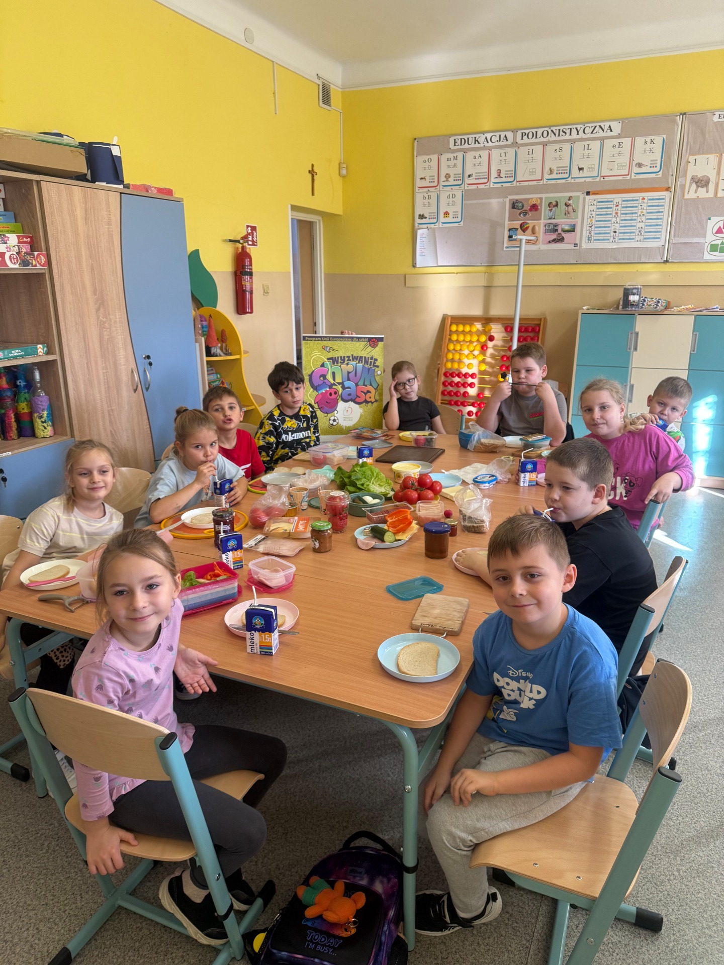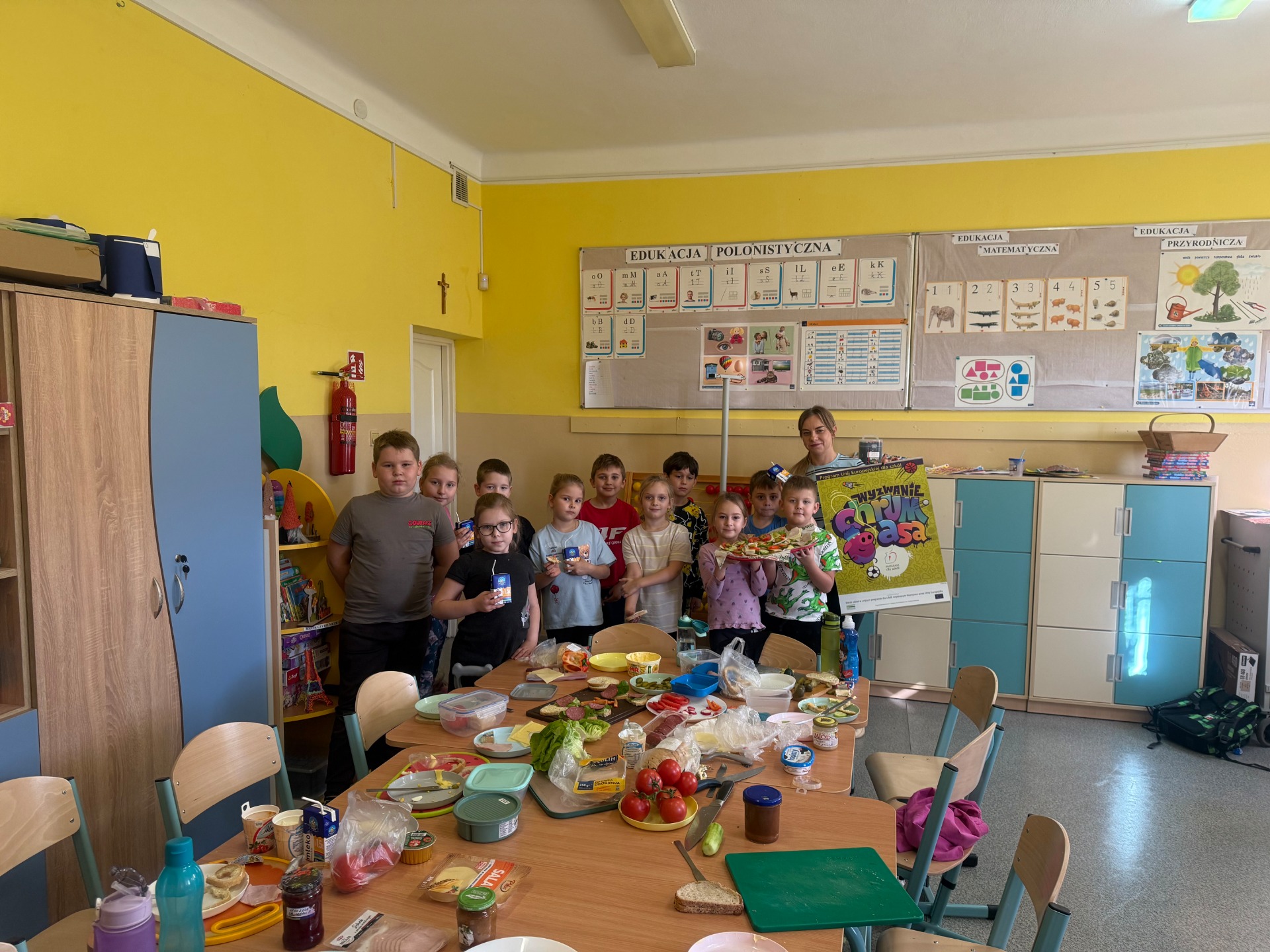 Z tej okazji uczniowie klas I-III wraz z wychowawcami przy pomocy pań kucharek z wielkim zaangażowaniem przygotowali zdrowe i kolorowe kanapki dla całej społeczności szkolnej.