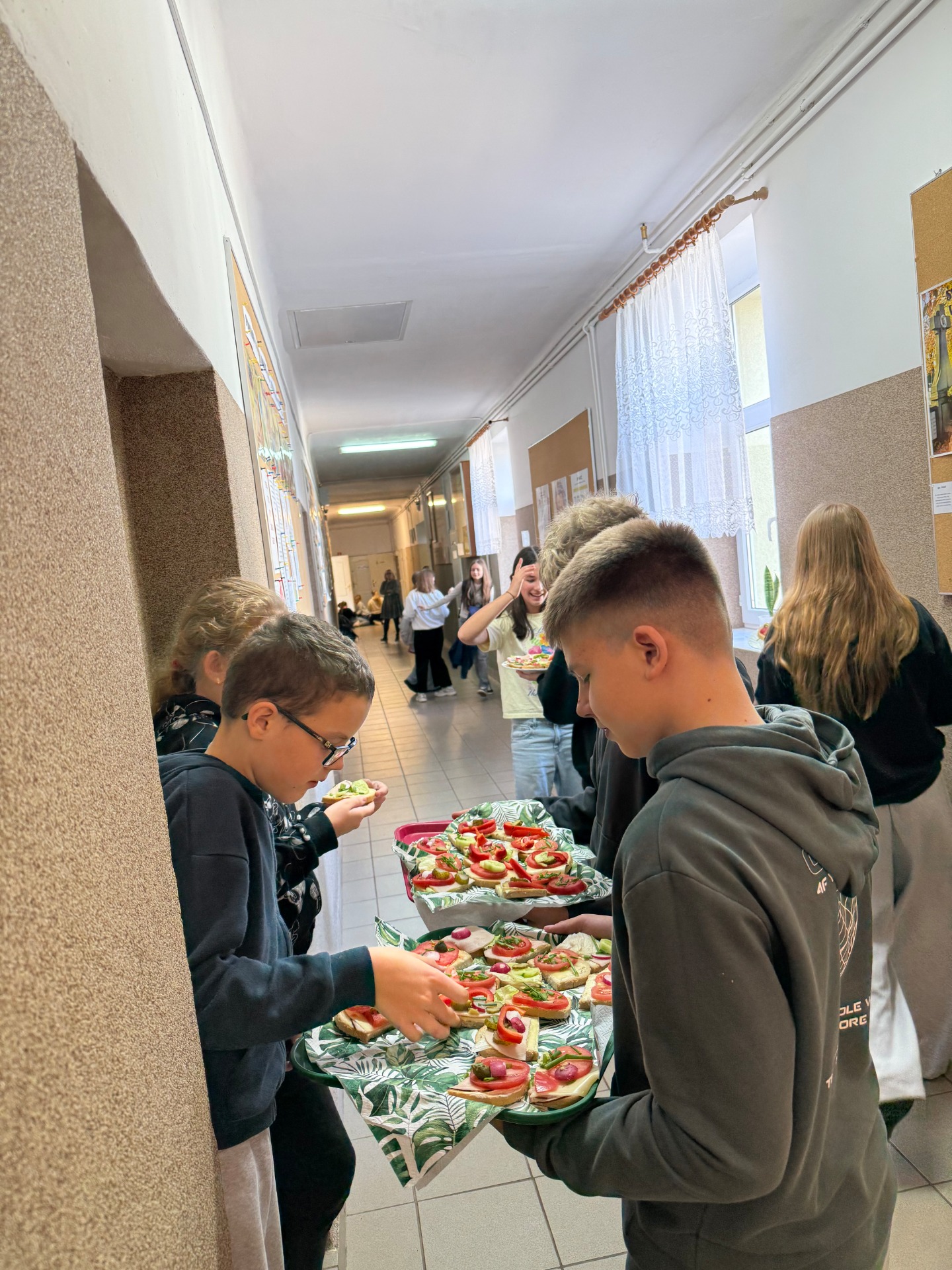 Po szkolnym korytarzu unosił się zapach świeżego pieczywa, a stoliki w klasach zapełniły się smakowitymi kompozycjami warzyw, wędlin i past. Uczniowie pracowali w zespołach, dbając nie tylko o estetykę, ale i wartość odżywczą przekąsek. Każda kanapka była pełna witamin oraz serca włożonego w jej przygotowanie.