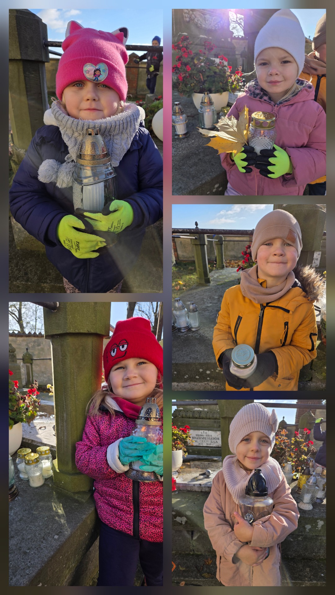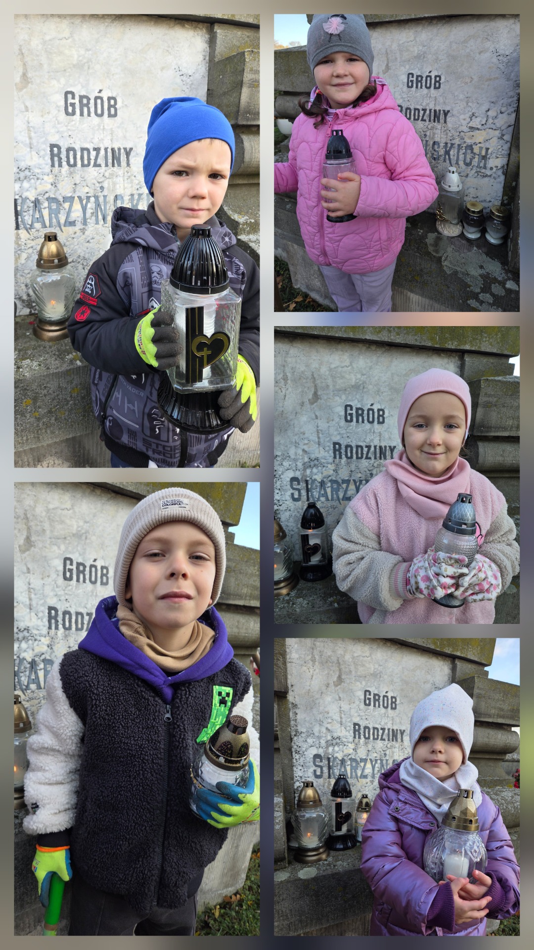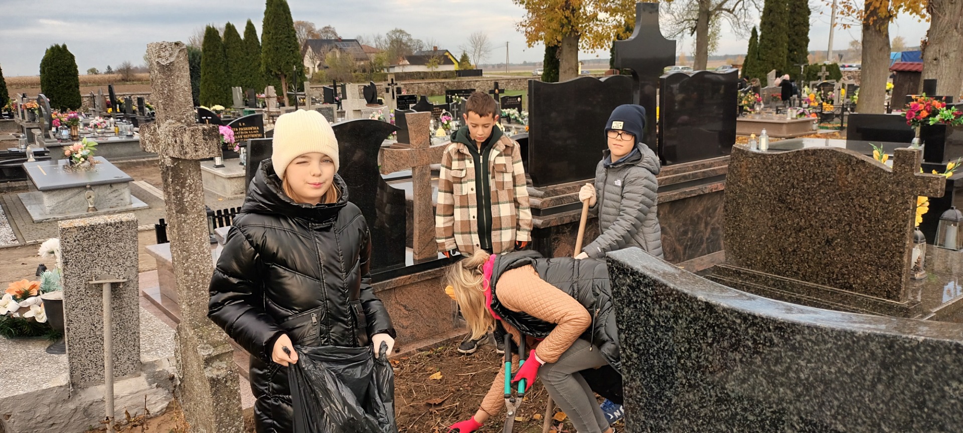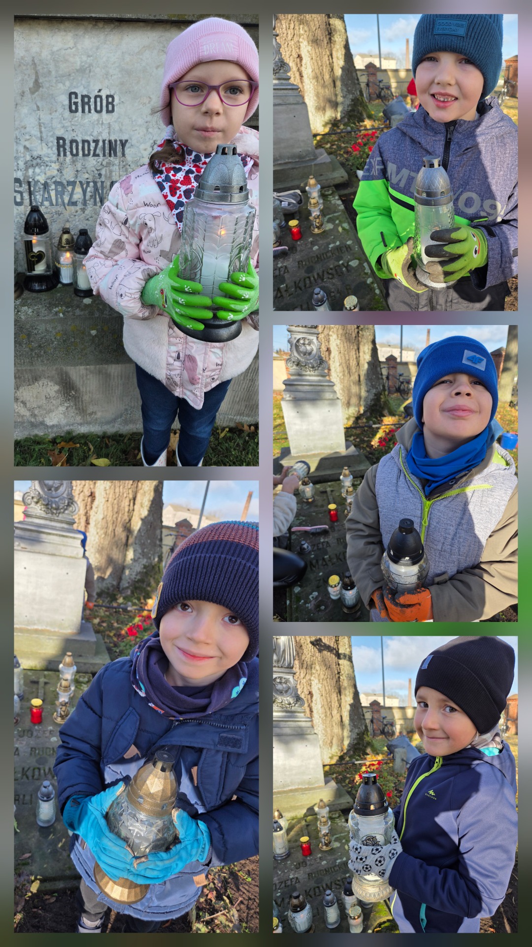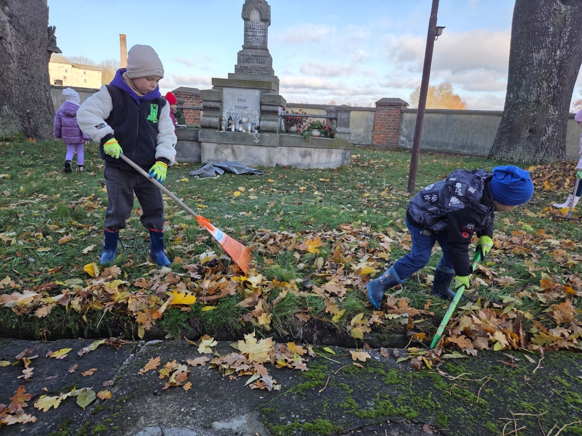 Dzieci z punktu i oddziału przedszkolnego oraz uczniowie klas I–III również włączyli się w akcję, porządkując groby i zapalając znicze na terenie kościoła.