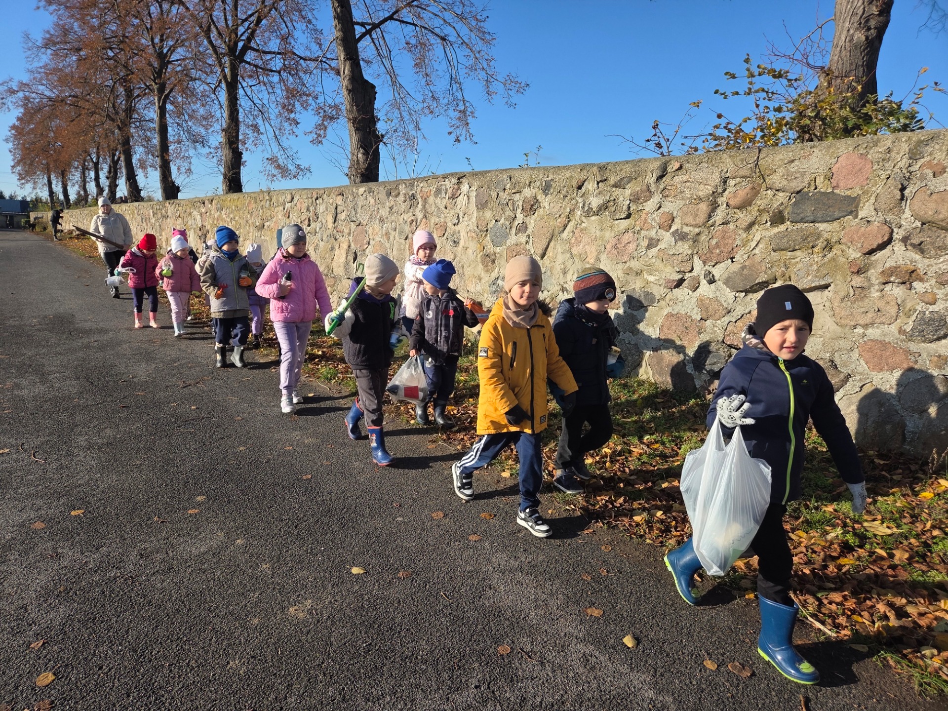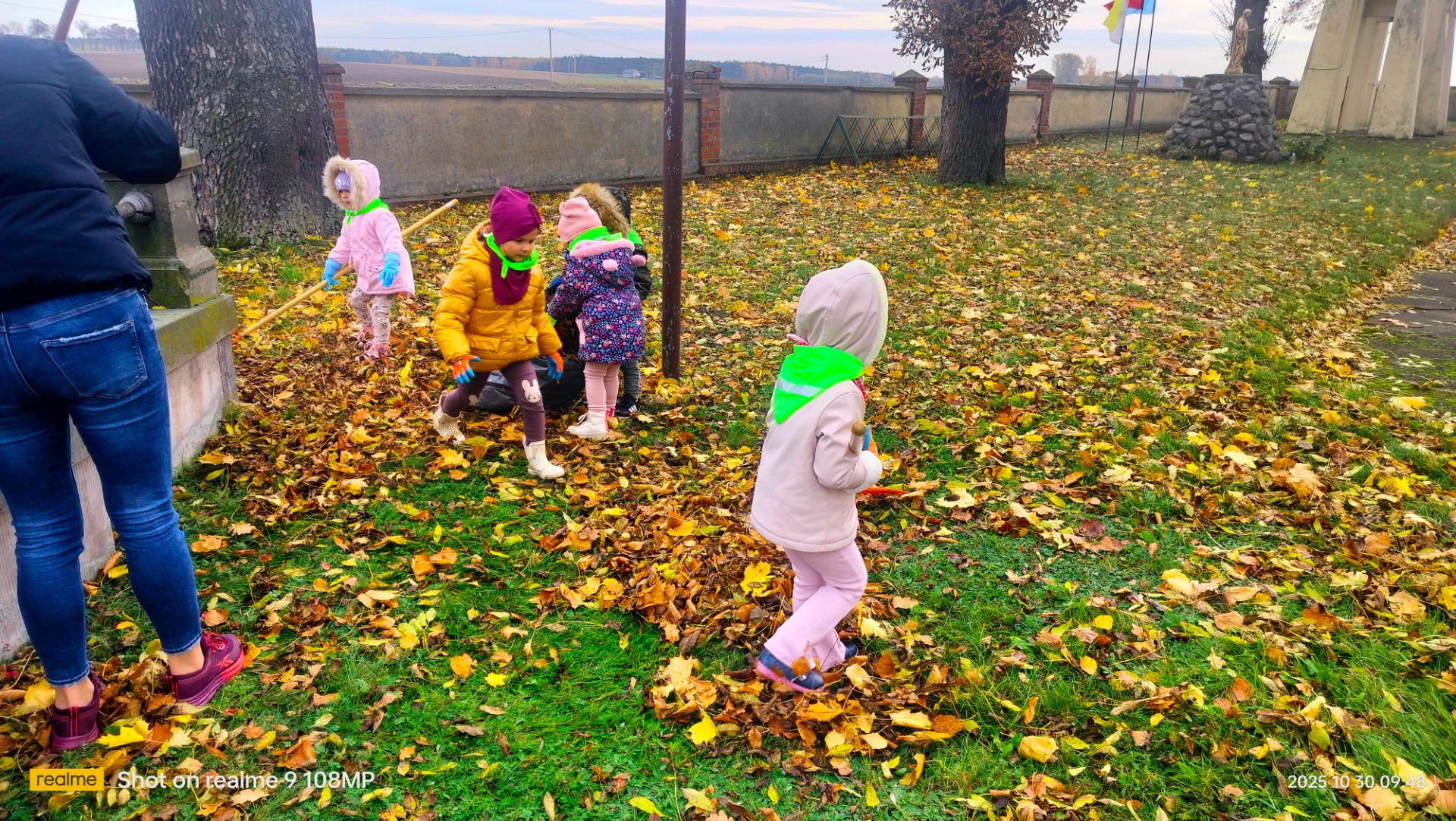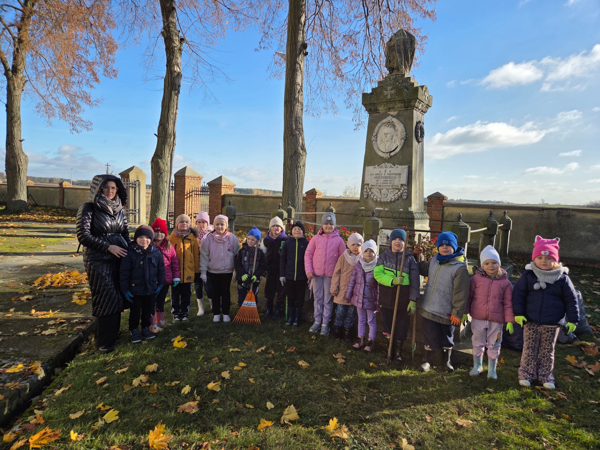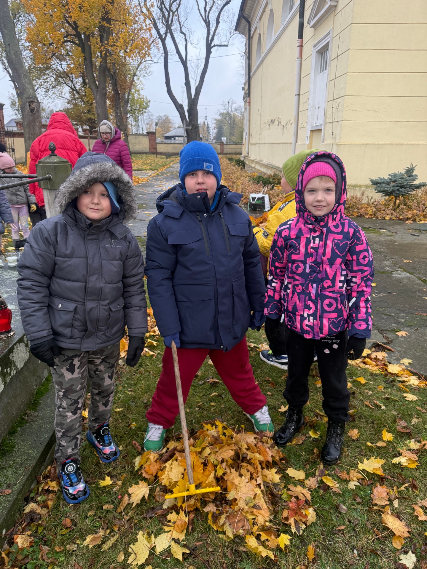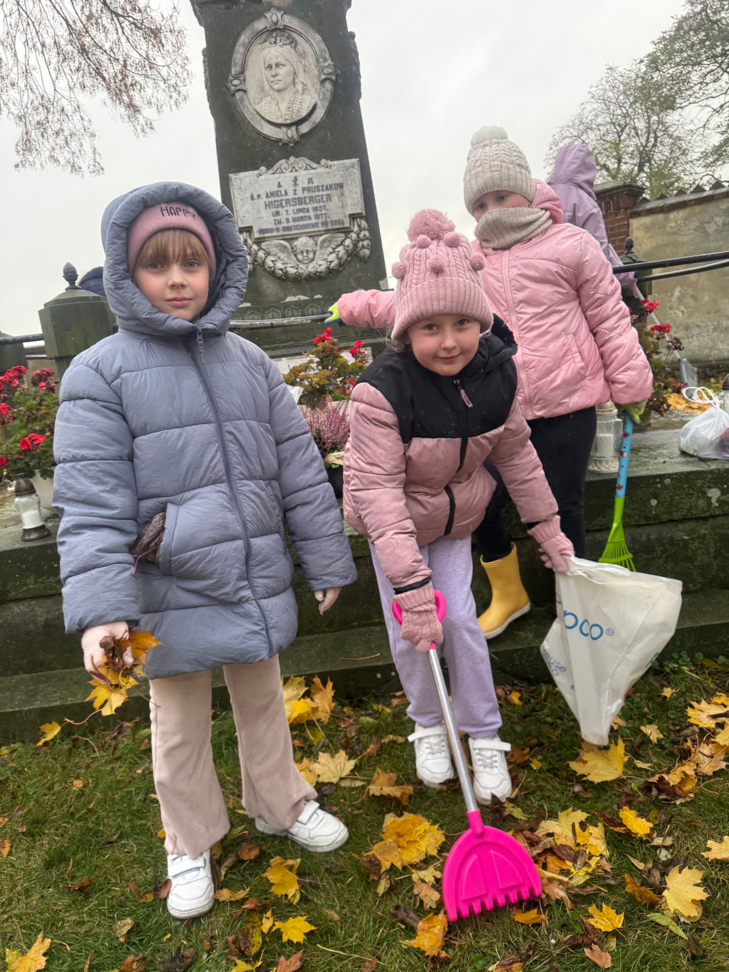 Dzieci z punktu i oddziału przedszkolnego oraz uczniowie klas I–III również włączyli się w akcję, porządkując groby i zapalając znicze na terenie kościoła.