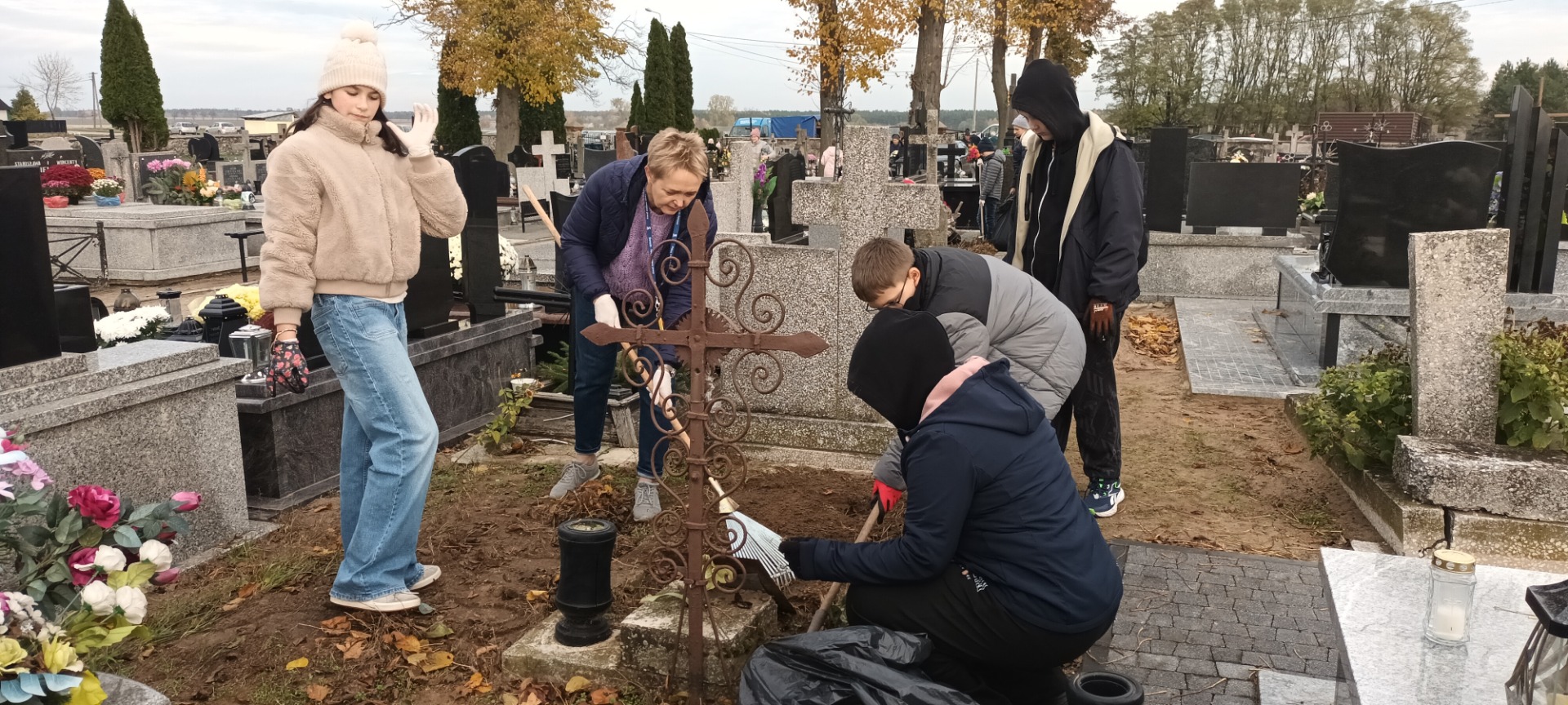 Podczas wizyty uczniowie sprzątali opuszczone i zaniedbane groby, grabili liście, porządkowali mogiły oraz zapalali symboliczne znicze. Dzięki ich zaangażowaniu cmentarz zyskał odświeżony wygląd, a młodzież mogła w praktyczny sposób okazać szacunek dla historii i tradycji.