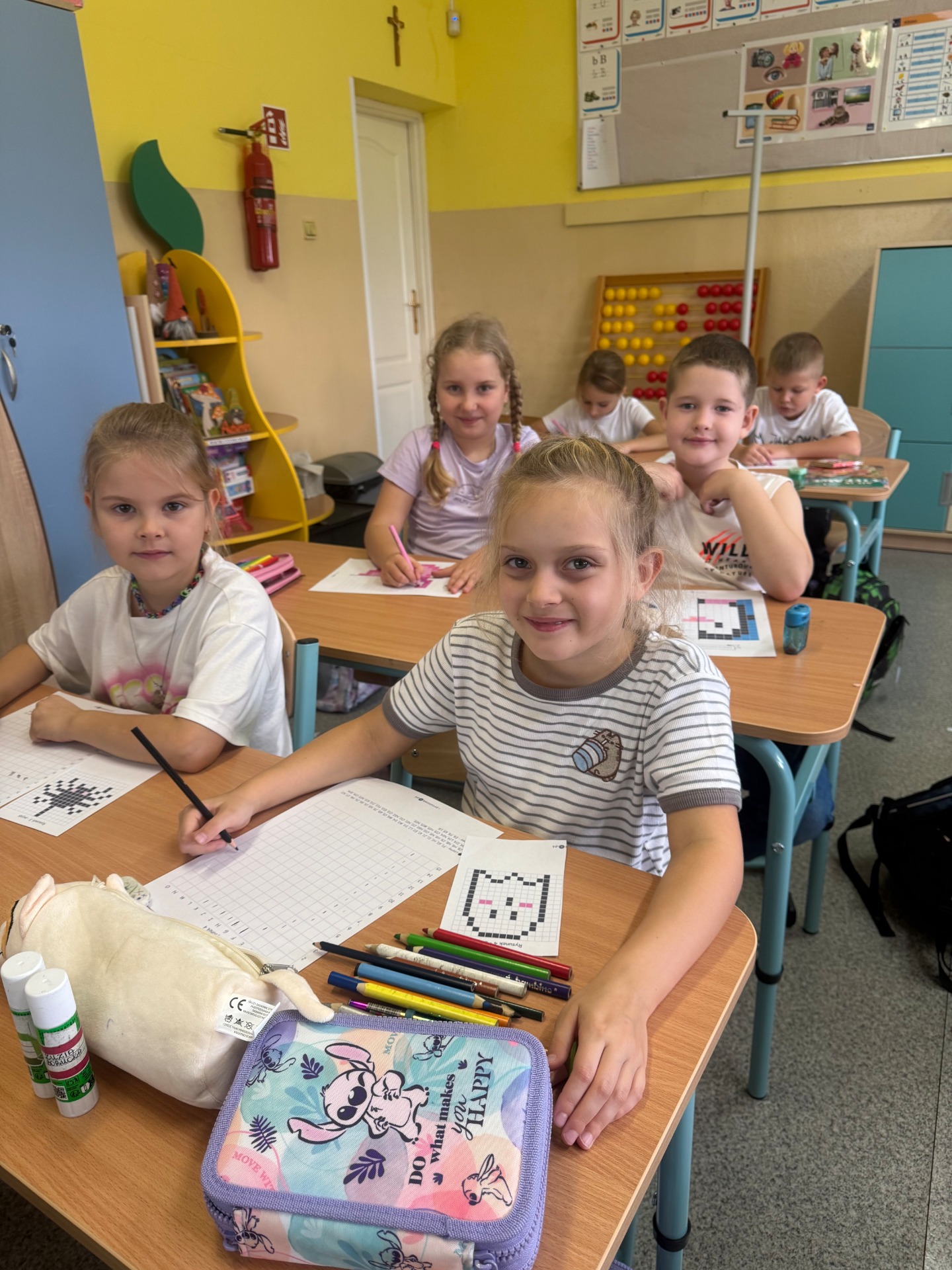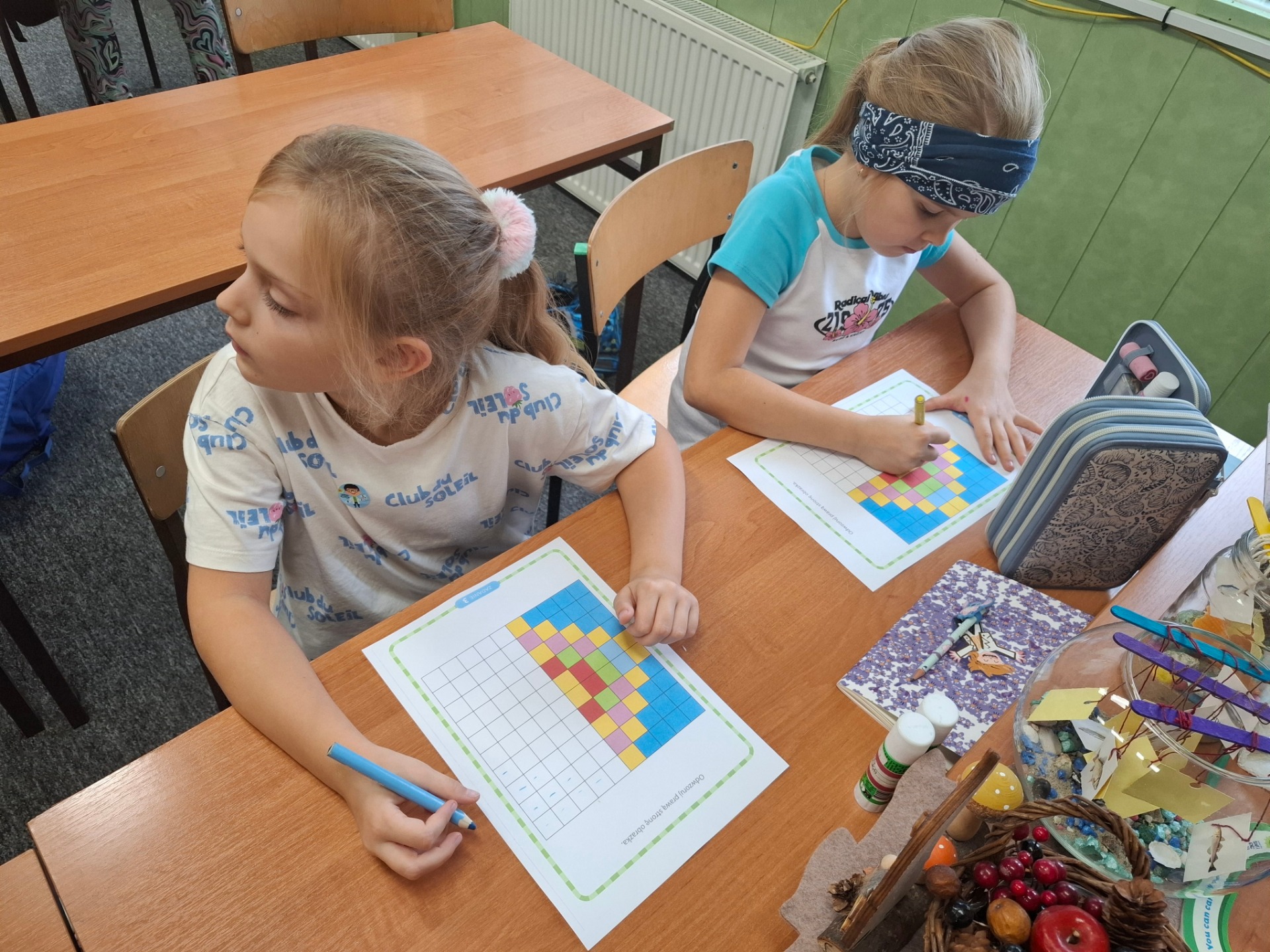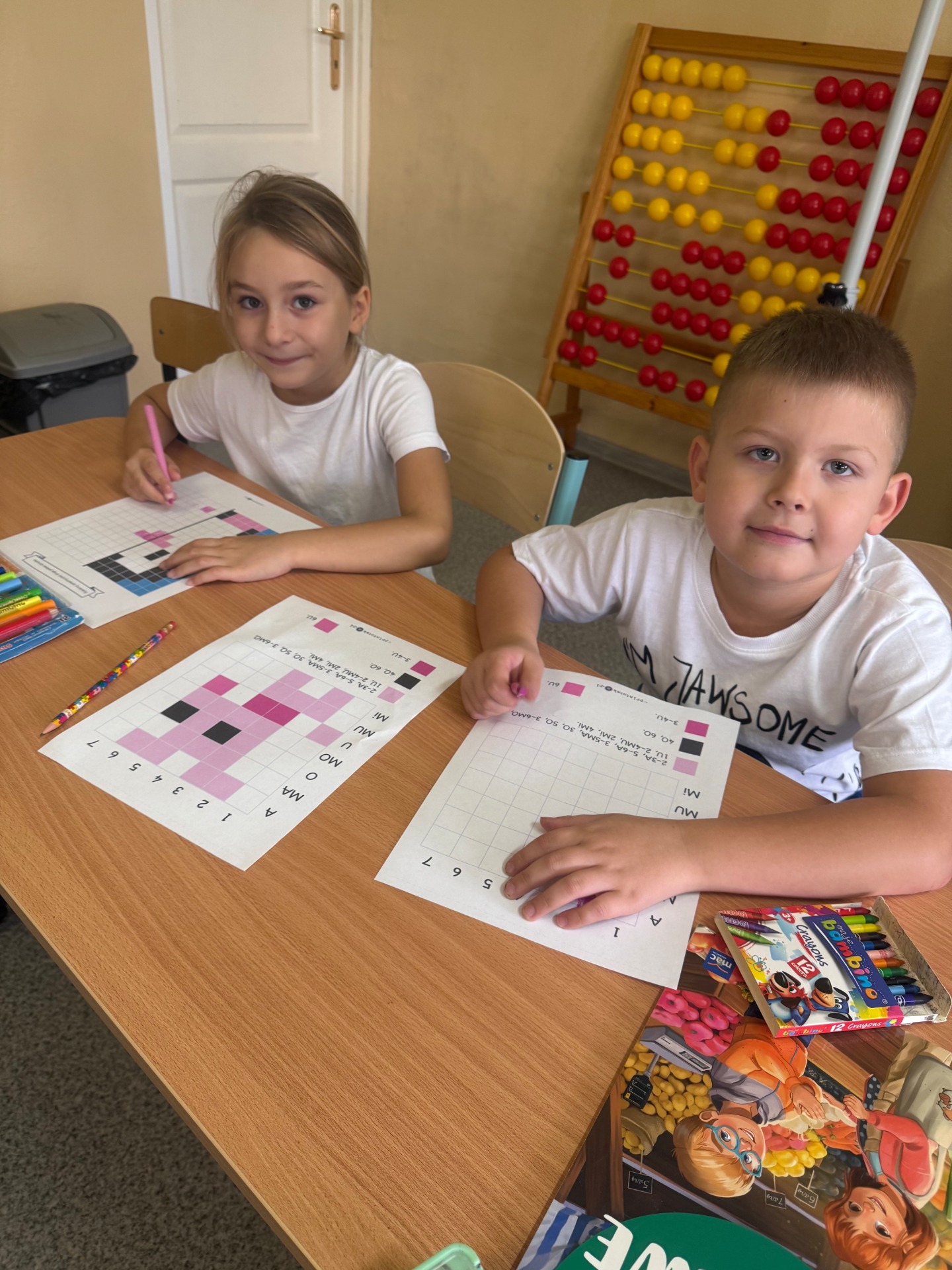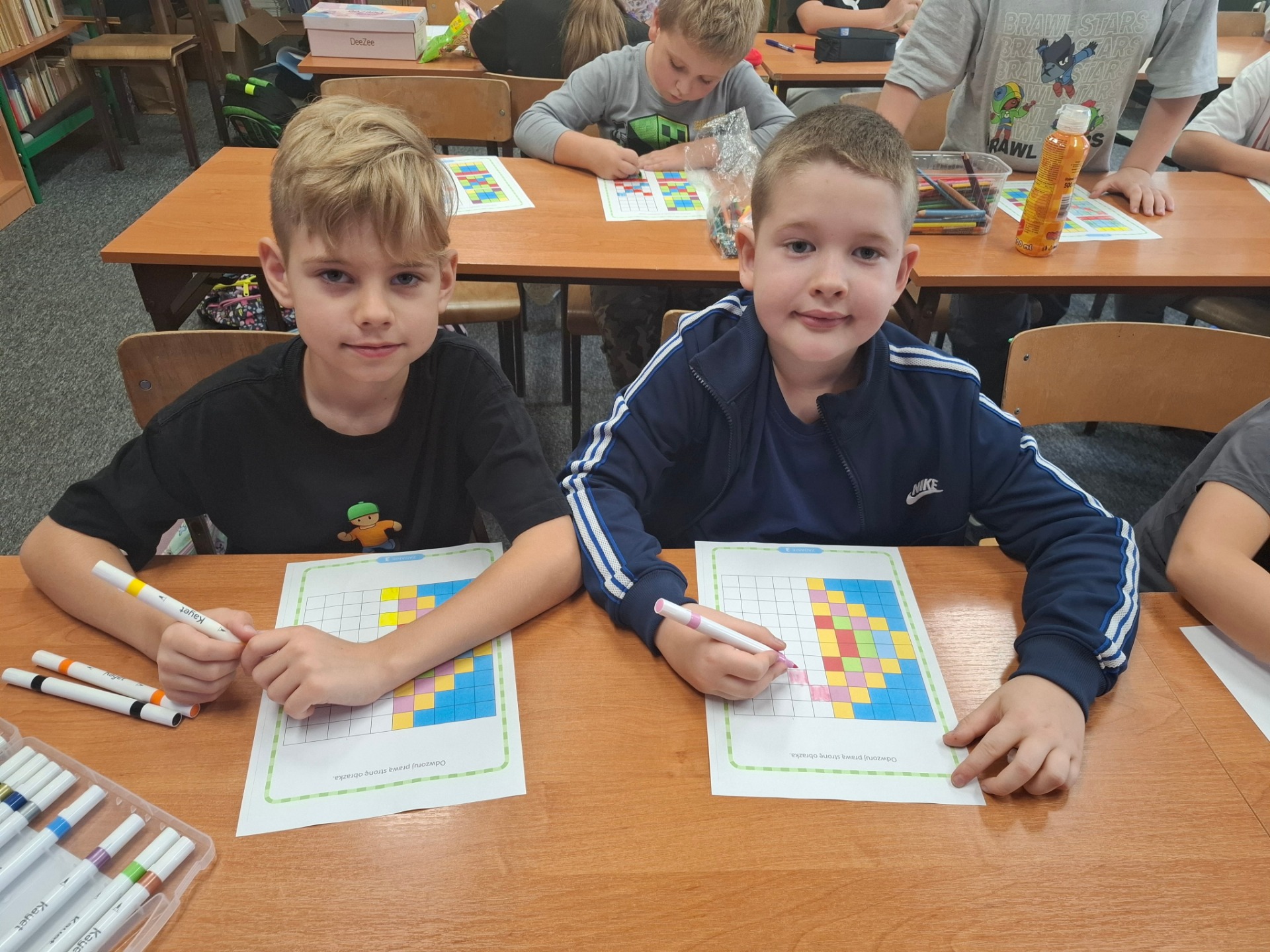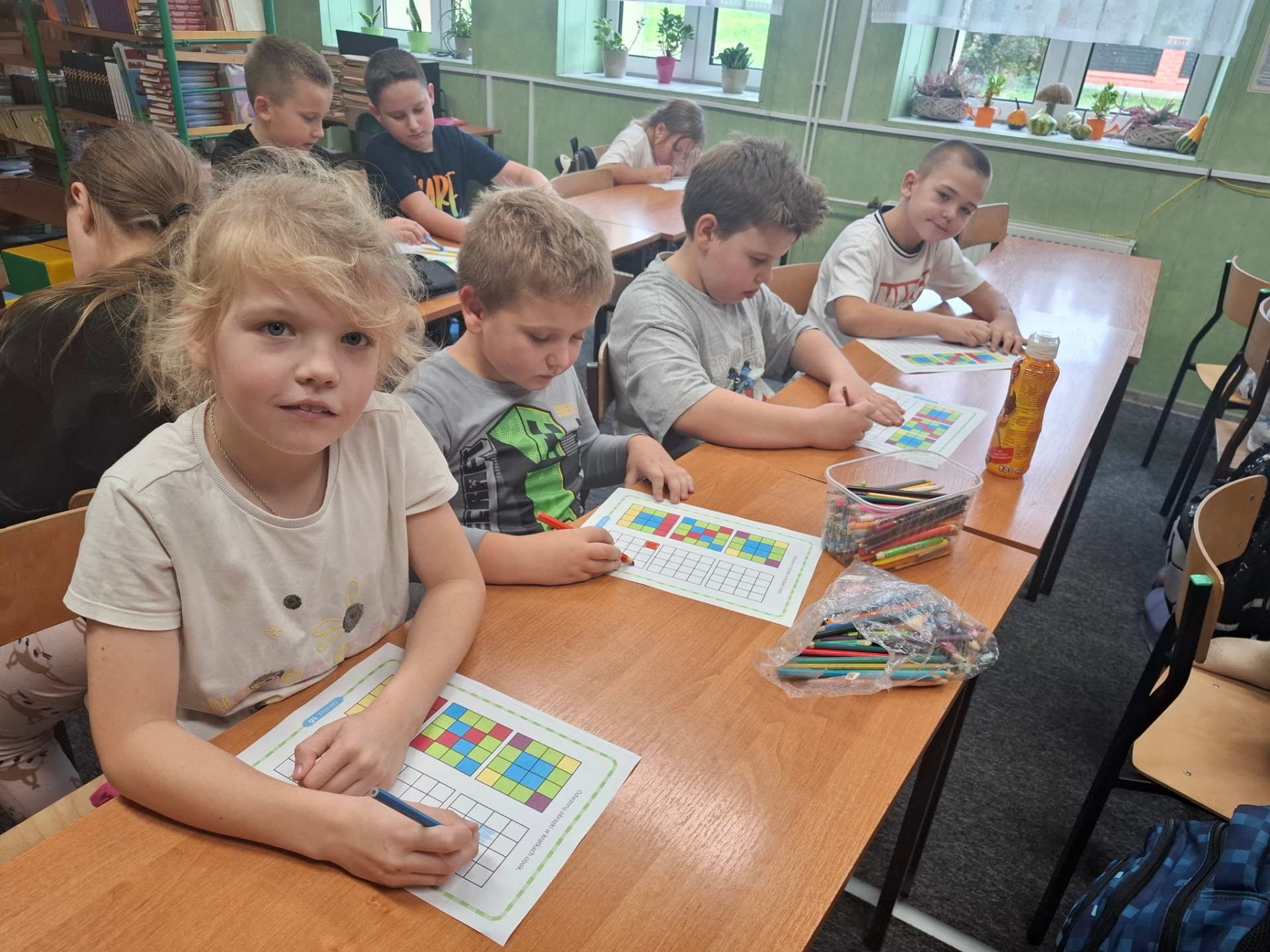 Nie zabrakło też kreatywności na kole informatycznym, gdzie uczniowie programowali roboty z zestawów Lego Spike Prime, oraz w świetlicy szkolnej, gdzie kodowanie odbywało się zarówno z wykorzystaniem internetu, jak i w wersji „offline” – na kartkach papieru.