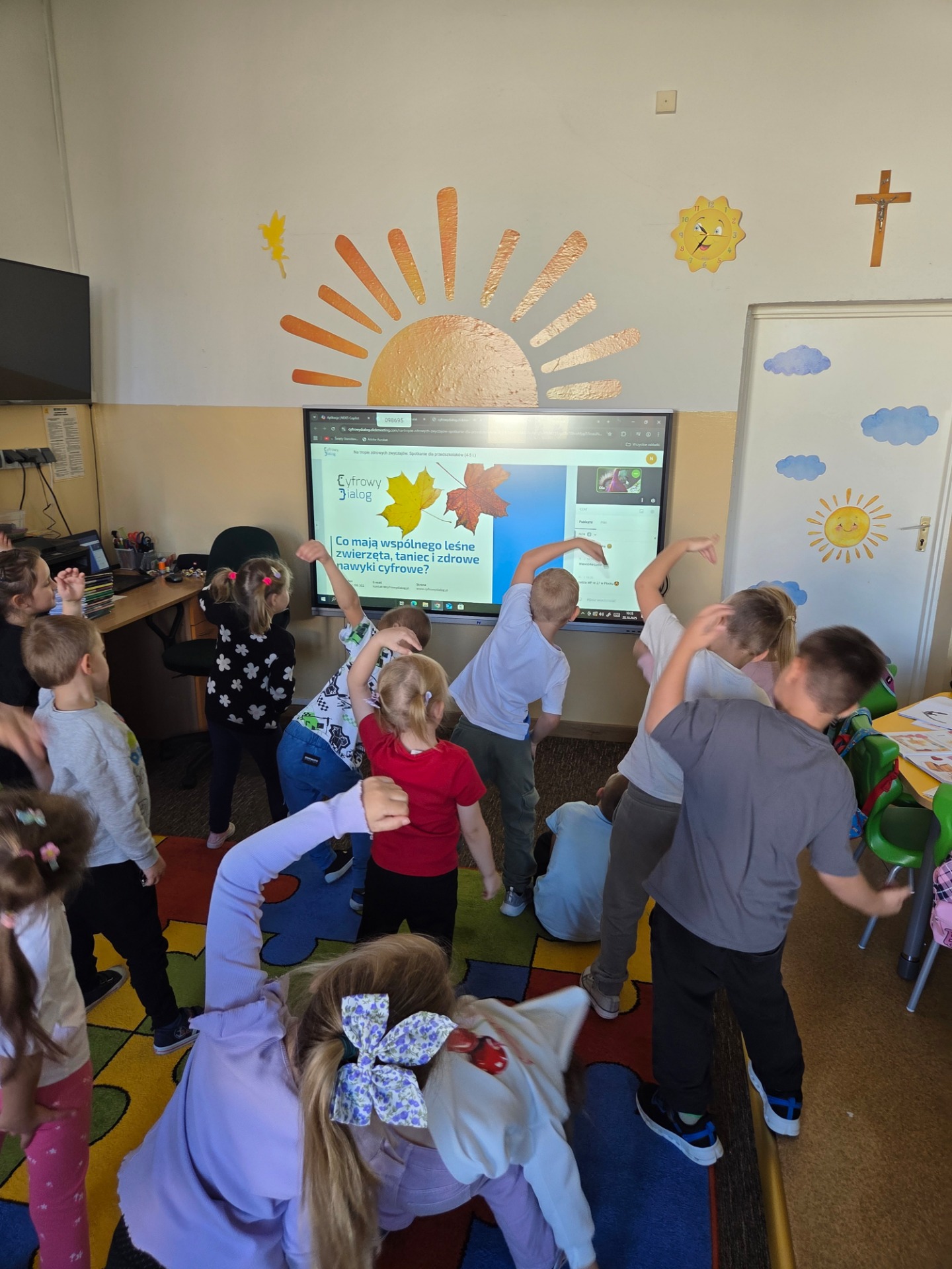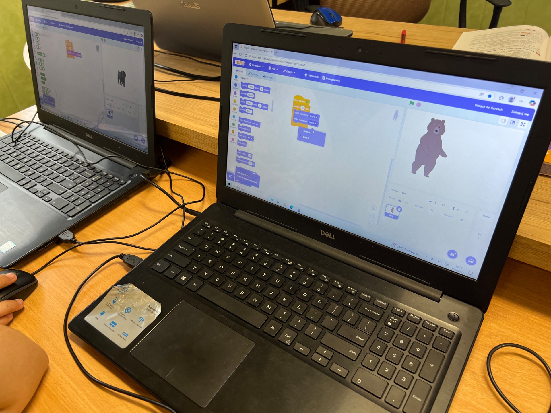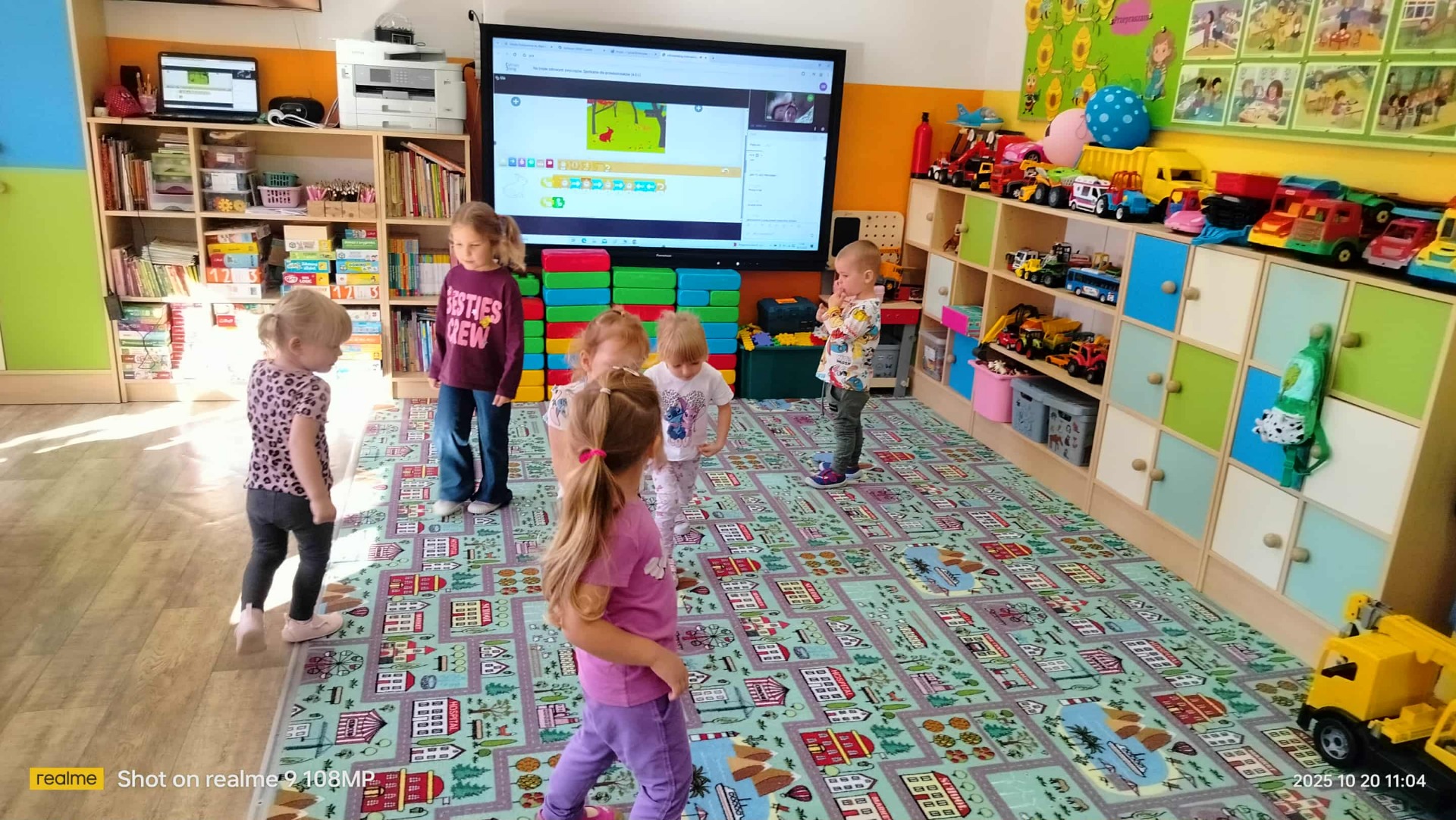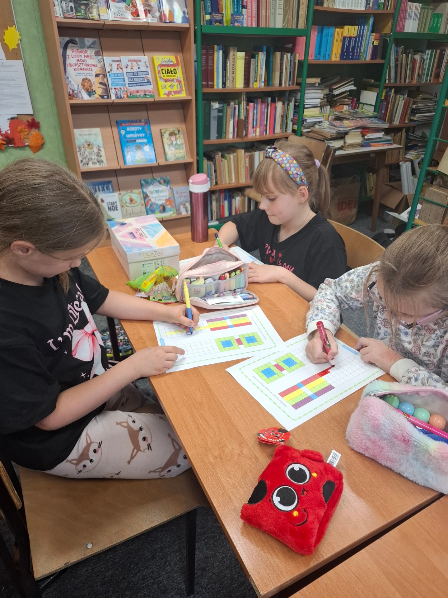 Nie zabrakło też kreatywności na kole informatycznym, gdzie uczniowie programowali roboty z zestawów Lego Spike Prime, oraz w świetlicy szkolnej, gdzie kodowanie odbywało się zarówno z wykorzystaniem internetu, jak i w wersji „offline” – na kartkach papieru.