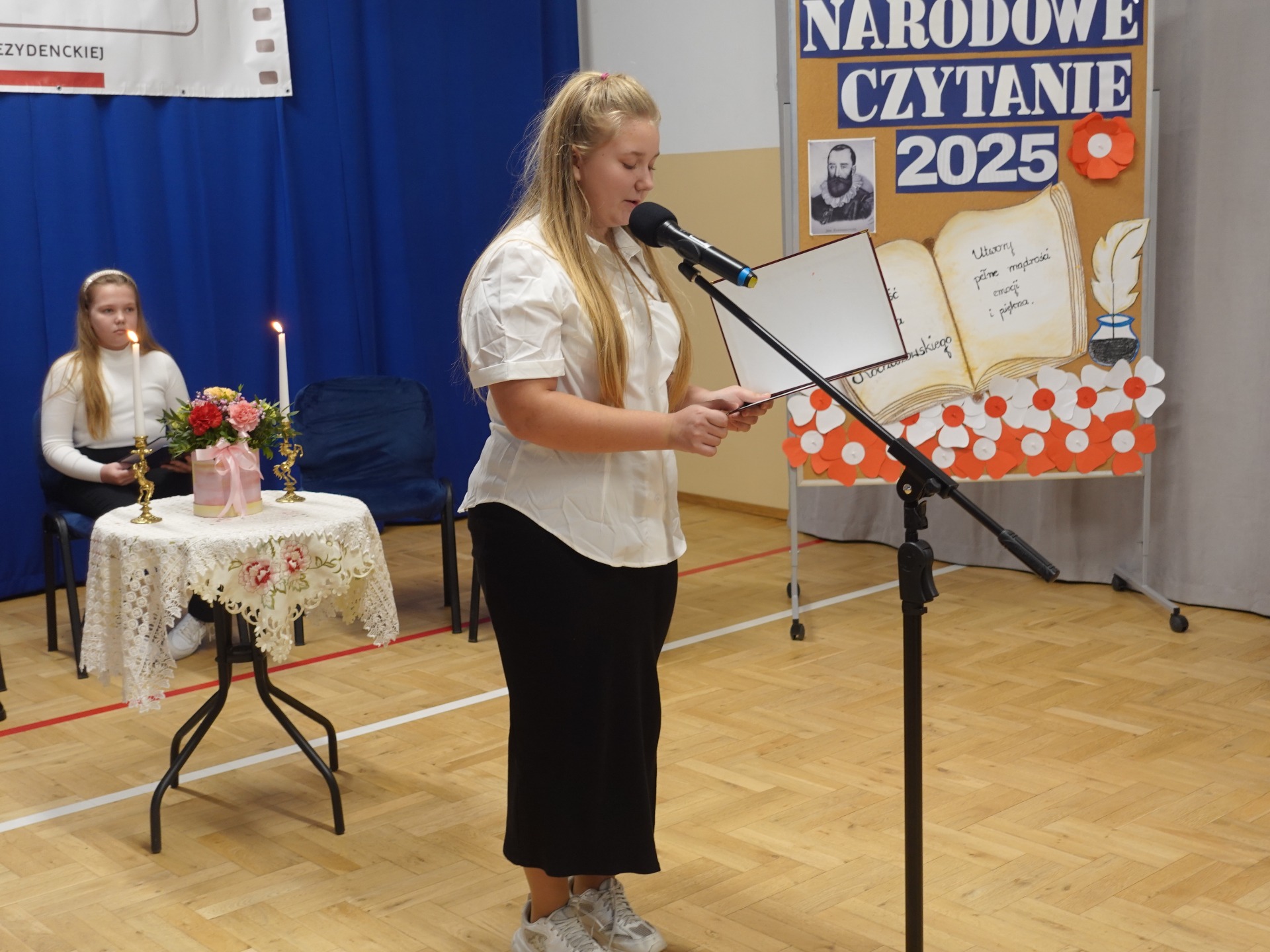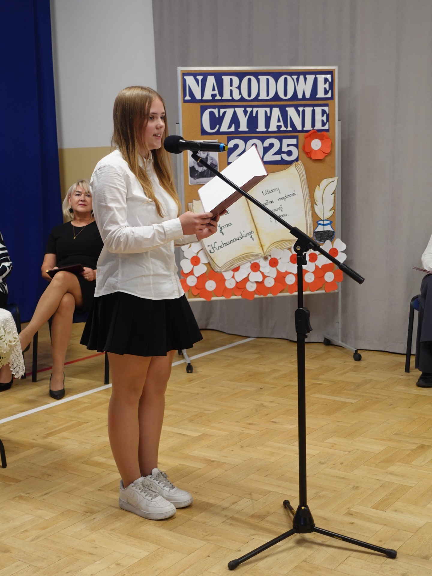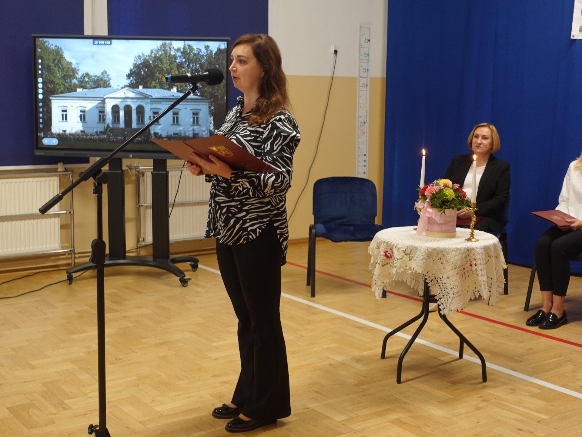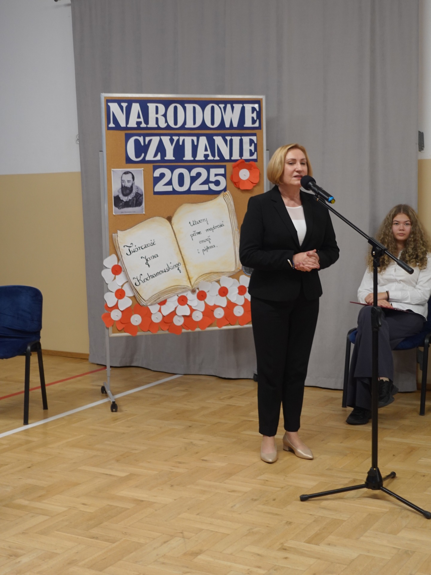 Uczciliśmy pamięć i złożyliśmy hołd wielkiemu poecie, Janowi Kochanowskiemu, ojcu poezji polskiej. Zrobiliśmy to w najpiękniejszy sposób, jaki potrafiliśmy, czyli wspominając go i czytając jego poezję. W klimat dawnej epoki przeniosła nas piękna dekoracja oraz muzyka renesansowa. Obejrzeliśmy wystąpienie Prezydenta Karola Nawrockiego wraz z małżonką Martą Nawrocką, którzy zaingurowali wspólną lekturę wielkiego mistrza dnia 06 września w Warszawskim Ogrodzie Saskim. Zaprosiliśmy wszystkich do uczestnictwa w niezwykłej lekcji języka polskiego i historii, która mogła powstać dzięki zaangażowaniu zaproszonych gości, pani dyrektor, nauczycieli, pracowników szkoły i uczniów. Zaprezentowaliśmy fraszki, treny i pieśni Kochanowskiego oraz obejrzeliśmy prezentację multimedialną stworzoną na jego cześć.