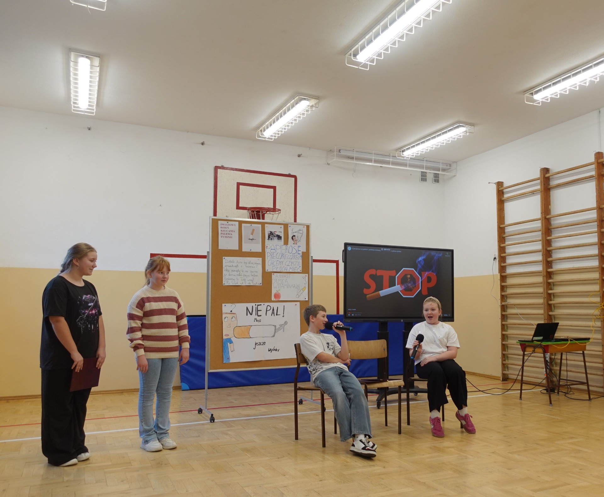 Na zakończenie młodzi aktorzy apelowali do swoich palących rodziców i bliskich śpiewając piosenkę ,,Mamo, tato nie pal przy mnie, bo dorastać nie chcę w dymie. Babciu, dziadku zamiast fajki przytul i opowiedz bajki…..”