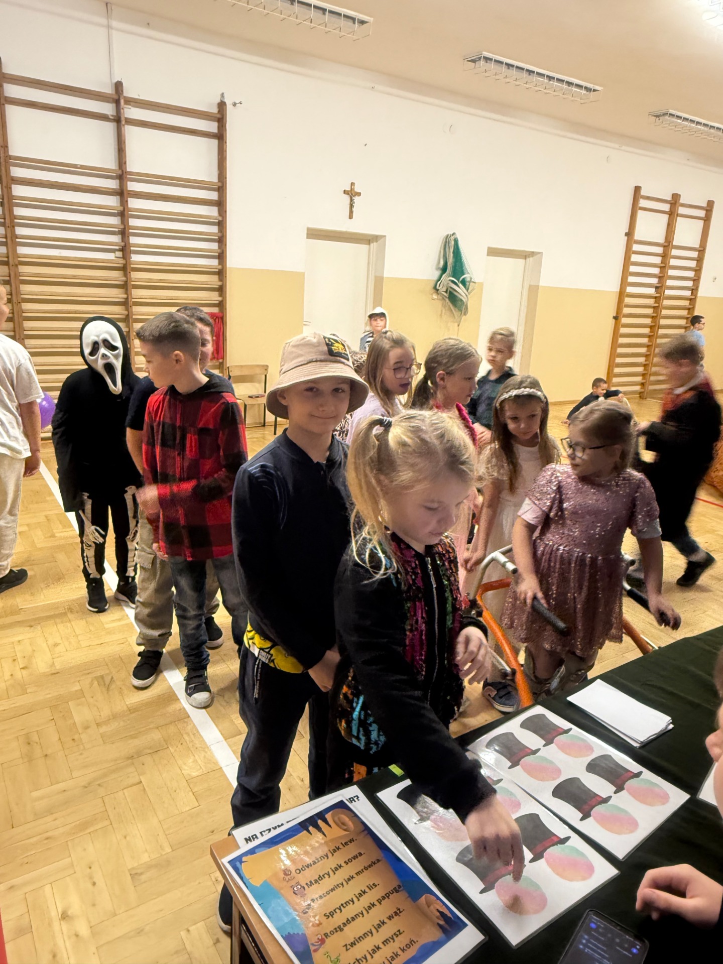 Wspólne tańce na sali gimnastycznej pozwoliły stworzyć atmosferę pełną energii i dobrej zabawy. Nie zabrakło tradycyjnych wróżb andrzejkowych. Choć traktowane z przymrużeniem oka, budziły wiele radości, emocji i ciekawości.