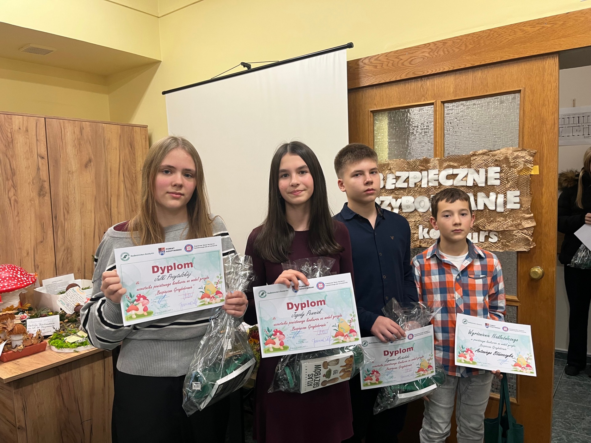 Dnia 3 grudnia 2025 roku w siedzibie Państwowej Stacji Sanitarno-Epidemiologicznej w Gostyninie odbyło się rozstrzygnięcie powiatowego konkursu „Bezpieczne Grzybobranie”, którego celem było promowanie zasad bezpiecznego zbierania grzybów, poszerzanie wiedzy o gatunkach jadalnych i trujących oraz kształtowanie prozdrowotnych postaw wśród dzieci i młodzieży.