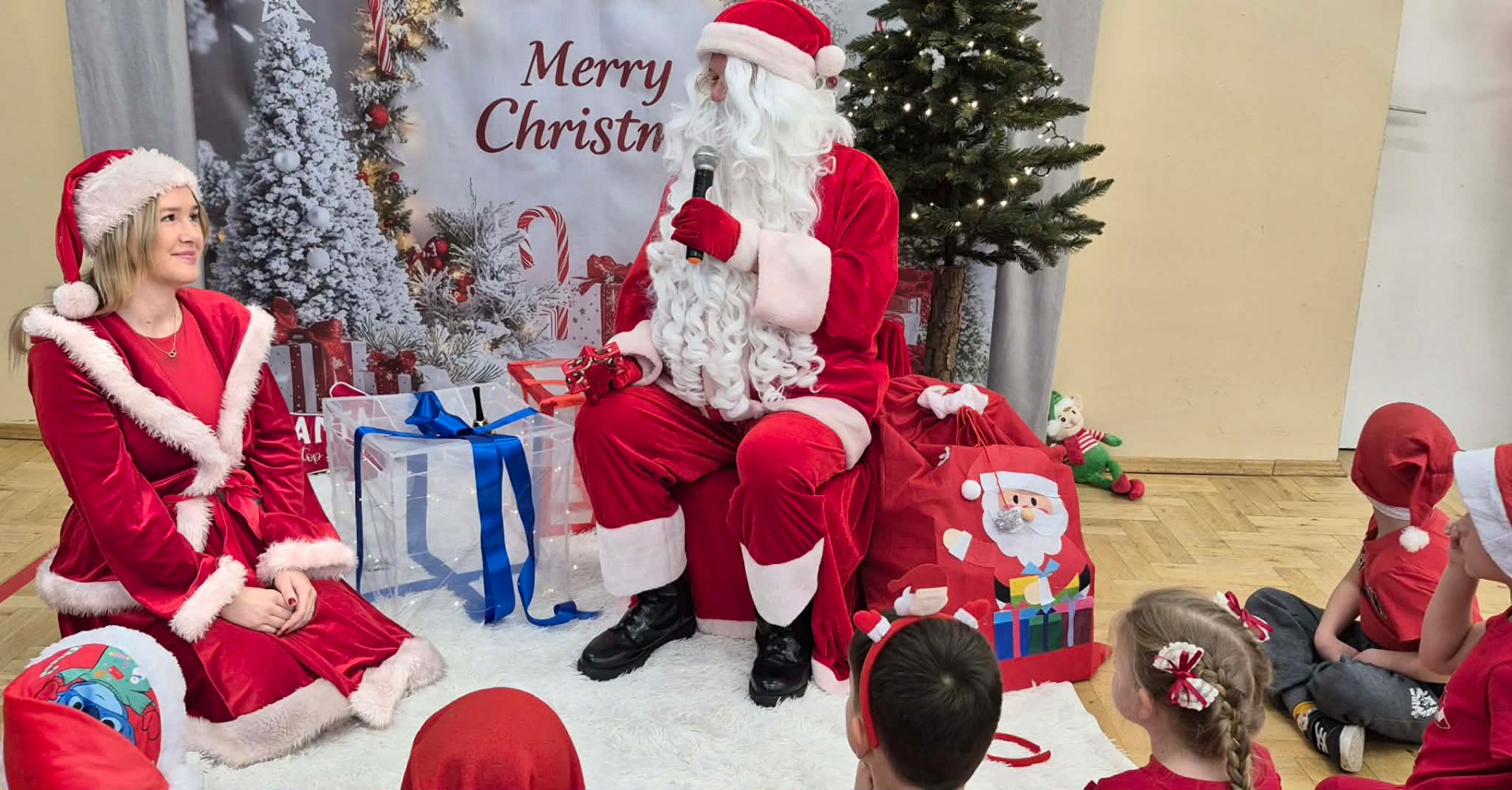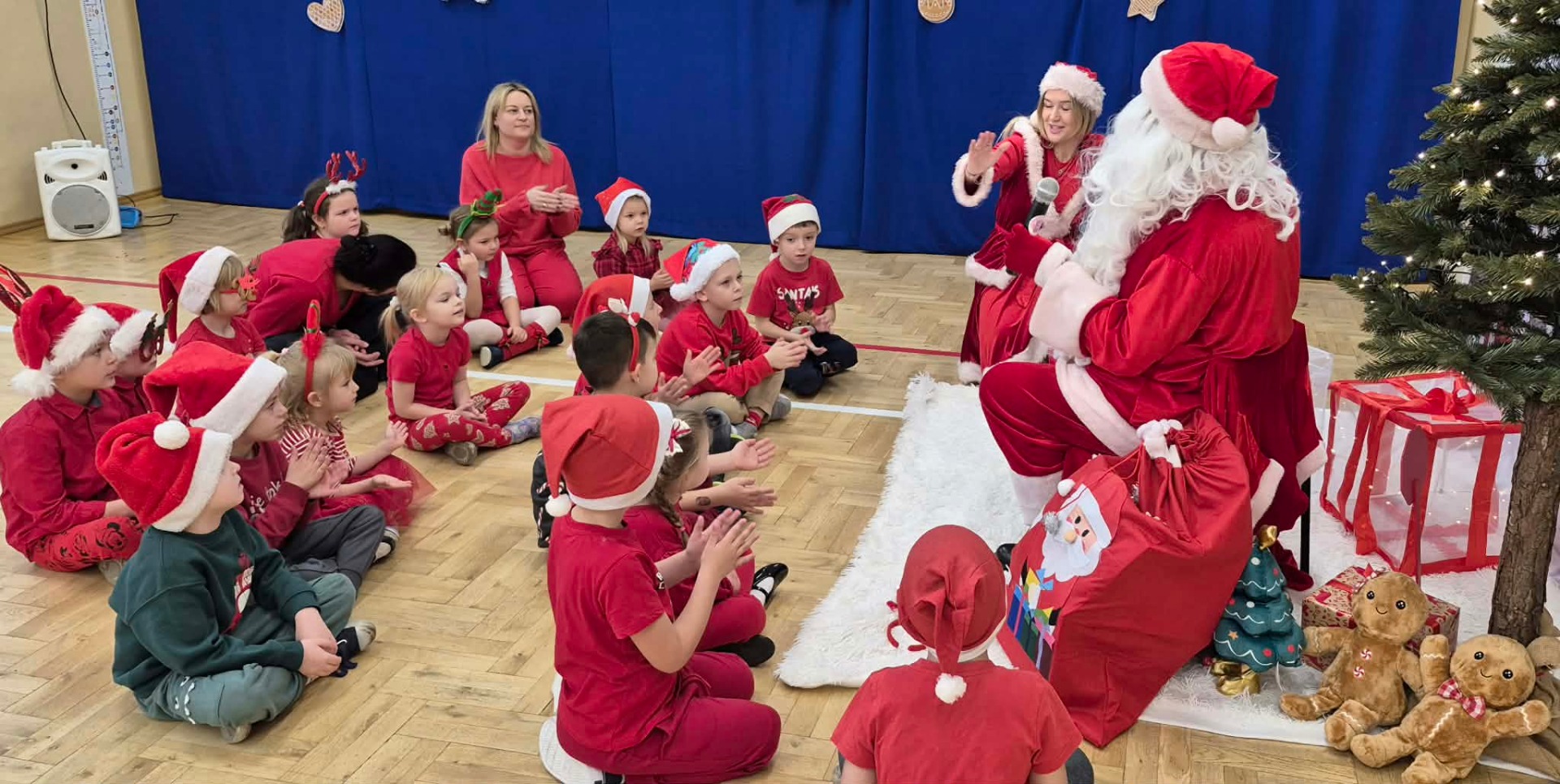 Dziś 8 grudnia w naszym przedszkolu odbyło się wyjątkowe i długo wyczekiwane spotkanie z Mikołajem. Dzieci już od rana nie mogły doczekać się wizyty, a ich radość była ogromna, gdy nagle… Mikołaj wszedł do sali przez okno! Zaskoczenie i zachwyt na twarzach najmłodszych były bezcenne. Towarzyszyła mu również Pani Mikołajowa, która wniosła jeszcze więcej ciepła, uśmiechu i świątecznej atmosfery. Pomagała dzieciom w zabawach, rozmawiała z nimi i czuwała nad tym, aby każdy czuł się wyjątkowo. Przedszkolaki świetnie się bawiły podczas wspólnych zabaw i rozmów z wyjątkowymi gośćmi. Każde dziecko otrzymało także prezent, który wywołał jeszcze więcej uśmiechu i emocji. Atmosfera była pełna świątecznej magii, radości i rodzinnego klimatu. To spotkanie na długo pozostanie w pamięci naszych przedszkolaków. Dziękujemy Mikołajowi i Pani Mikołajowej za odwiedziny i wspaniałą zabawę! ![]()