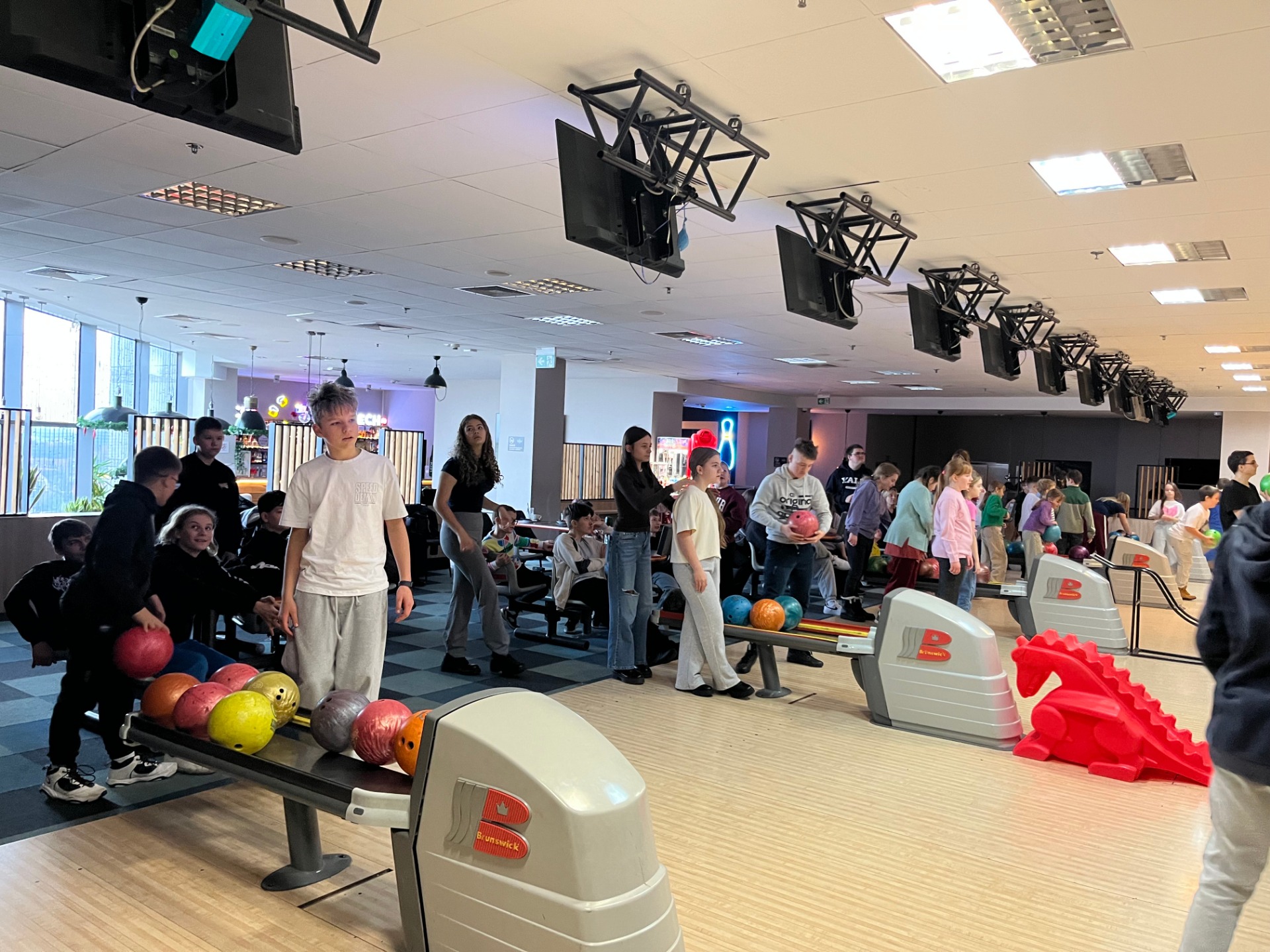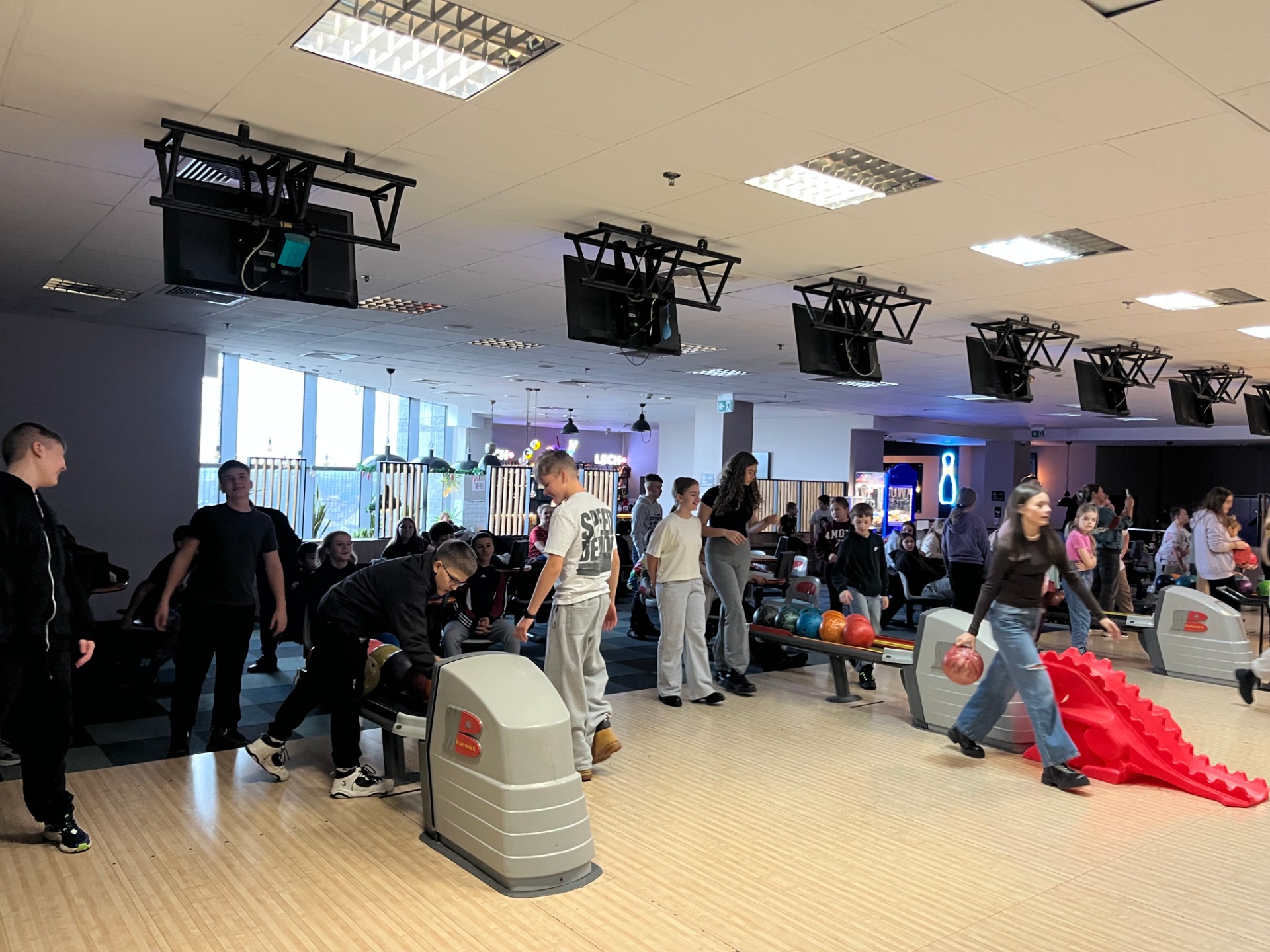 6 grudnia uczniowie klas 4–8 uczestniczyli w wyjątkowym wyjeździe mikołajkowym. Pierwszym punktem programu była wizyta w kinie, gdzie obejrzeliśmy pełen humoru i świątecznej atmosfery film „Mysz Masz na święta”. Seans wprowadził wszystkich w radosny, zimowy nastrój. Kolejną atrakcją był pobyt w kręgielni. Uczniowie świetnie bawili się podczas wspólnej rywalizacji, kibicując sobie nawzajem i bijąc kolejne rekordy w zbijaniu kręgli. To był czas pełen emocji, śmiechu i dobrej zabawy. Na zakończenie wycieczki udaliśmy się do McDonald’s, gdzie każdy mógł zjeść ulubiony posiłek i chwilę odpocząć po pełnym wrażeń dniu. Wyjazd upłynął w fantastycznej atmosferze, a wspólnie spędzony czas był doskonałą okazją do integracji i świętowania mikołajkowej tradycji. Uczniowie wrócili do domu w świetnych humorach i z nową dawką pozytywnej energii.