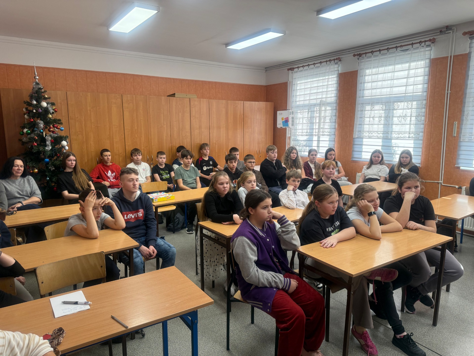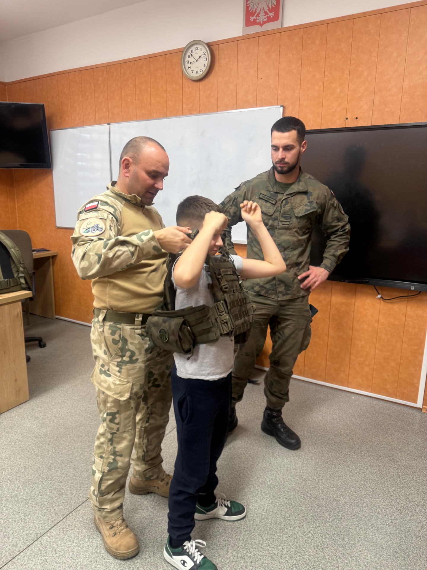 Specjalne szkolenie dla klas IV-VIII przeprowadzili żołnierze st. kpr. Adam Podgrudny oraz kpr. Jan Gackowski z IV Brygady Logistycznej w Pomiechówku. Wojskowi szkoleniowcy przeprowadzili zajęcia w sposób praktyczny i ciekawy. Wysłuchaliśmy historii weterana wojskowego oraz obejrzeliśmy przygotowaną przez niego prezentację z misji do Iraku w 2021 roku. Wszyscy uczniowie byli pod ogromnym wrażeniem!