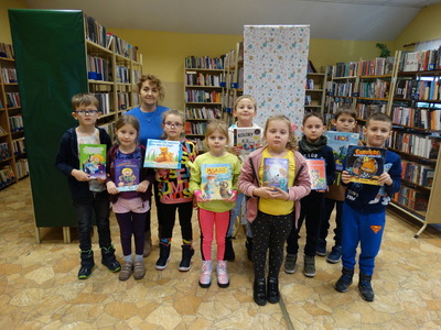 Wizyta pierwszoklasistów w bibliotece w Trębkach