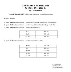 Zebranie z rodzicami w dniu 27.11.2025 r.