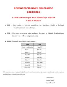 Harmonogram rozpoczęcia roku szkolnego 2025/2026